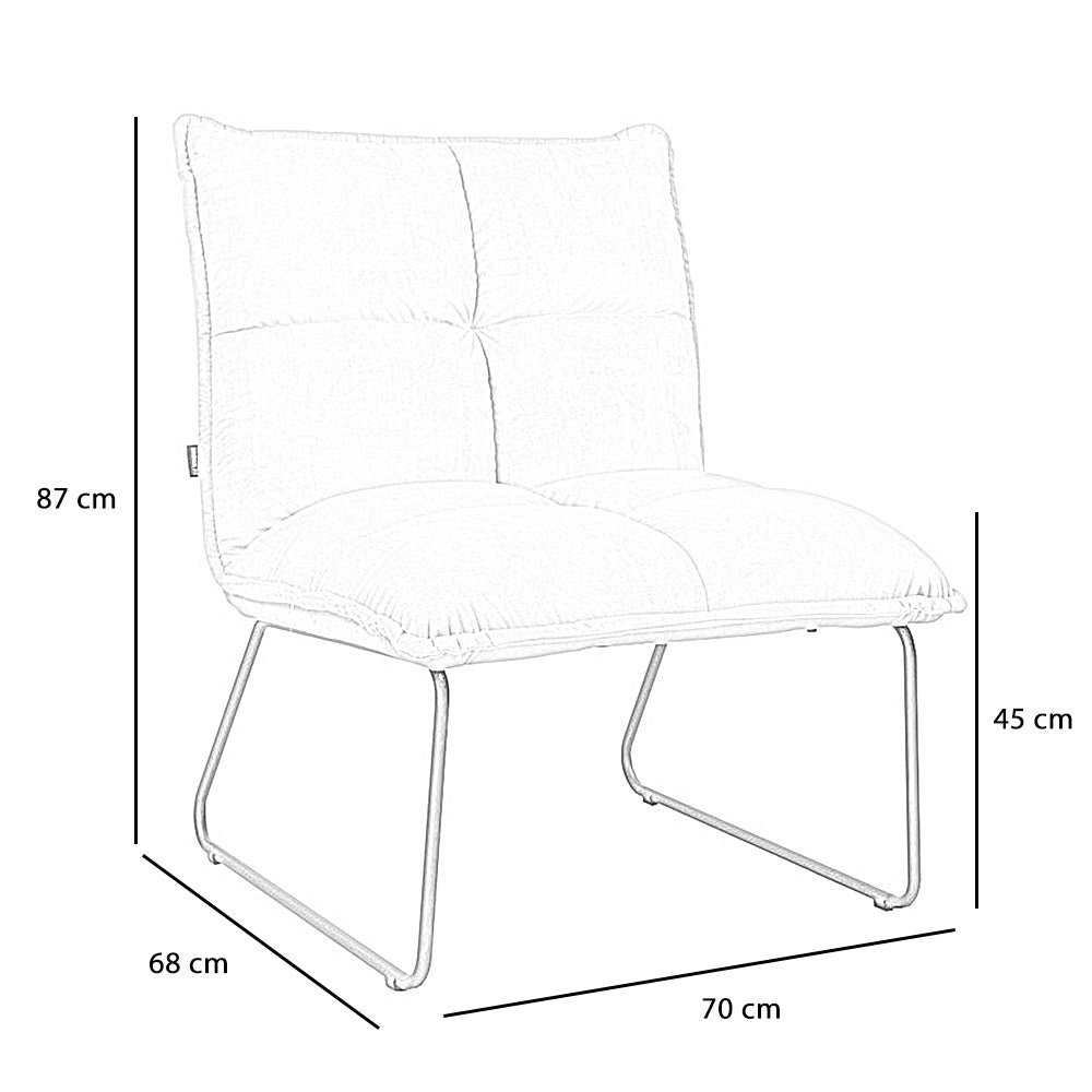 De zitting van de fauteuil Malaga is gemaakt van een stof welke ook nog eens waterbestendig is. De gestikte naden in de zitting geven een luxueuze en unieke uitstraling aan de kleine fauteuil. Het frame van de fauteuil is gemaakt van zwart metaal, dit geeft een stoere uitstraling aan de fauteuil.
