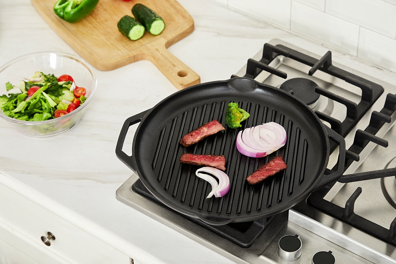 De pan heeft een uitstekende warmtebehoud en distributie, waardoor hij ideaal is om te bakken, grillen en sudderen op een fornuis, oven of BBQ. Om je maximale controle te geven, hebben we de grillplaat voorzien van ergonomische handgrepen.Voor de productie van deze pan is gietijzer van hoge kwaliteit gebruikt met een gladde geëmailleerde afwerking, zodat deze lang meegaat. De emailleaag maakt het inbranden (seasoning) van de pan overbodig en dient tevens als antiaanbaklaag. Daarnaast is de pan geschikt voor alle warmtebronnen, inclusief inductie. Als ze goed worden onderhouden, gaan onze gietijzeren pannen echt een leven lang mee.Voor een maximale levensduur raden we je aan om met de hand te wassen en te drogen voordat je het opbergt.Combineer andere items uit het Hamersley lijn om de set compleet te maken en voeg wat kleur toe aan je keuken!Belangrijkste kenmerken Hoogwaardig gietijzerOntwerp dat een leven lang meegaat Uitstekende warmtebehoudGeschikt voor elk type koken Gladde geëmailleerde afwerkingInbranden (seasoning) niet nodig Geschikt voor alle warmtebronnenGas, inductie, elektrisch, keramiek, oven