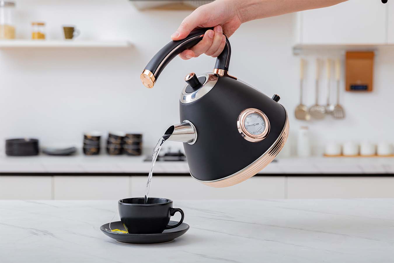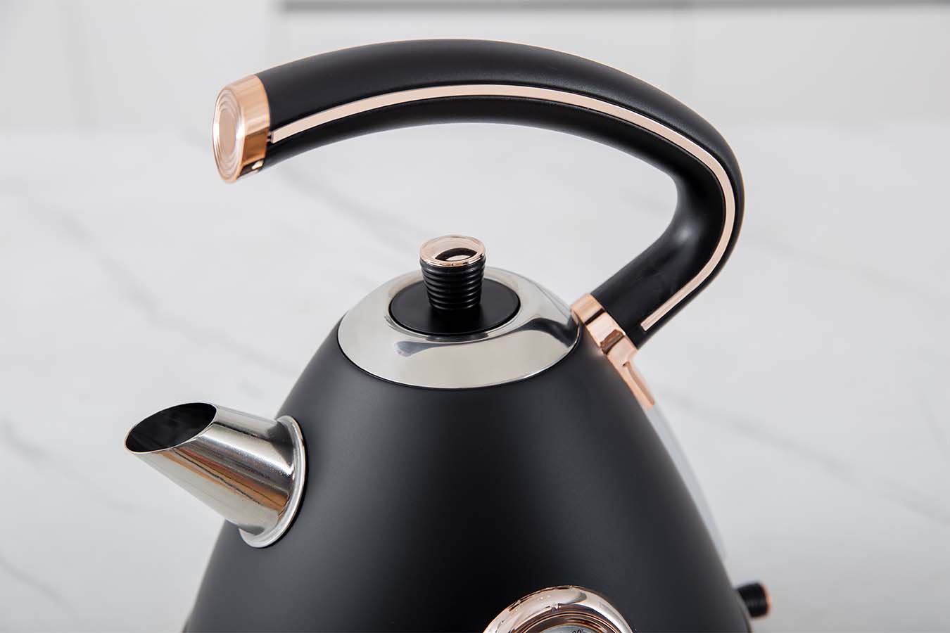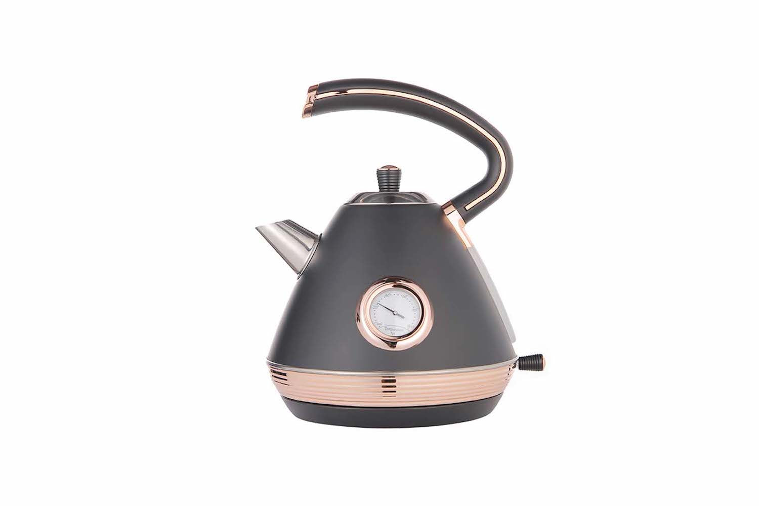 Buccan - Retro Waterkoker - Pyramid - Zwart Rose - Met thermometer