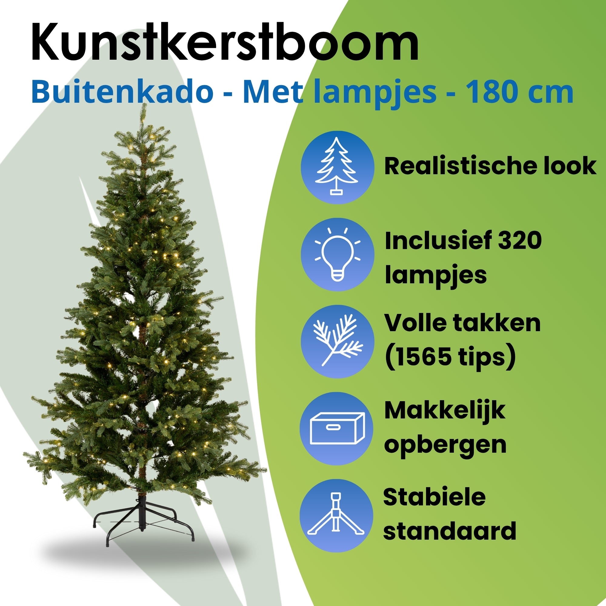 Buitenkado Kunstkerstboom met lampjes – Groen – 180 cm – Standaard