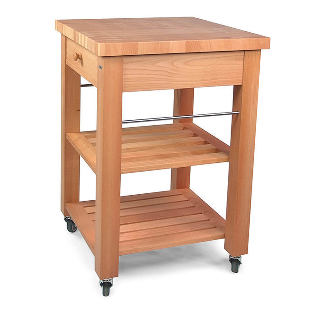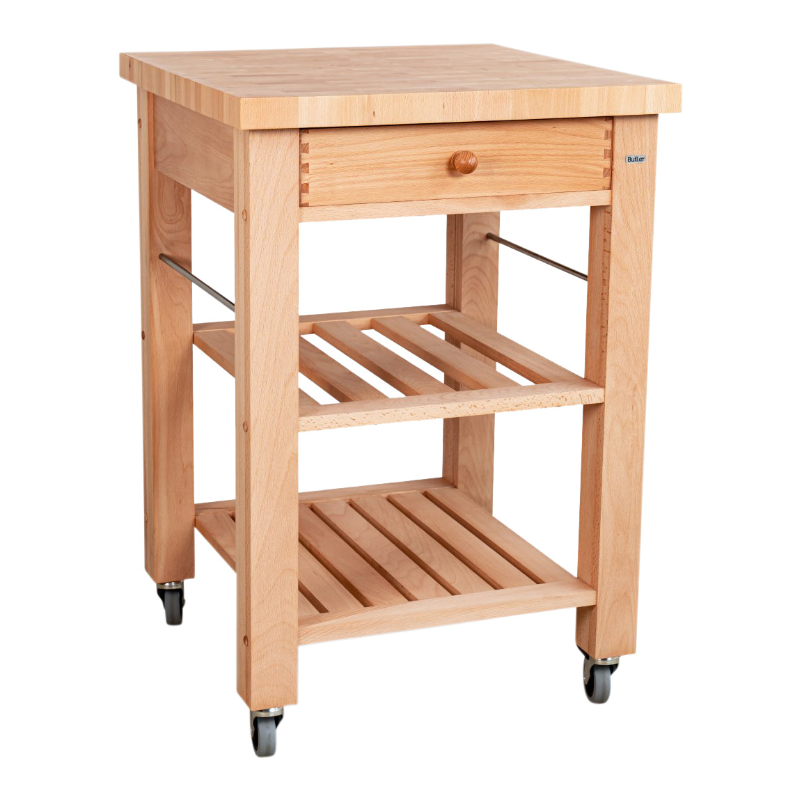 Deze trolley van Butler is gemaakt van duurzaam, gestoomd beukenhout en heeft een stoer, kopshouten bovenblad van 4 centimeter dik.