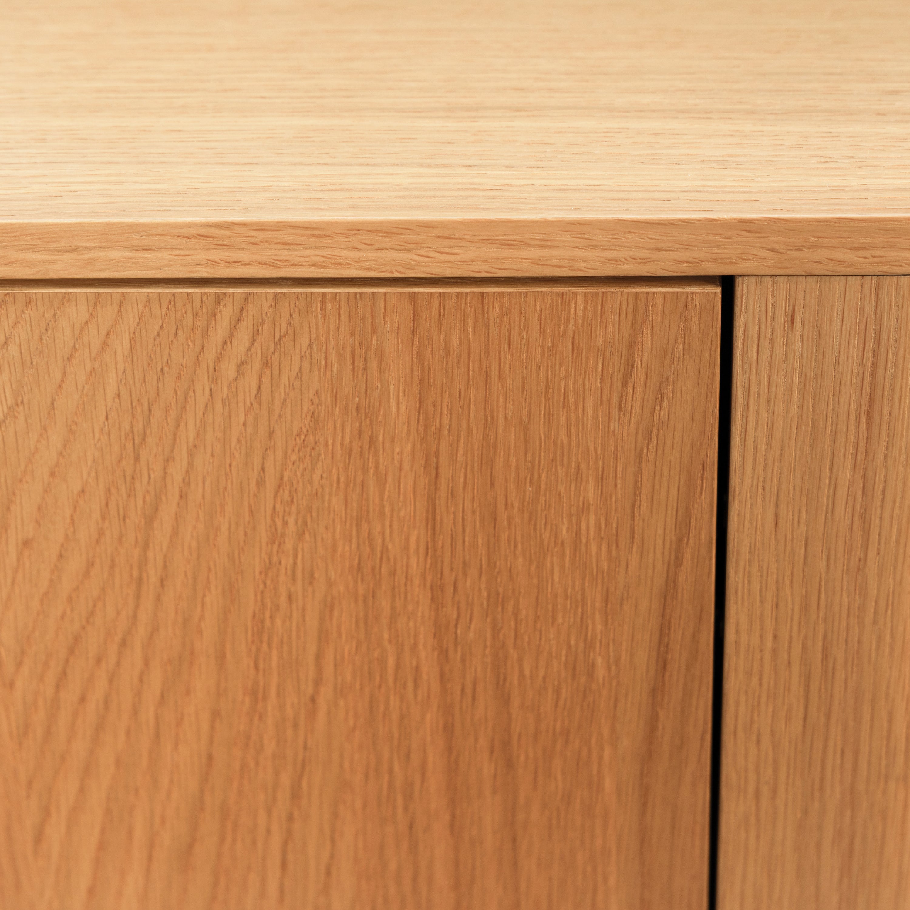 - Gemaakt van spaanplaat met eikenfineer en melamine: samen geven ze de warme look van eikenhout