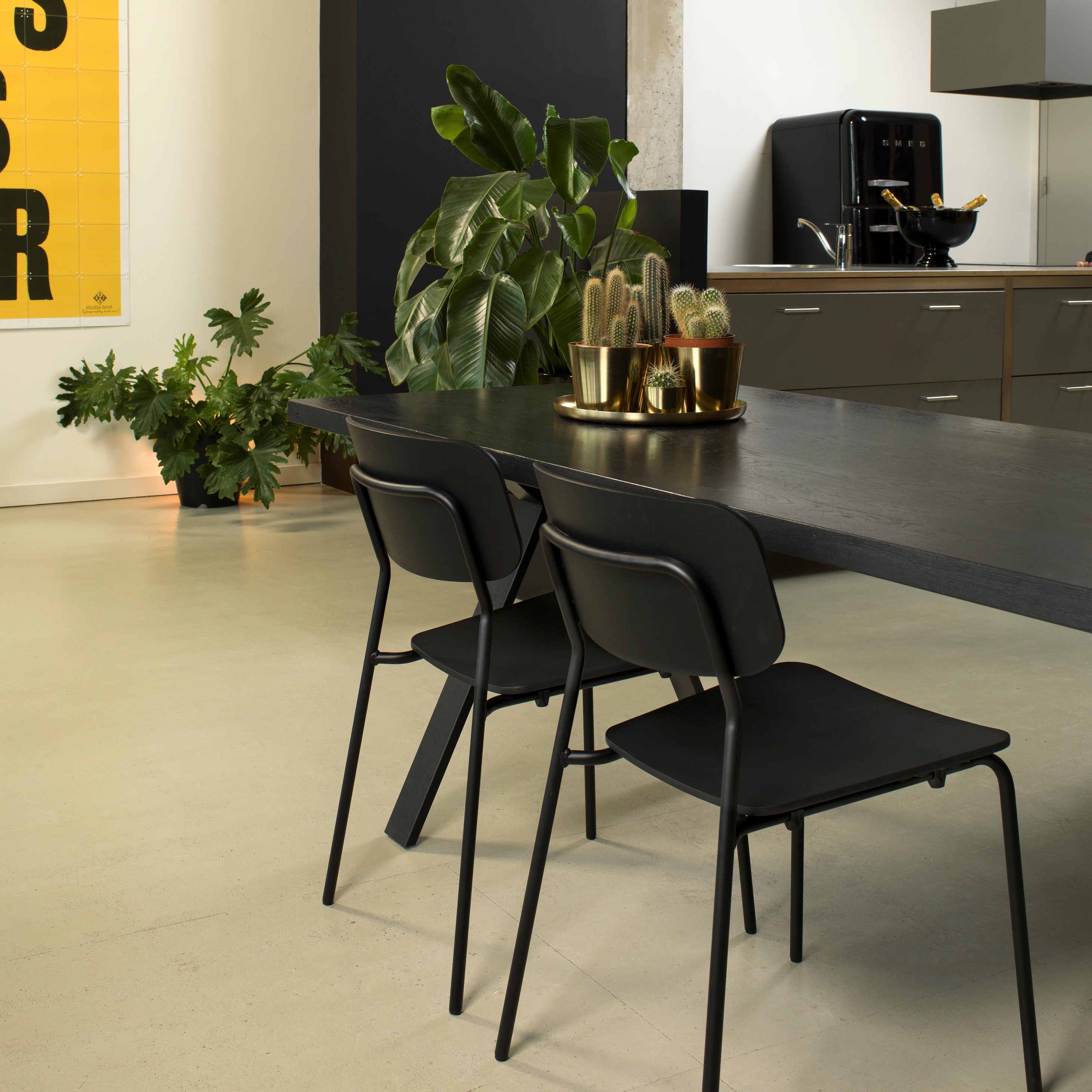 Eetkamerstoel Ava van by fonQ heeft haar elegante uitstraling te danken aan het minimalistische design. De houten zitting en het metalen frame zorgen niet alleen voor een stevige zit, maar ook voor een vleugje retro en rust in jouw eethoek.
