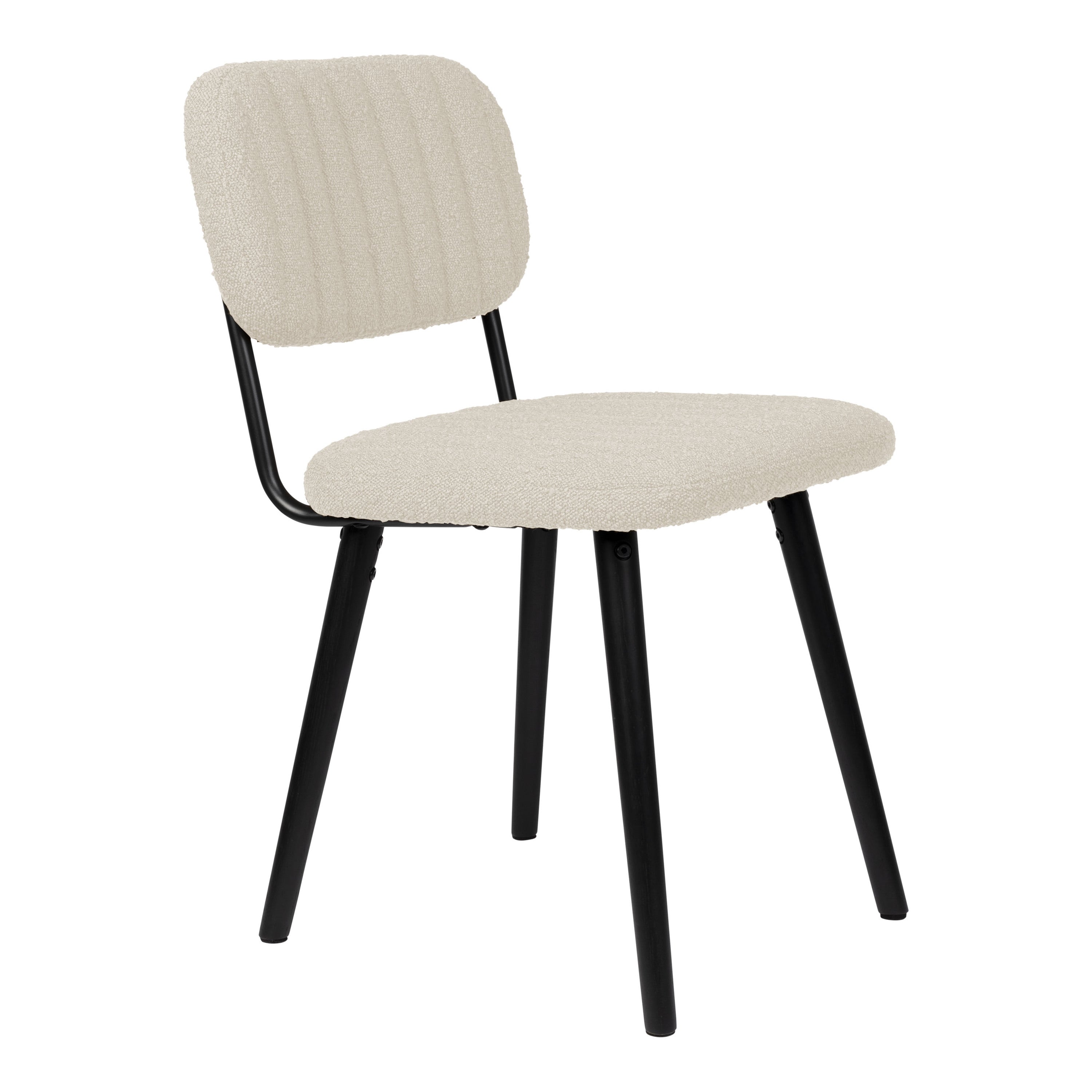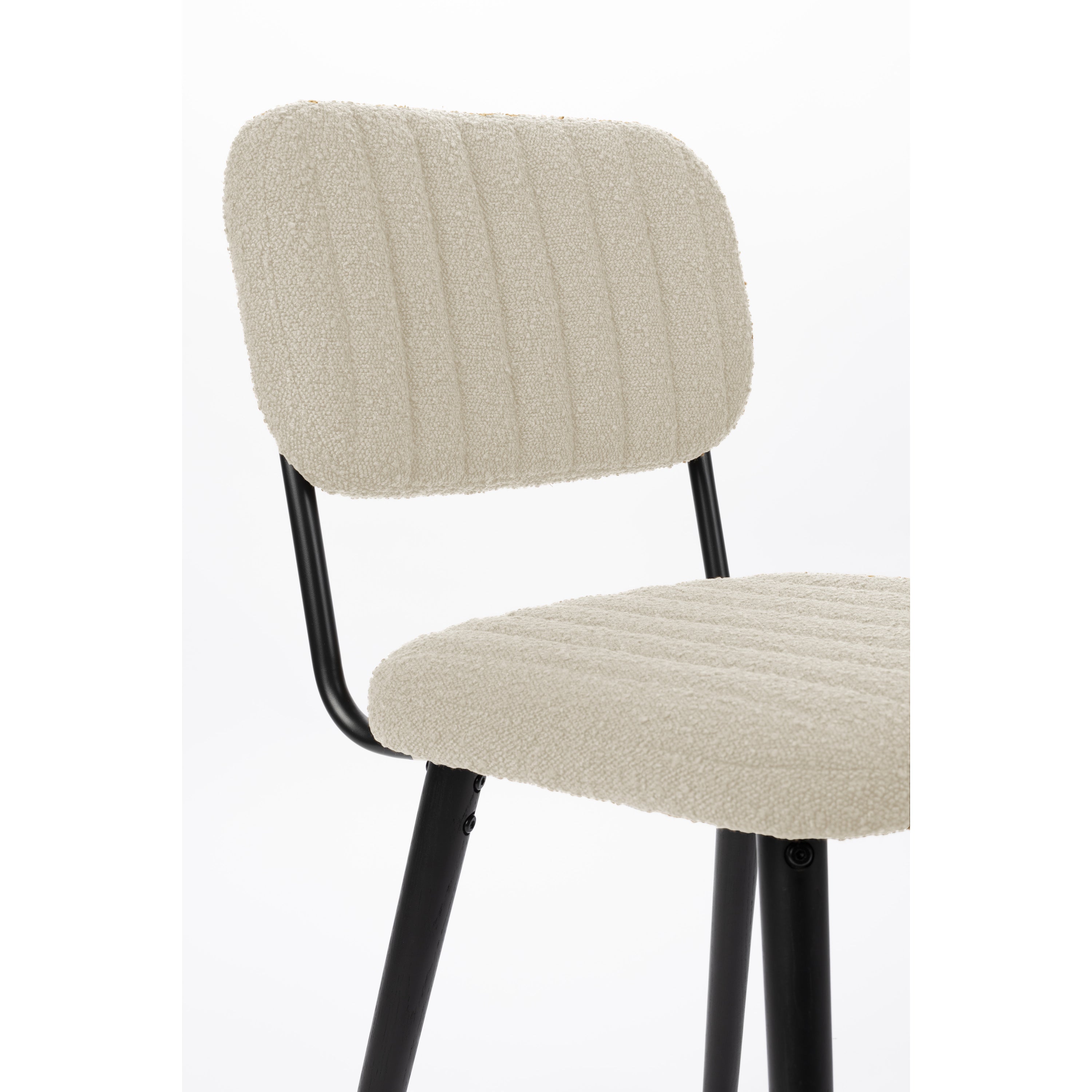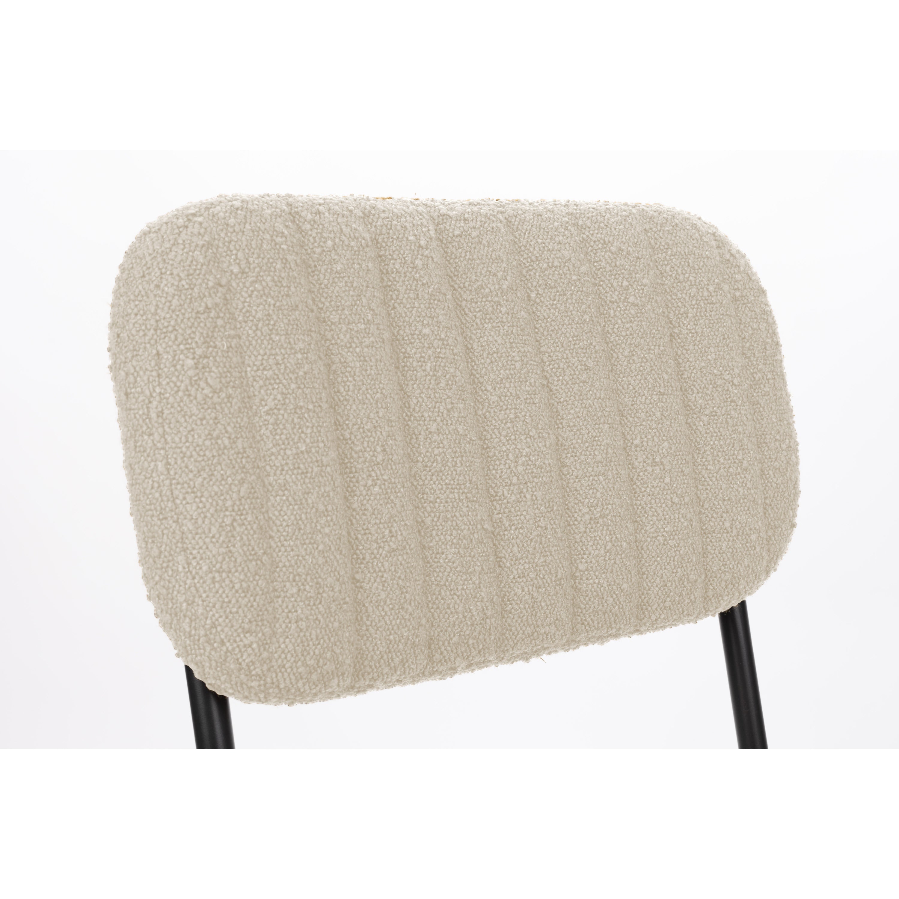 - Een zachte bouclé stof afgewerkt met verticale stiksels
