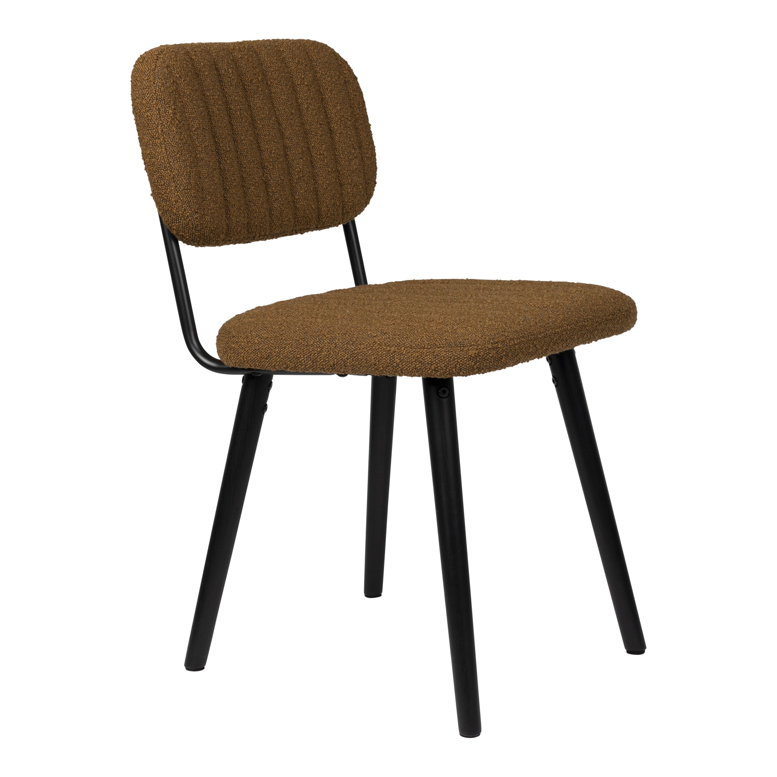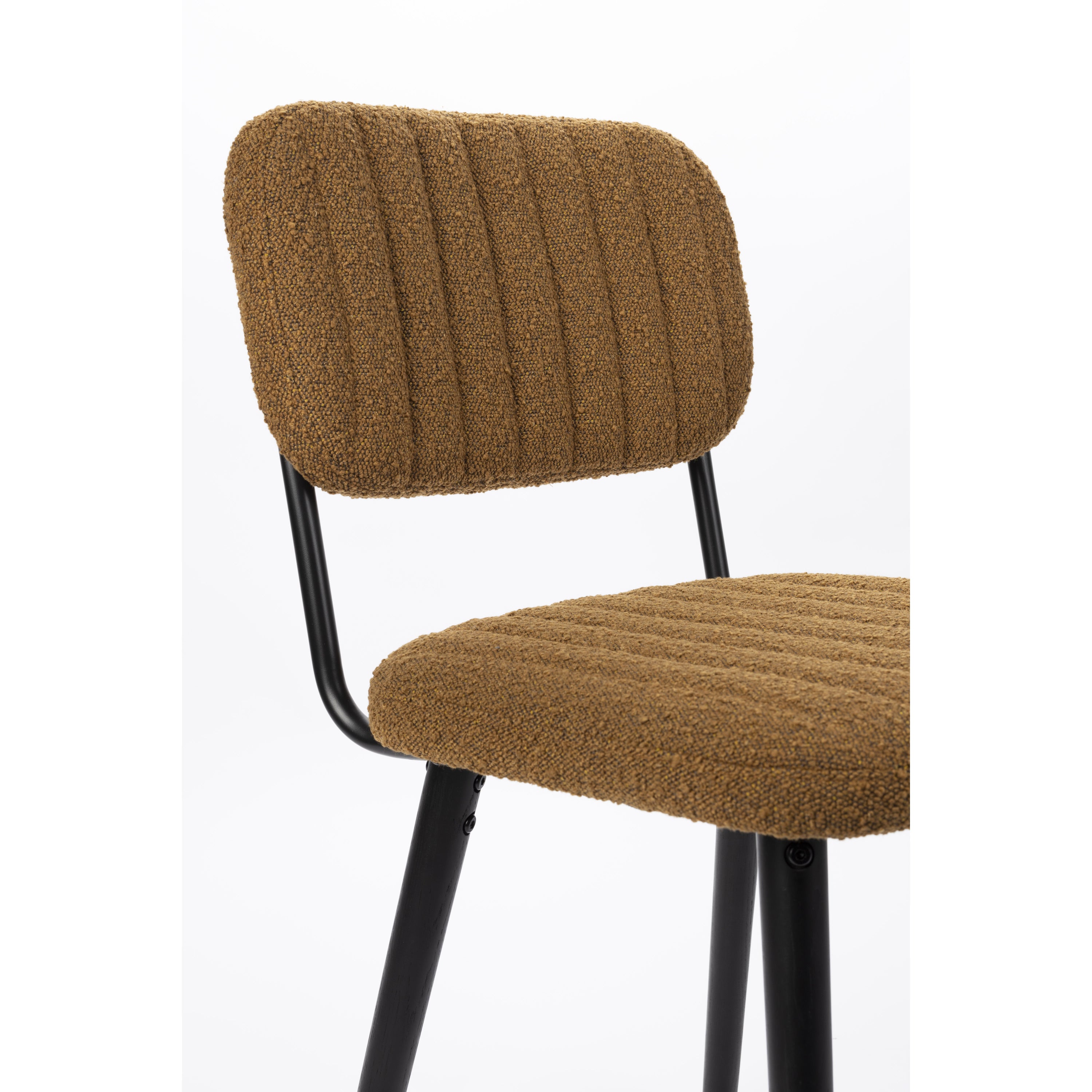- Een zachte bouclé stof afgewerkt met verticale stiksels