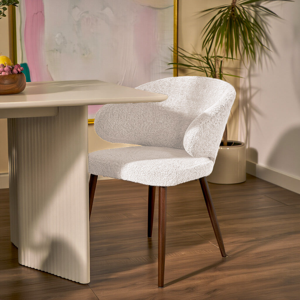 - Zacht bouclé zitvlak met comfortabele rondingen