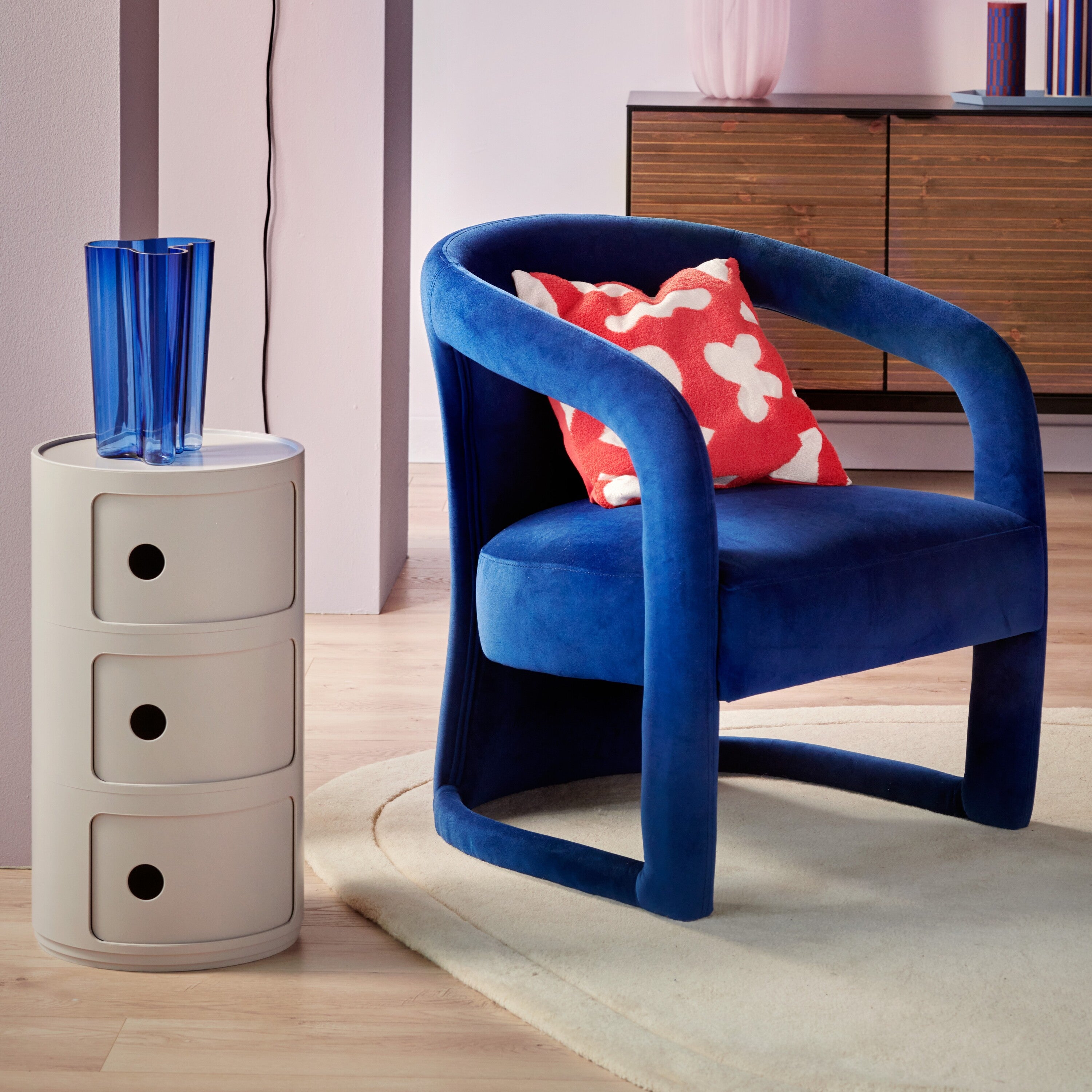 - Een fauteuil met stijlvolle afgeronde hoeken