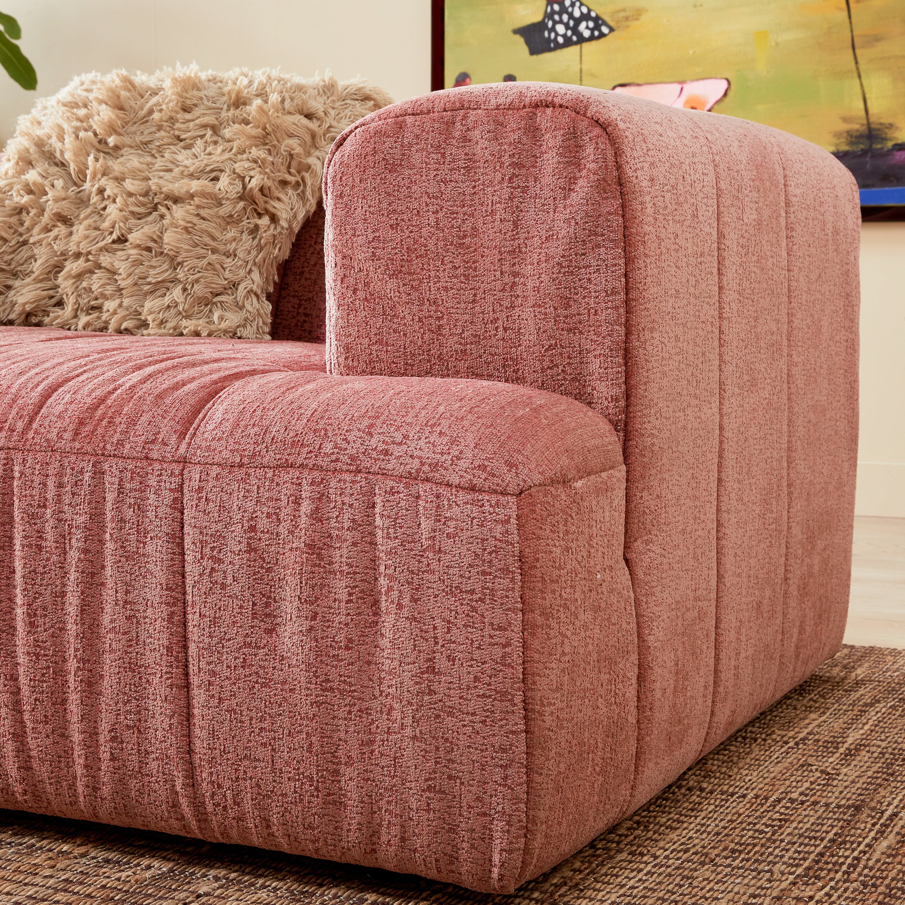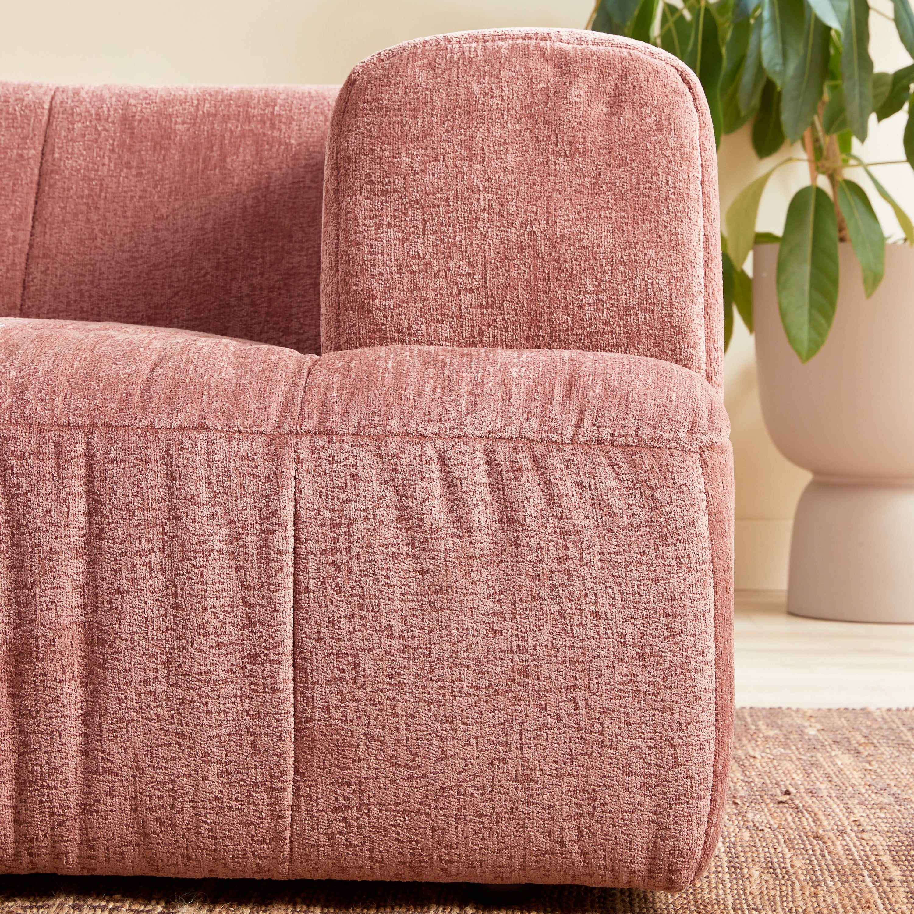 - De Brick hoekbank van by fonQ is een comfortable bank waar je na een lange dag op wilt neerploffen. De bekleding voelt heerlijk zacht aan en deze roze bank met ronde hoeken geeft jouw woonkamer een knusse sfeer.