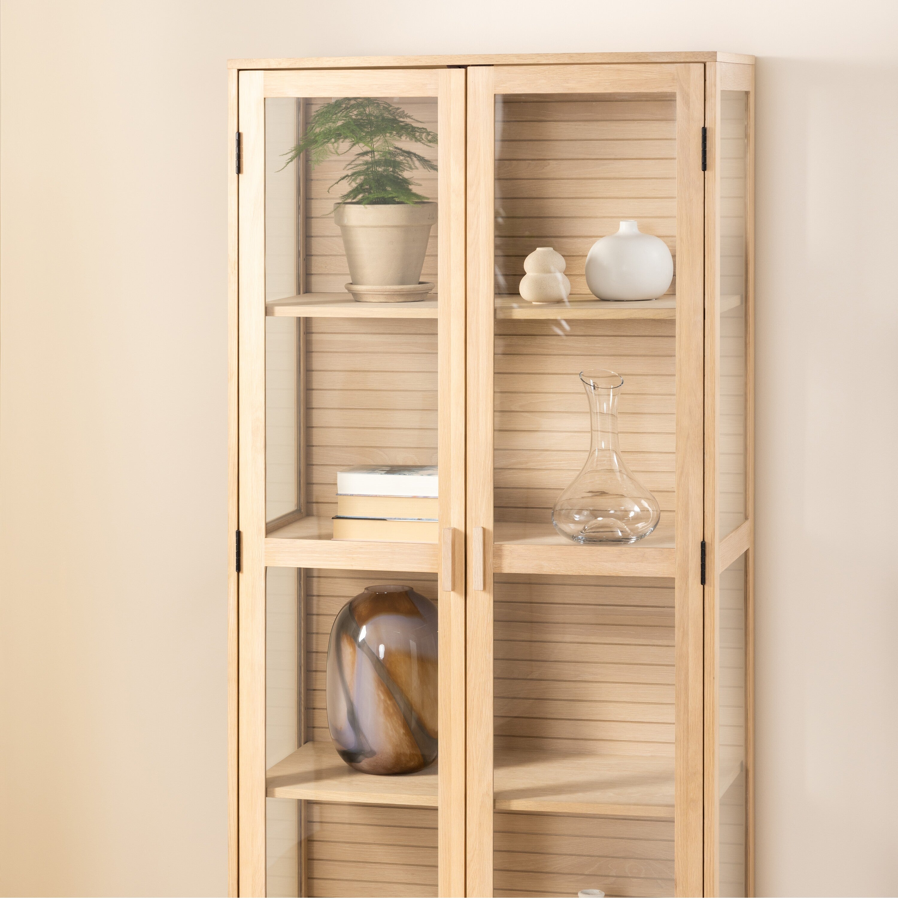 - Gemaakt van MDF met eikenhouten poten en glazen deuren