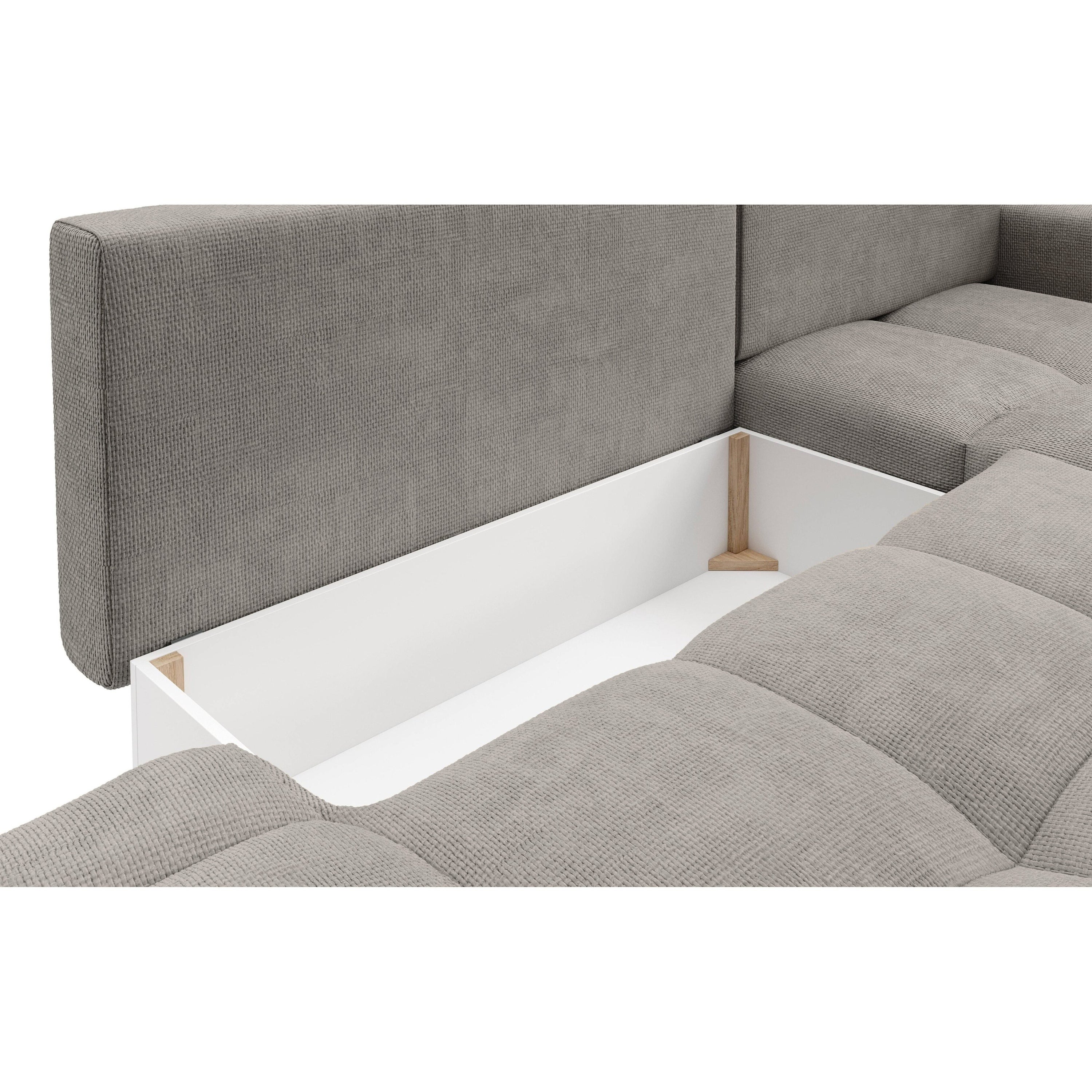 Slaapgedeelte: 140 x 215 cm Opbergruimte 104 x 61 x 19.5 cm Chaise longue breedte: 97.5 cm Poothoogte: 3.5 cm