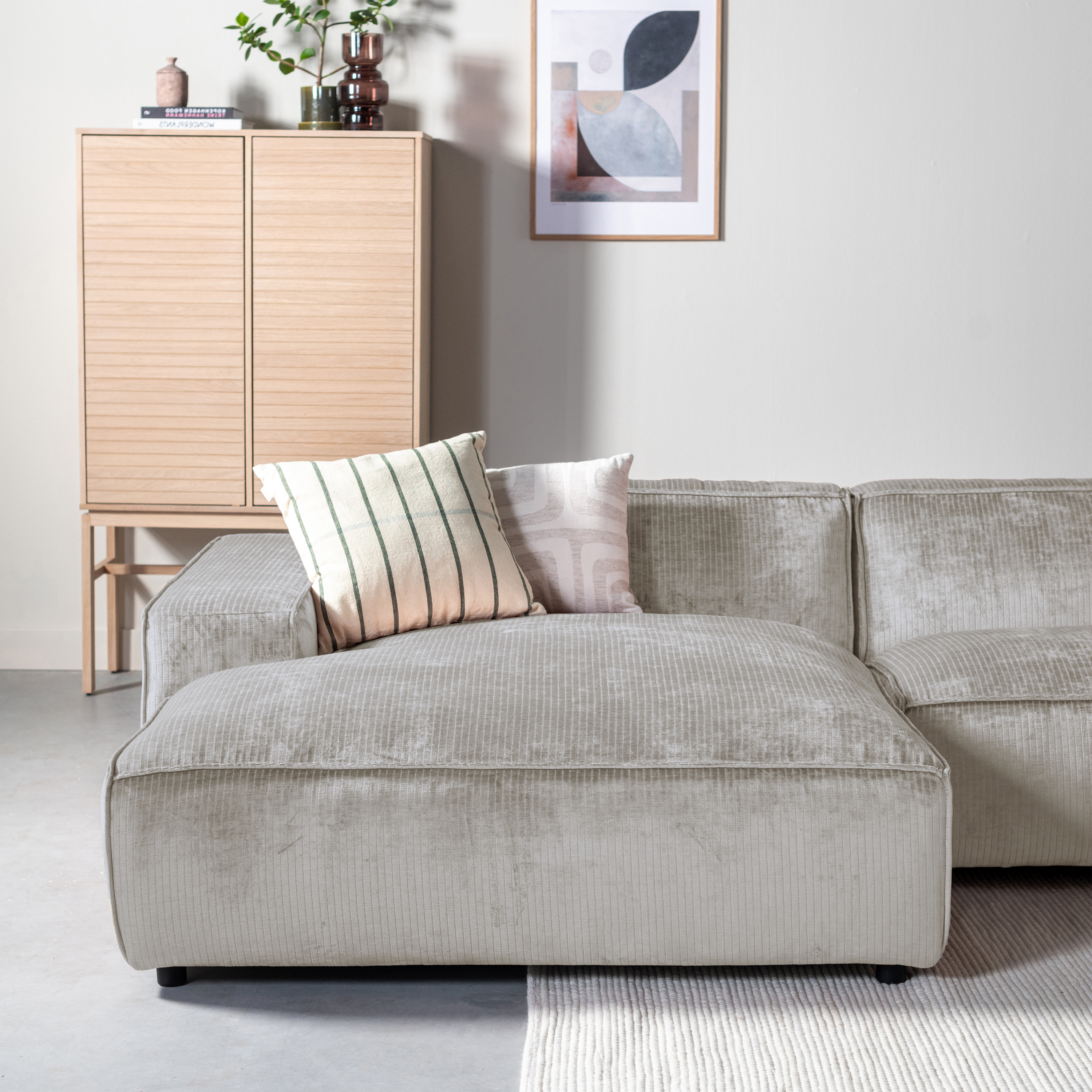 by fonQ Chunky Hoekbank met Chaise Longue Links - Rib - Olifantengrijs