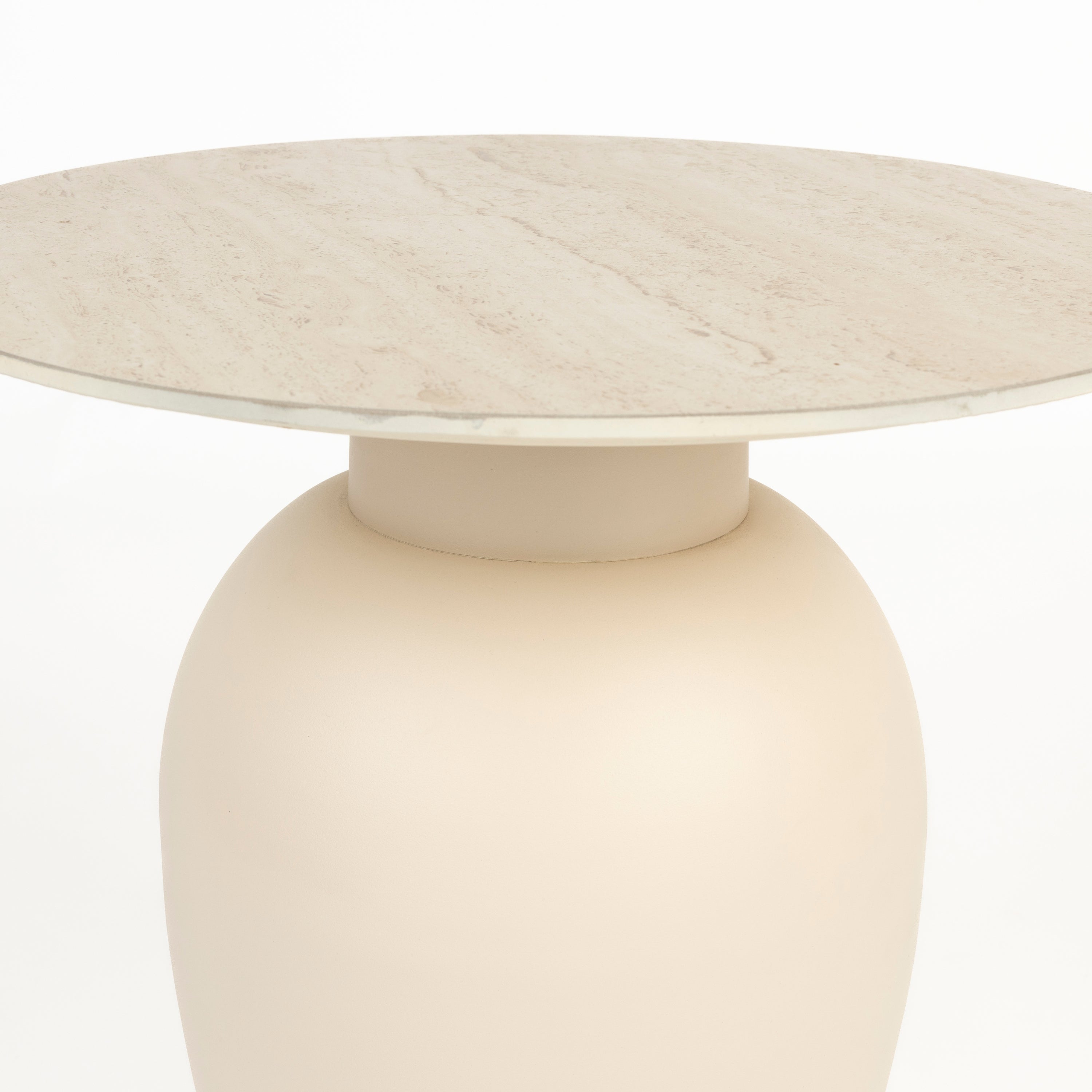 - Stevige poot van ijzer en travertin-look tafelblad van keramiek