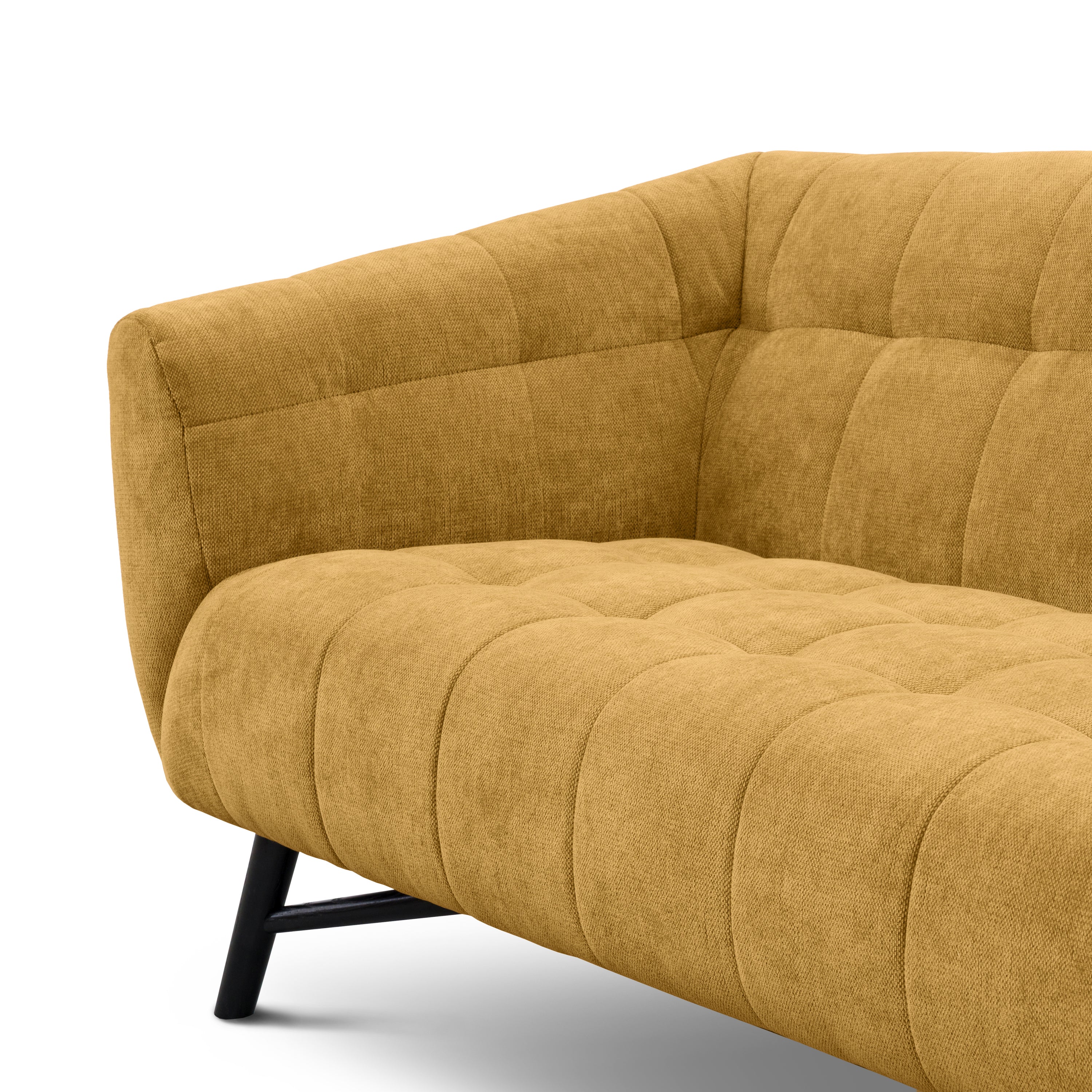- Brede armleuningen die het ontwerp z’n volle, uitnodigende vorm geven