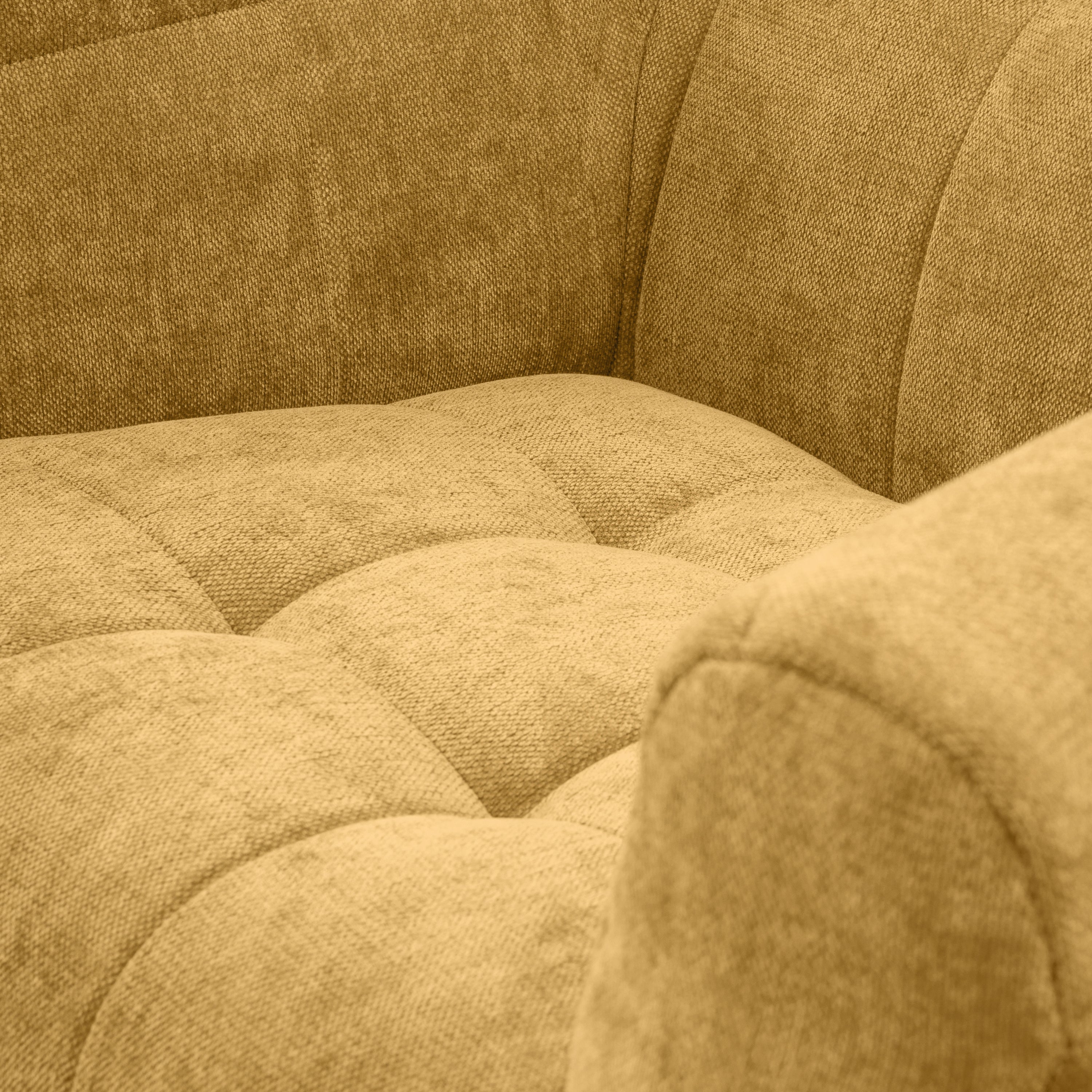 - Brede armleuningen die het ontwerp z’n volle, uitnodigende vorm geven