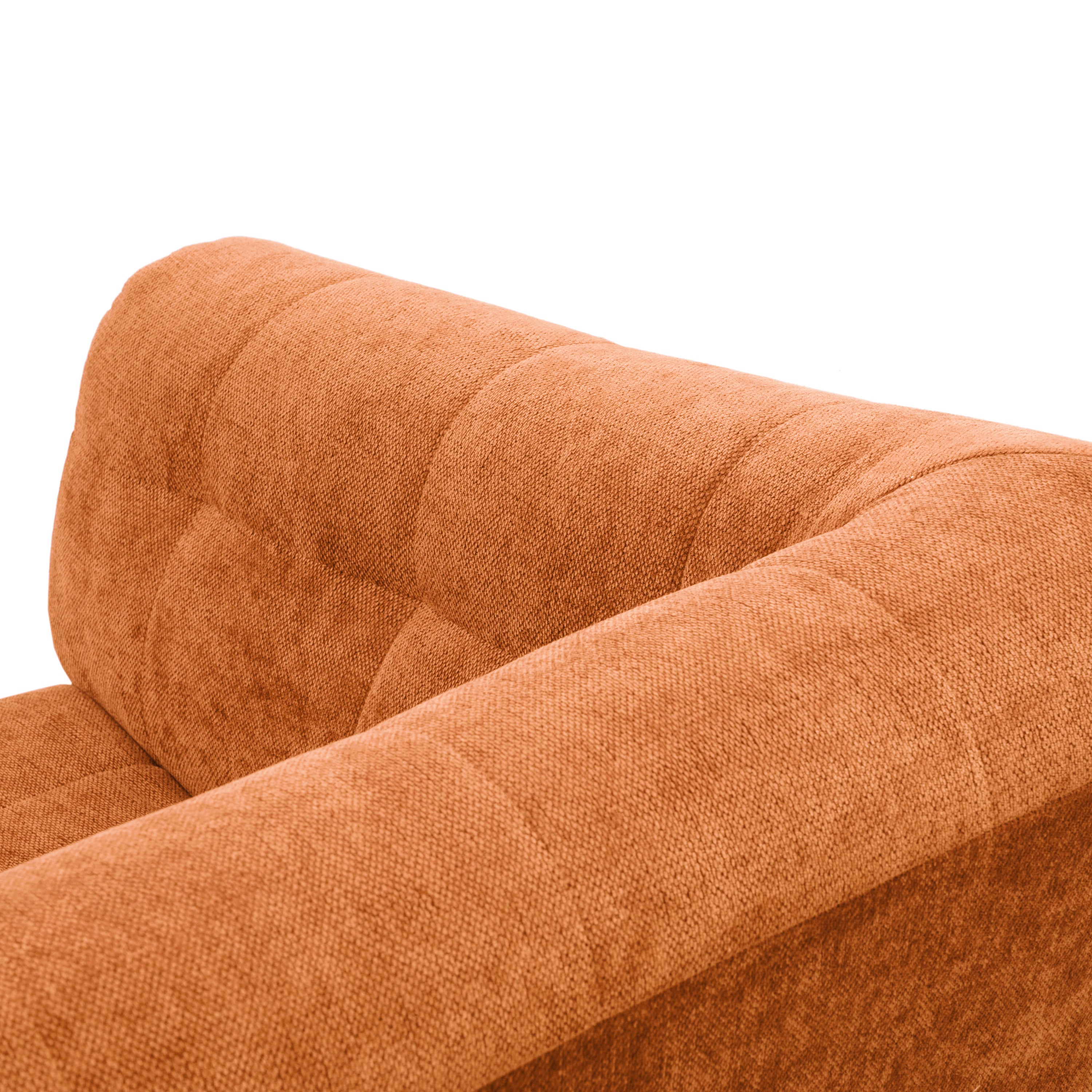 - Brede armleuningen die het ontwerp z’n volle, uitnodigende vorm geven