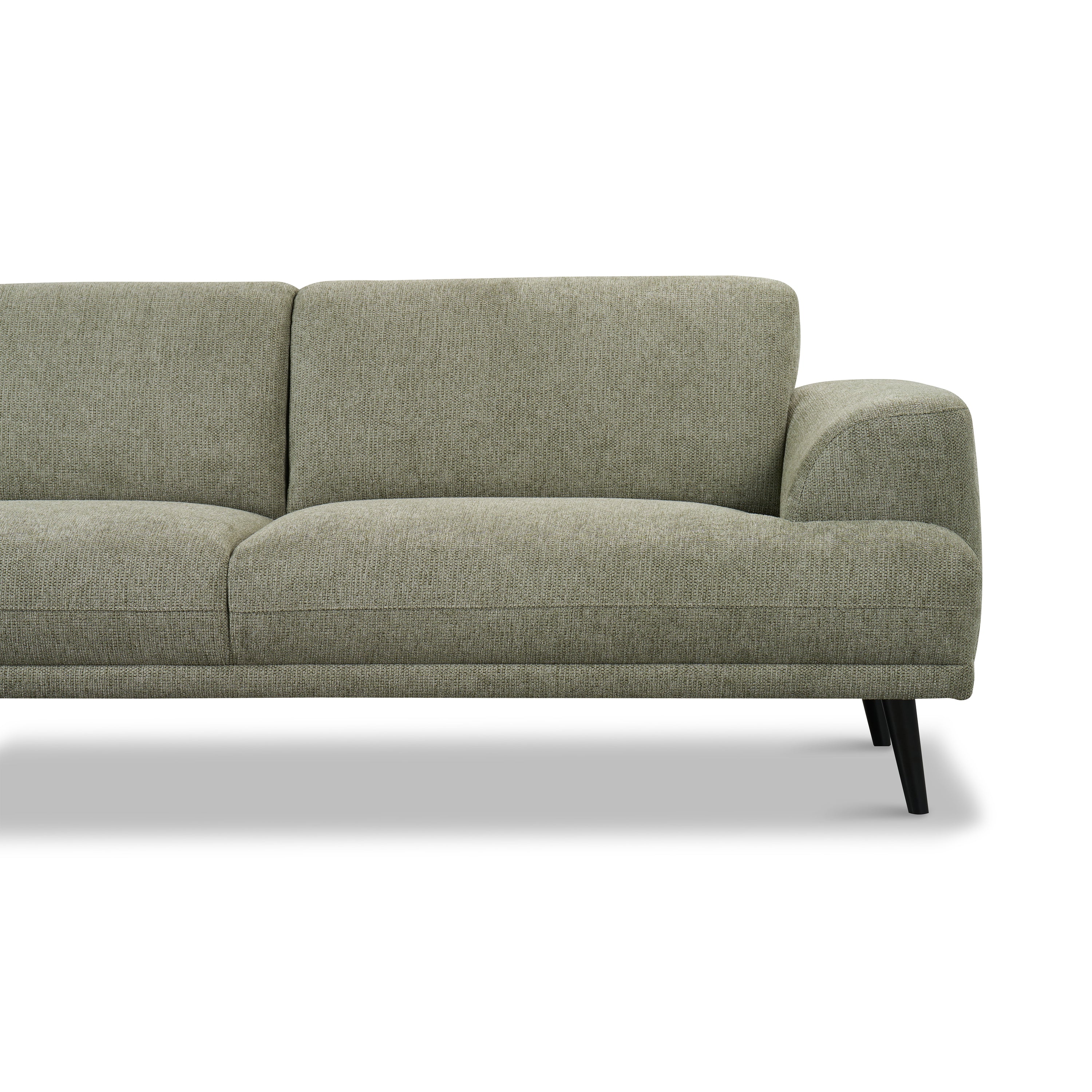 - De grove, gemêleerde bekleding geeft de bank een warme uitstraling