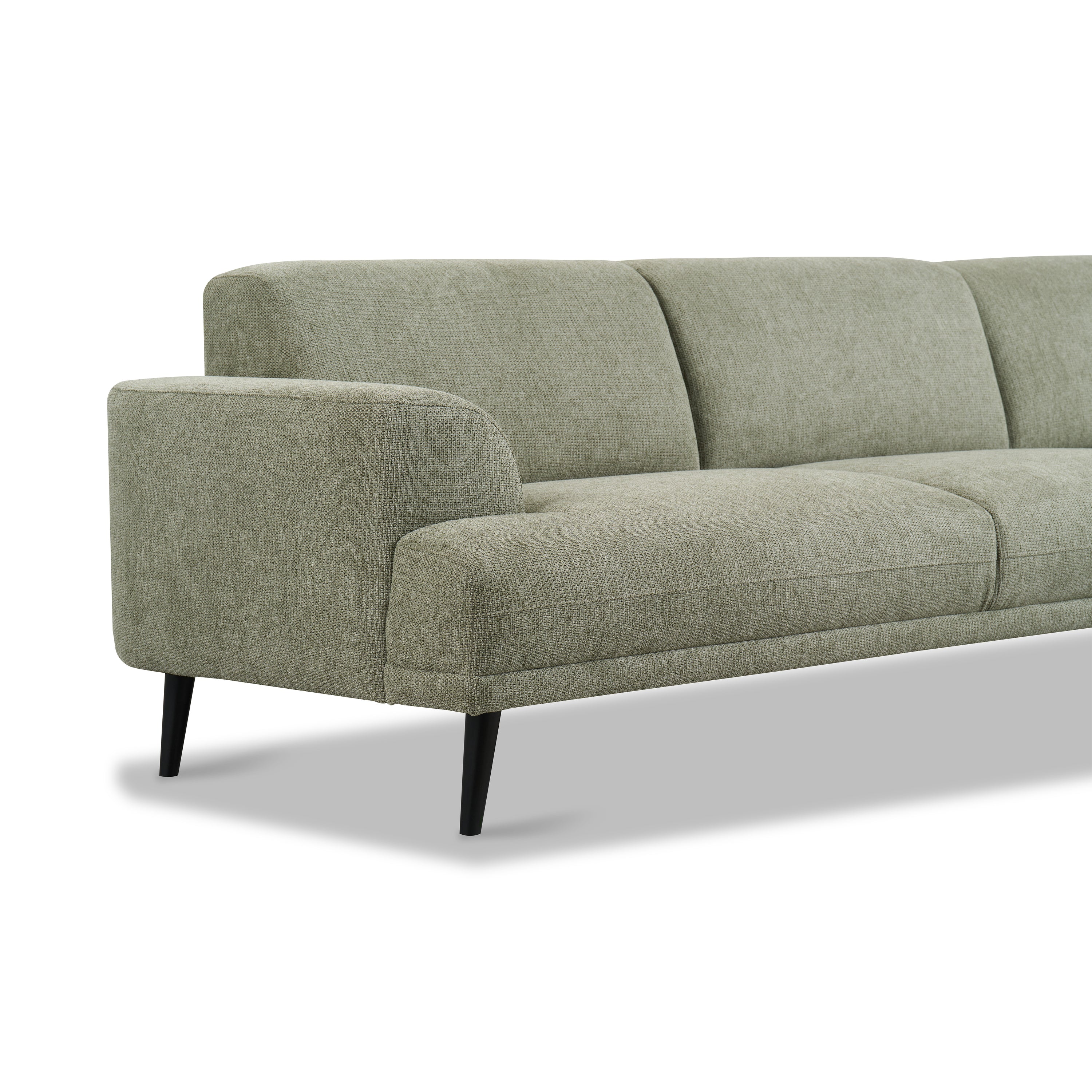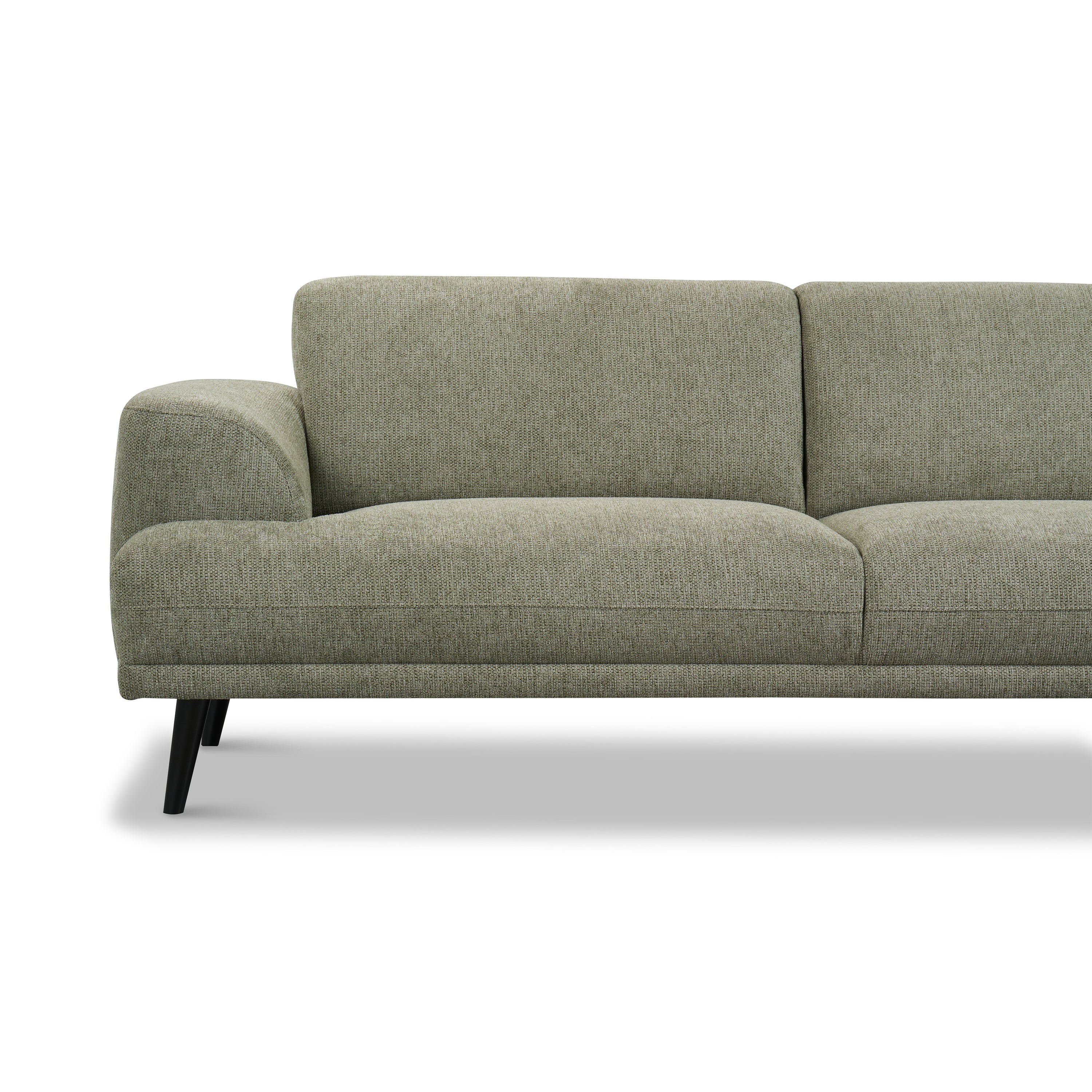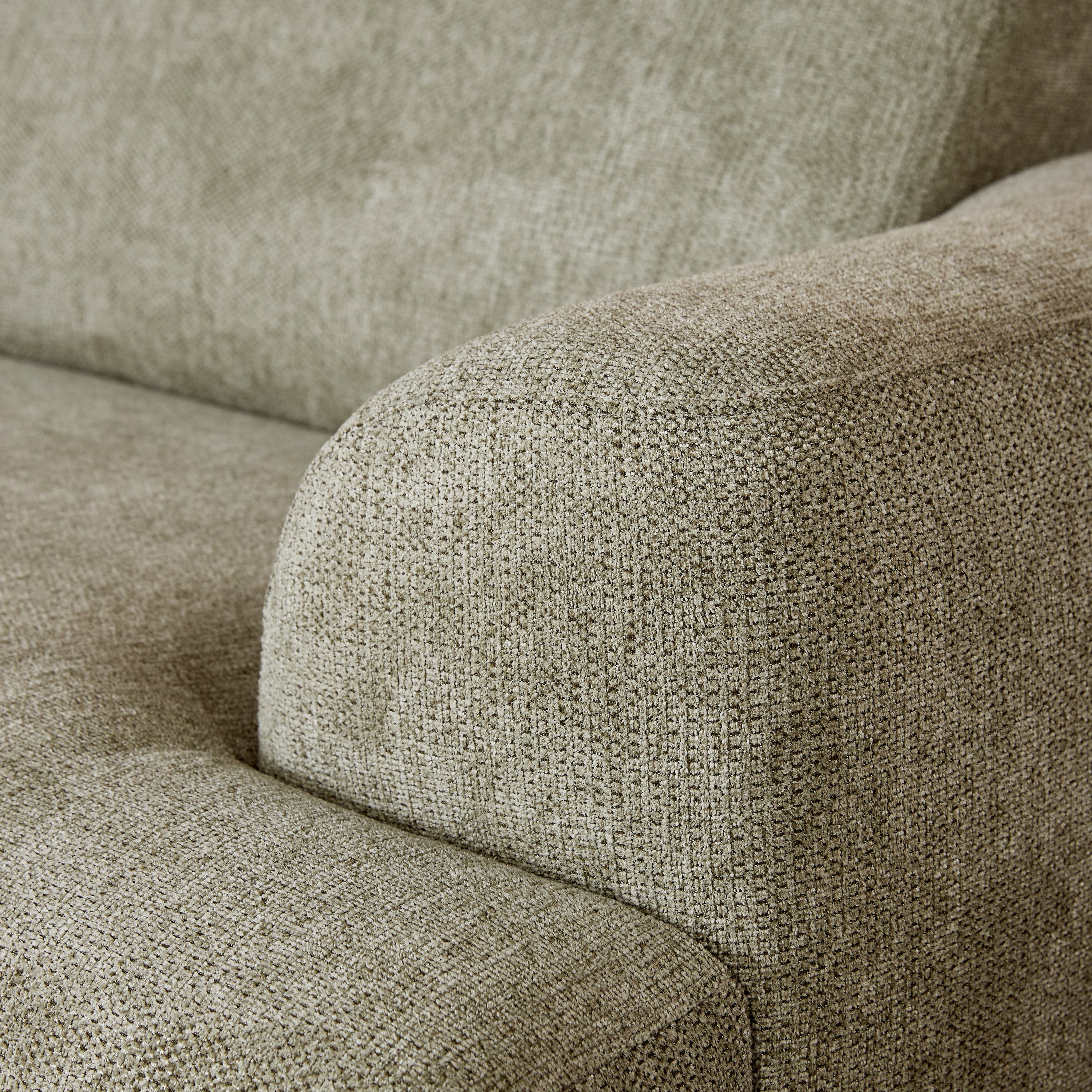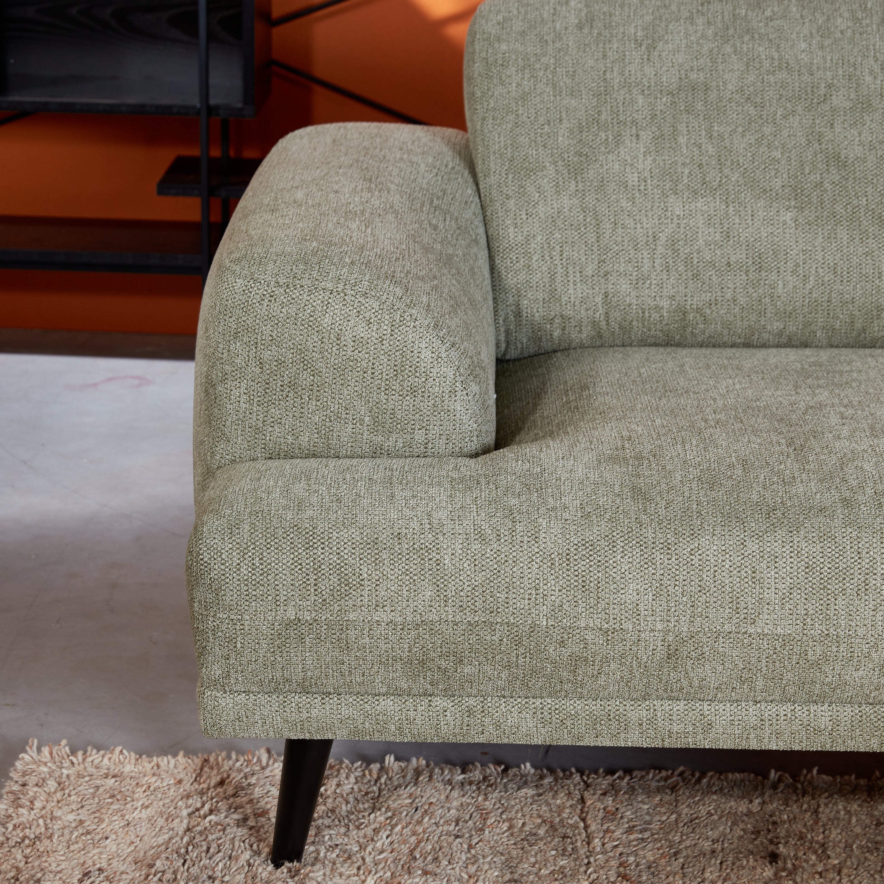 - De grove, gemêleerde bekleding geeft de bank een warme uitstraling