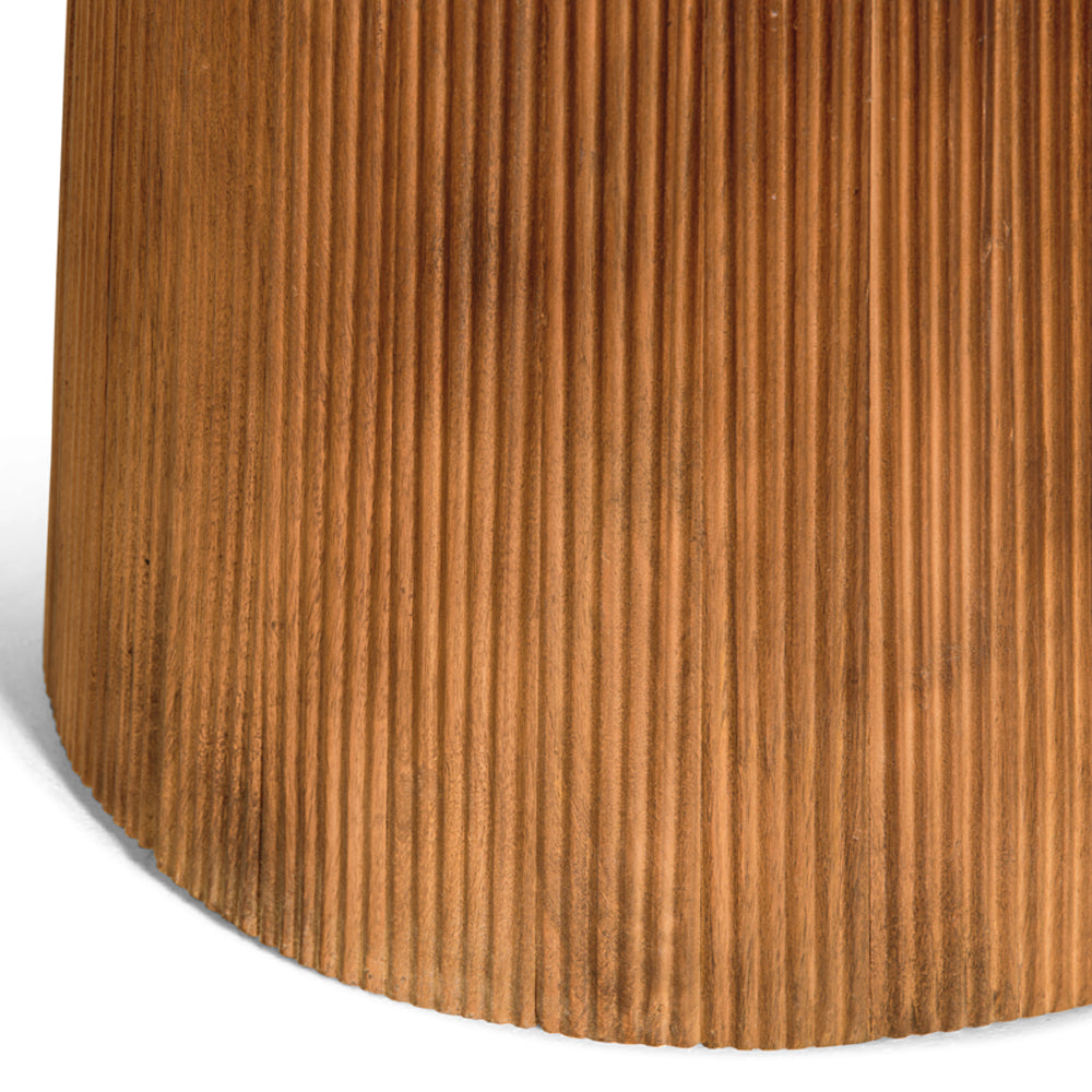 - De ronde vorm en verticale latjes geven deze tafel echt een retro look, mooi!
