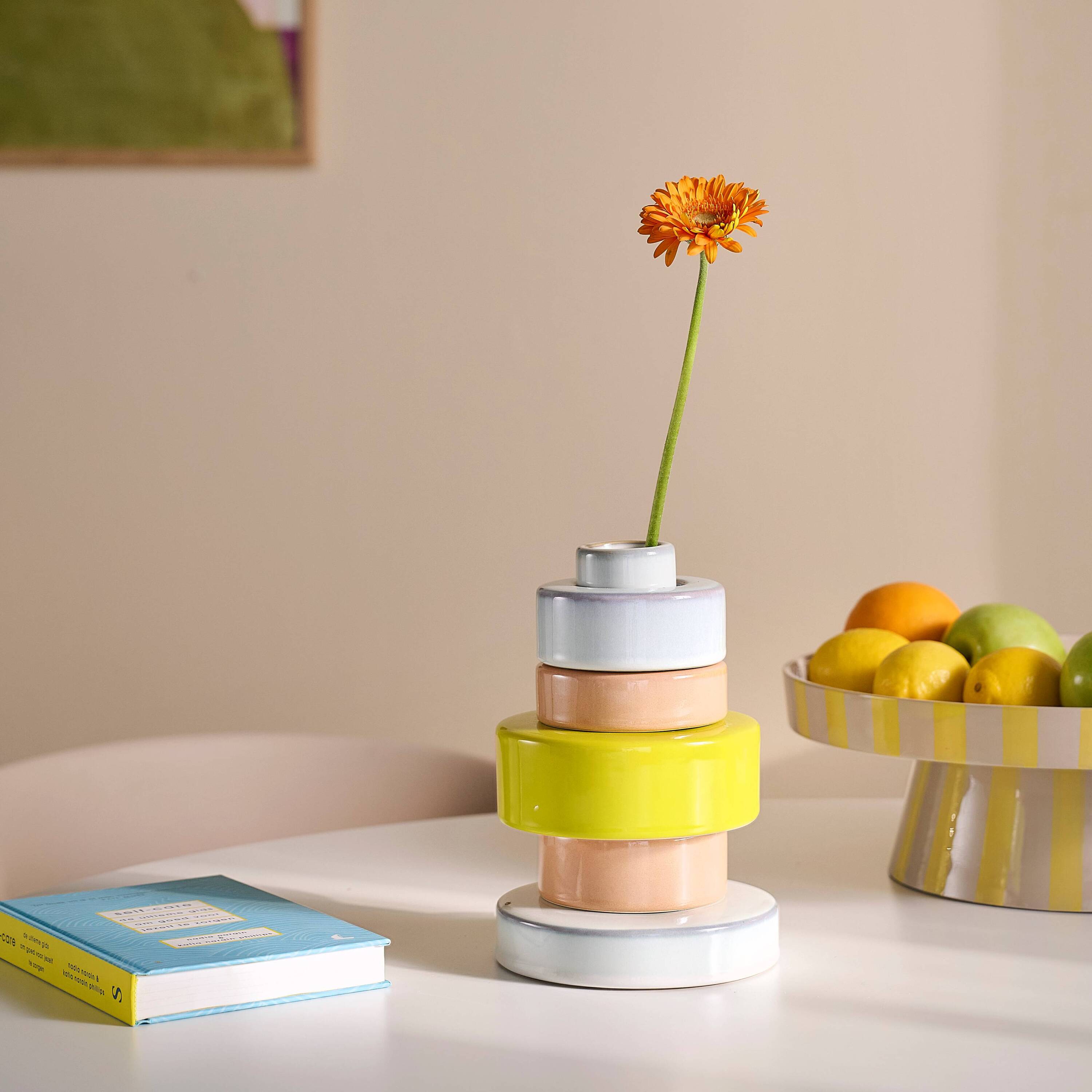 - Vaas van H 22,2 x Ø 15,2 cm met stapelbare ringen