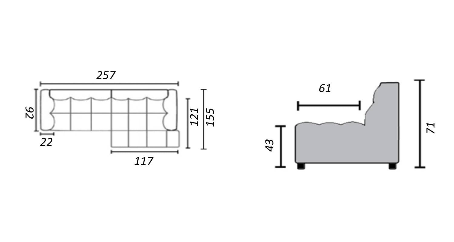 - Stijlvolle hoekbank van H 71 x B 257 x D 155 cm