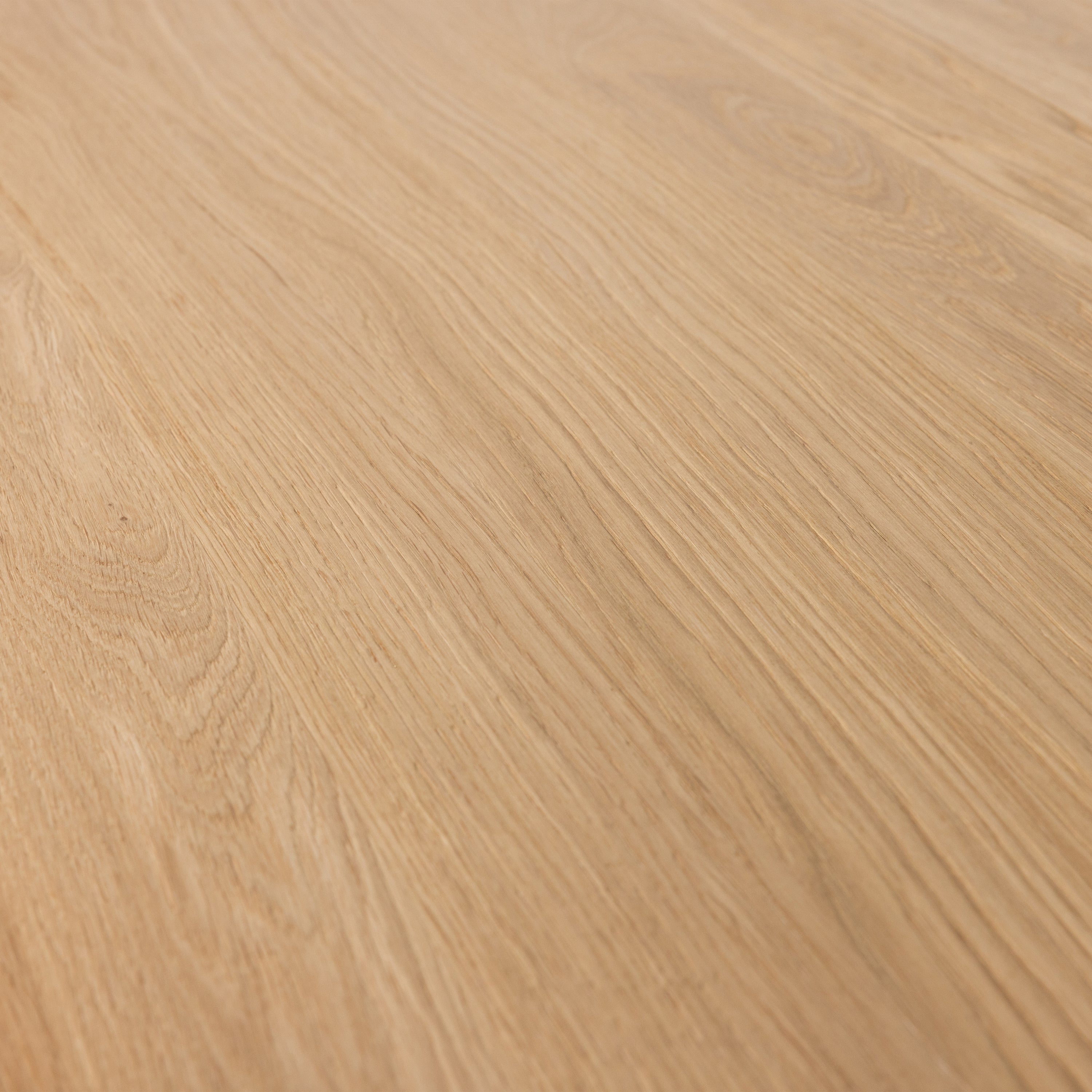 - Massief eiken tafelblad met zichtbare houtnerf en FSC certificering