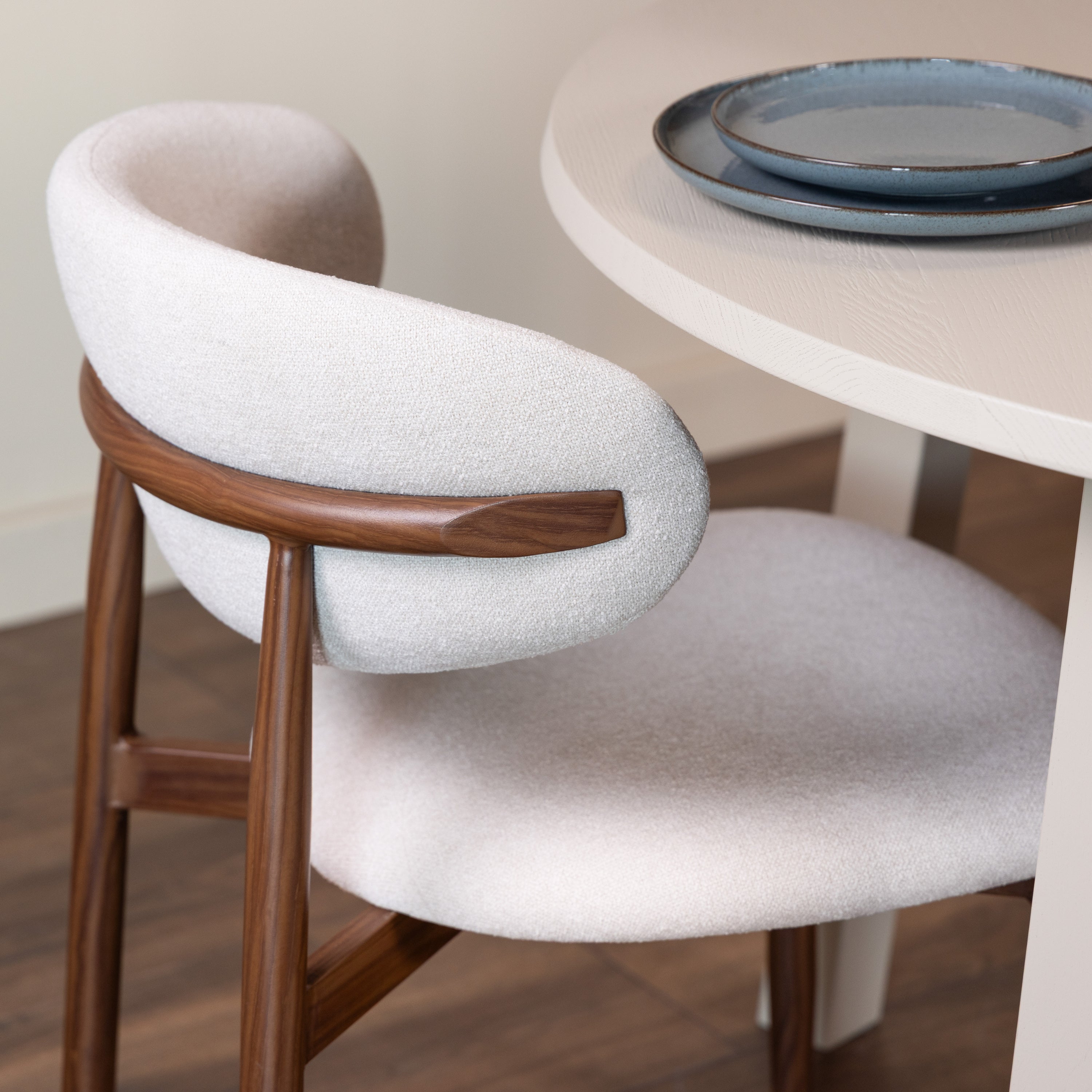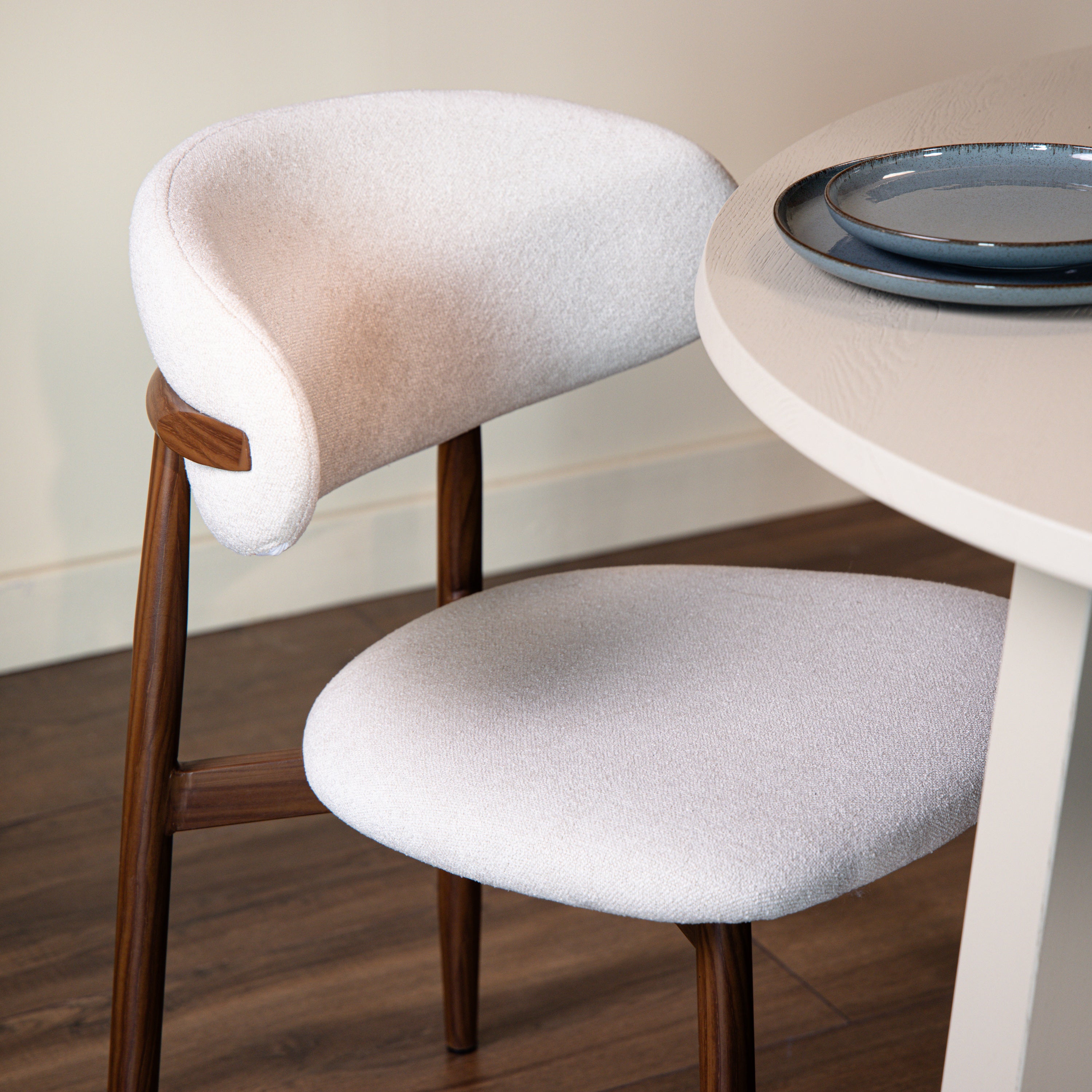 - Bekleed met een bouclé stof in een stijlvolle, platte weving