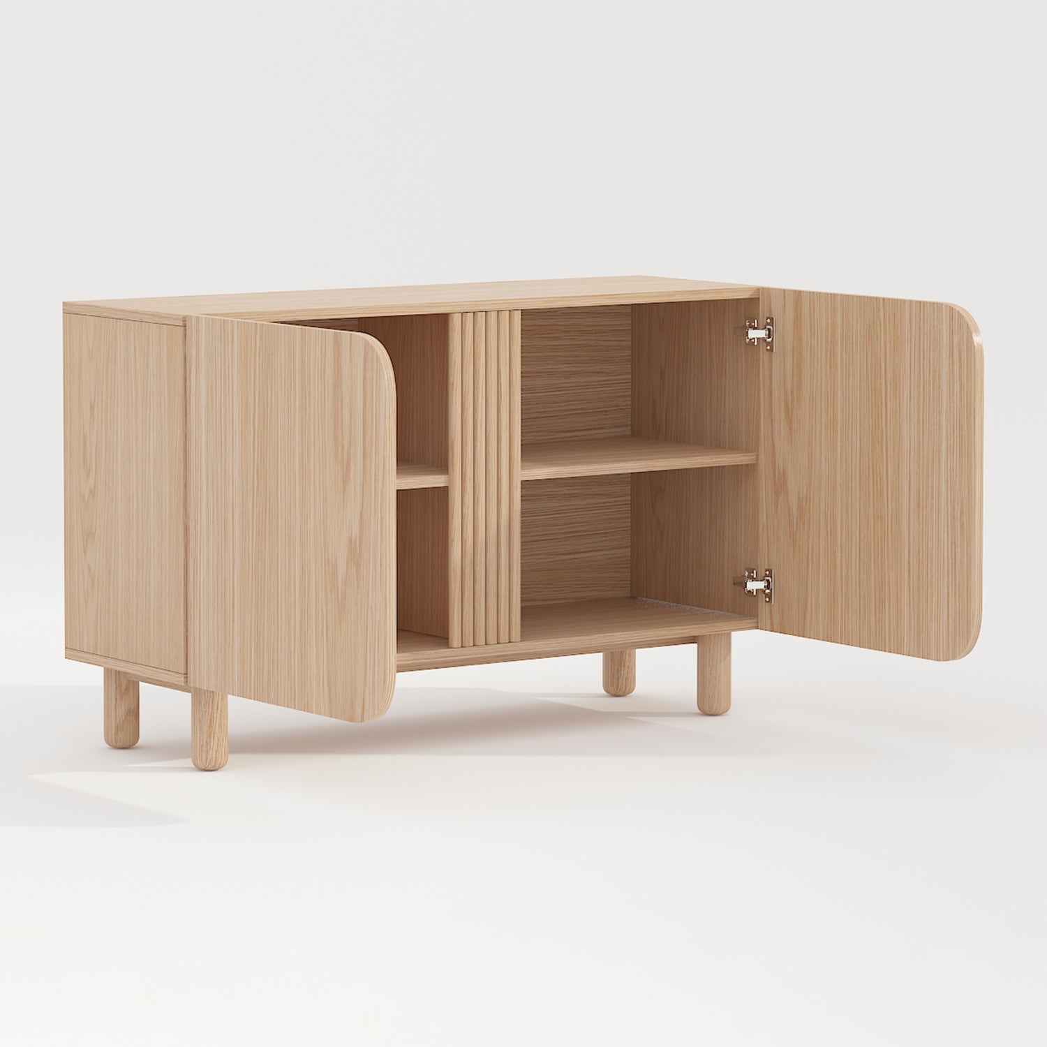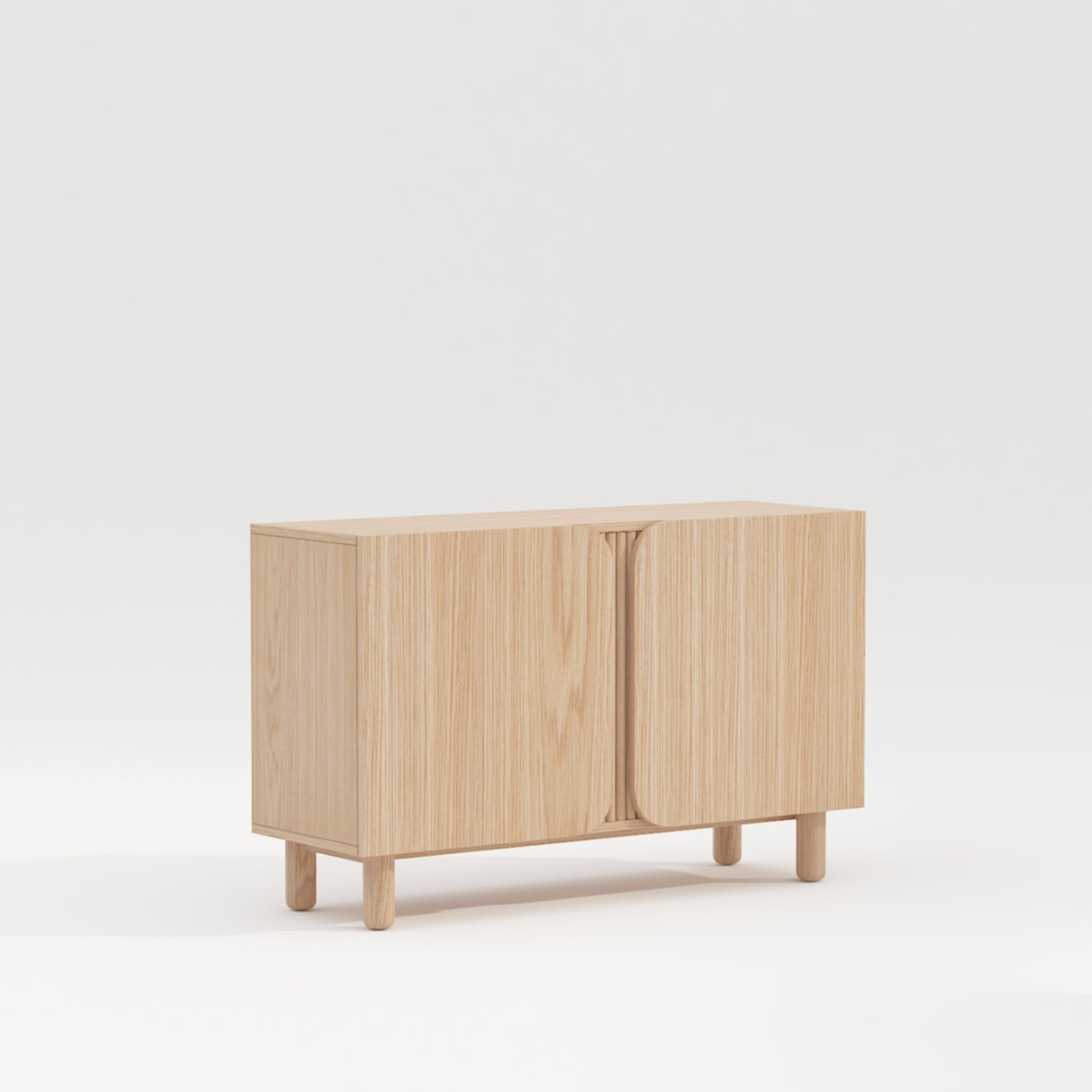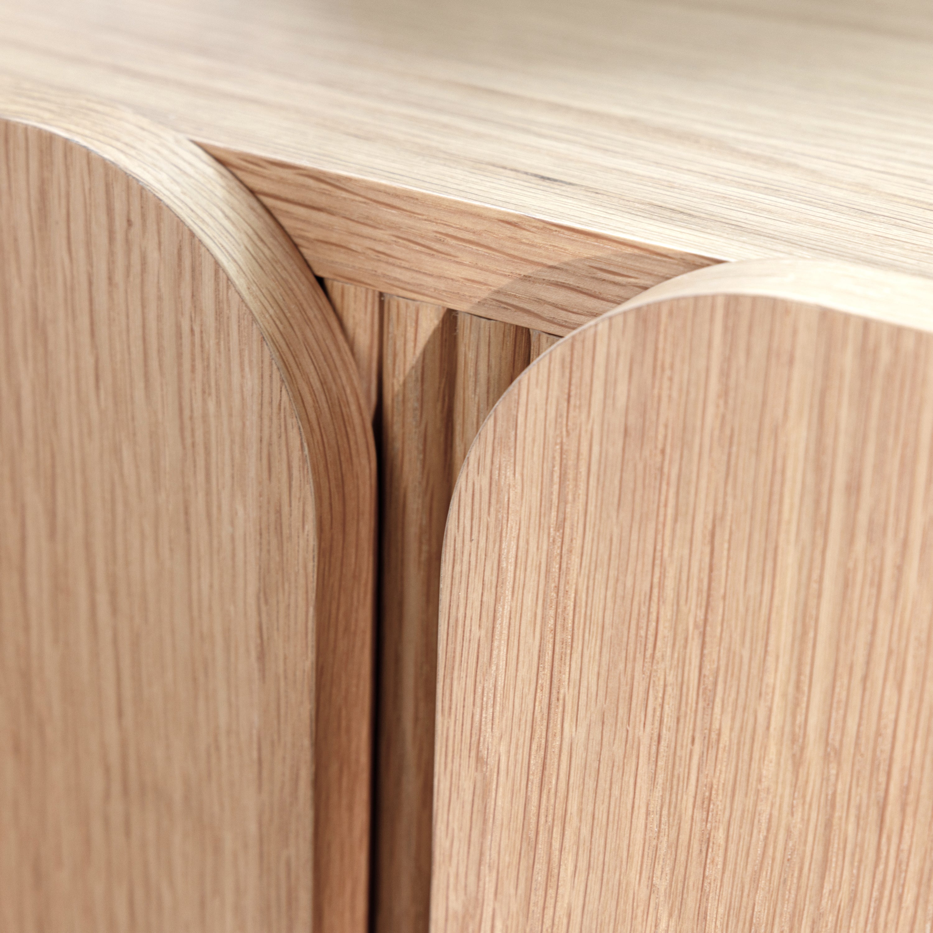 - De lamellen achter de deuren en de afgeronde hoeken geven dit dressoir een subtiele palmbladvibe