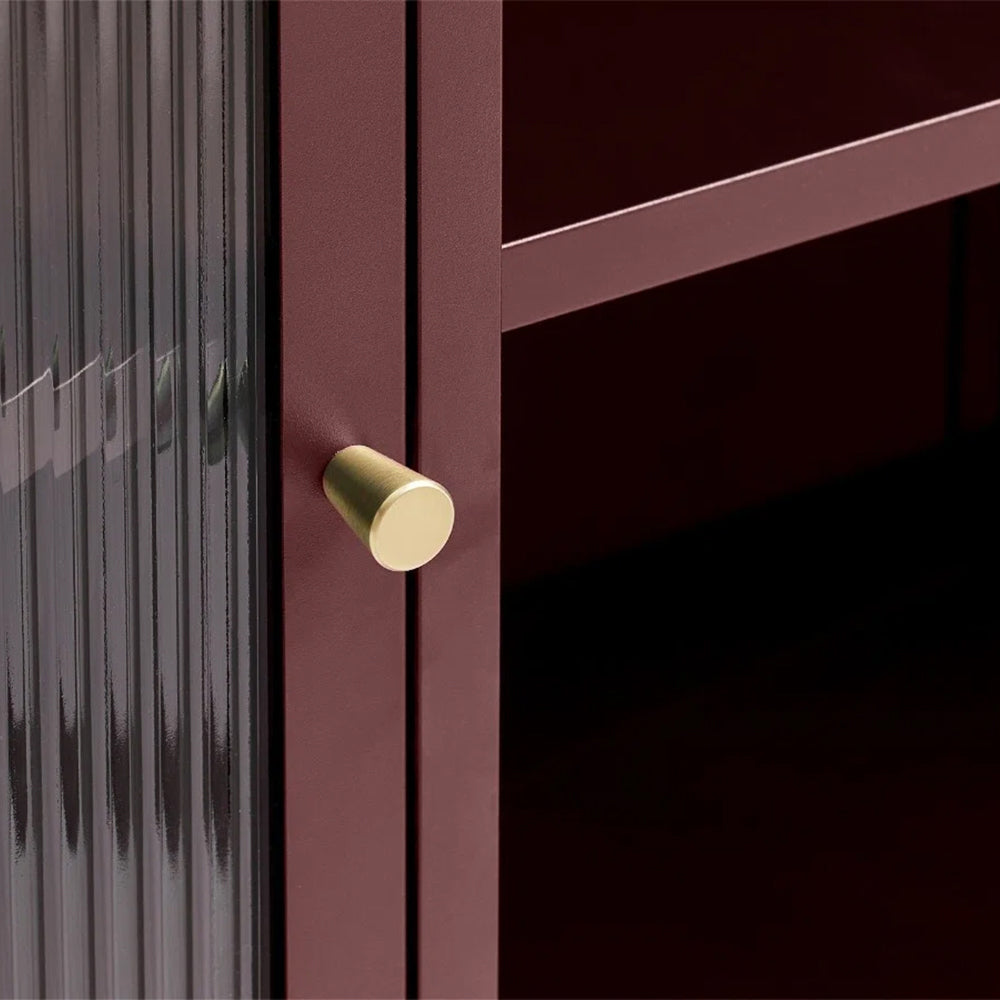 - De ruitjes met reliëf glas geven een verfijnde look aan de stoere kast