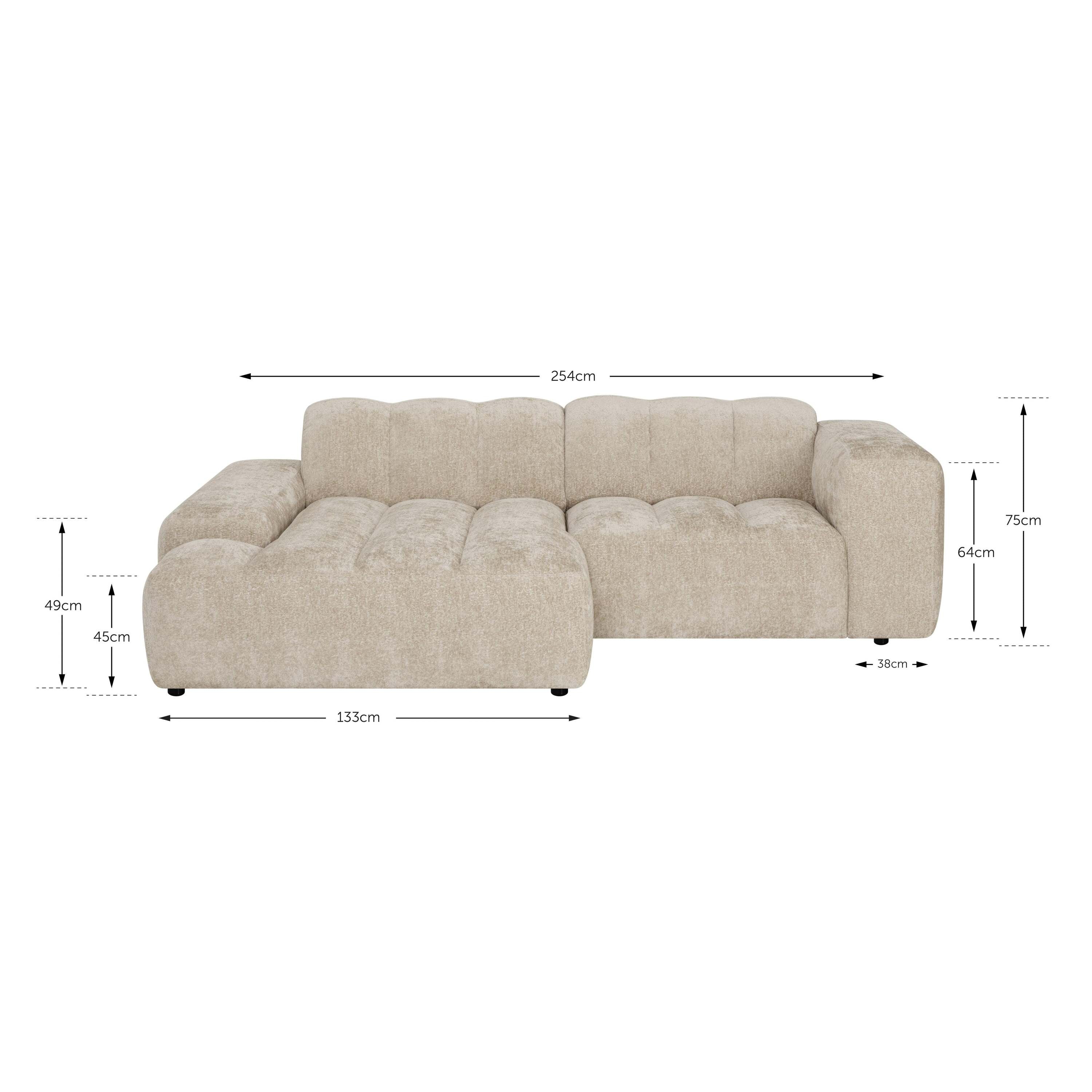 by fonQ Plume 2,5-zits Hoekbank met Chaise Longue XL Links - Chenille - Grijs
