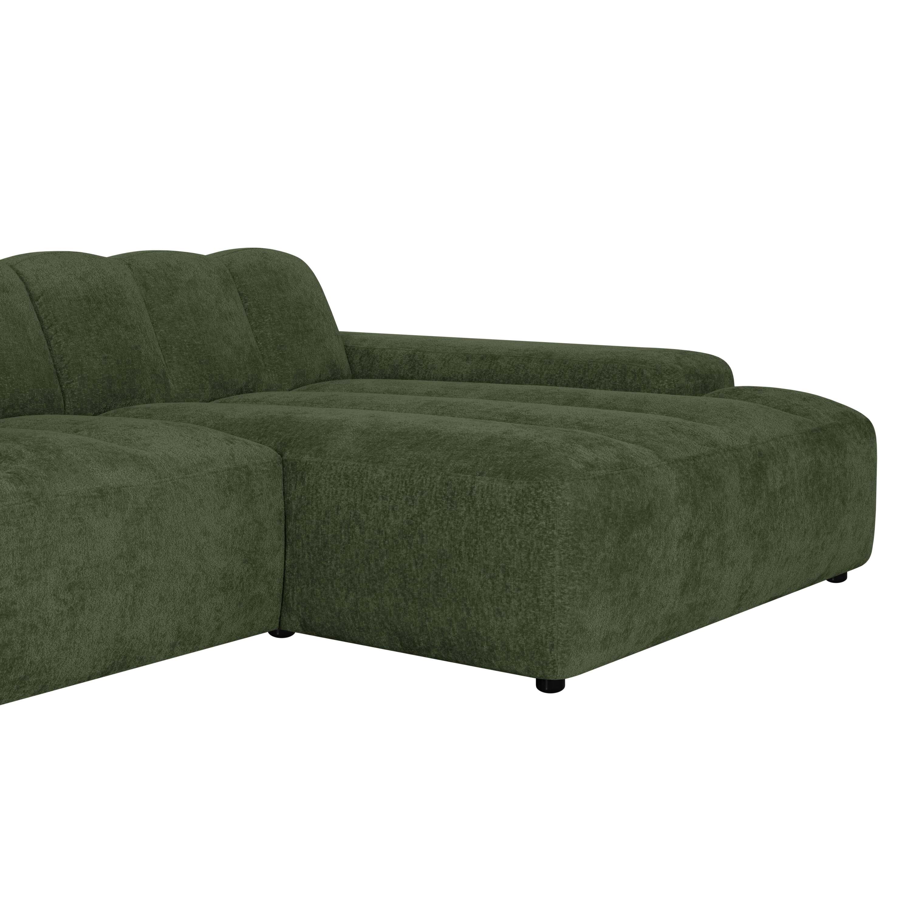 by fonQ Plume 4-zits Hoekbank met Chaise Longue XL Rechts - Chenille - Groen