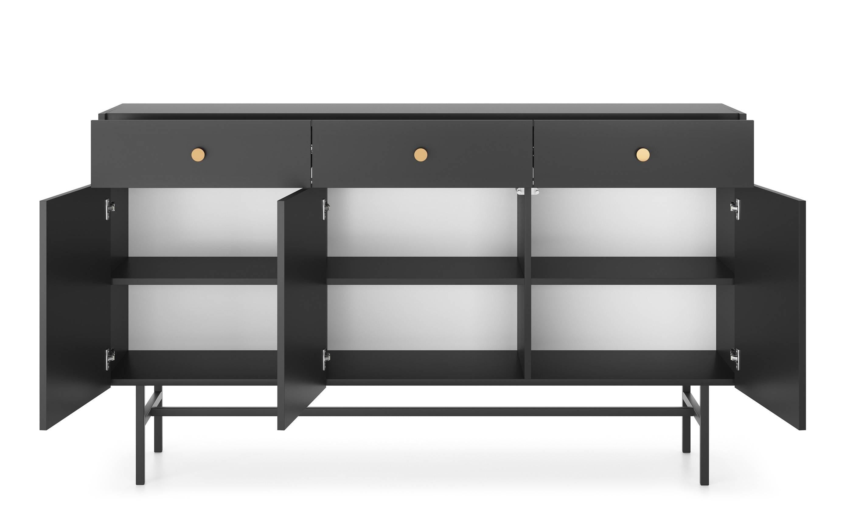 - De drie ruime laden en planken achter de deuren volop opbergruimte bieden voor servies, textiel en meer!