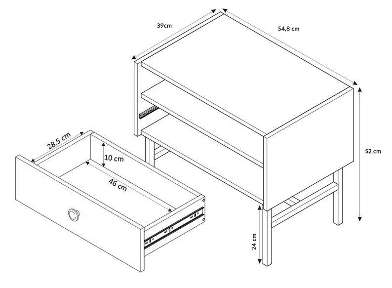 - Het compacte nachtkastje meet H 52 x B 55 x D 39 cm