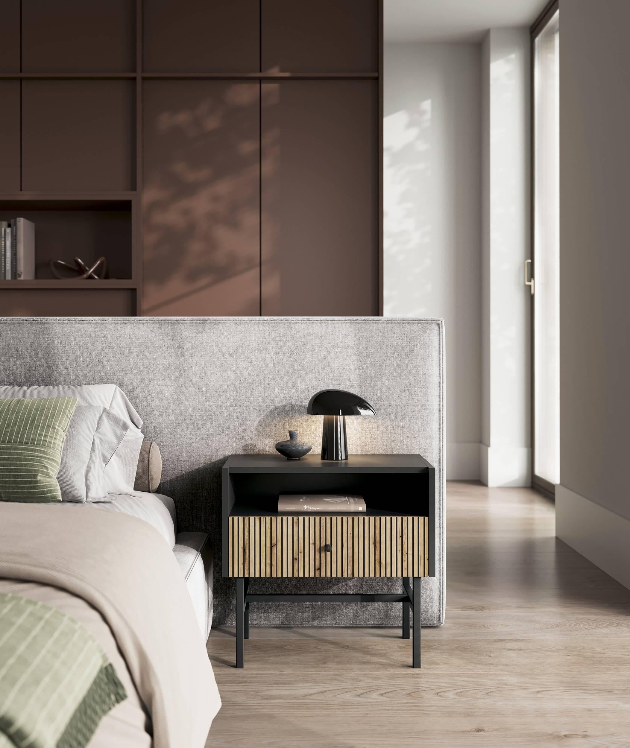 - Het compacte nachtkastje meet H 52 x B 55 x D 39 cm