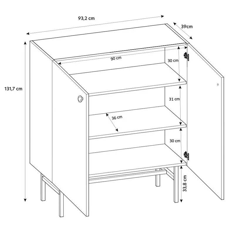 - Gesloten opbergkast van H 131,7 x B 93,2 x D 39 cm