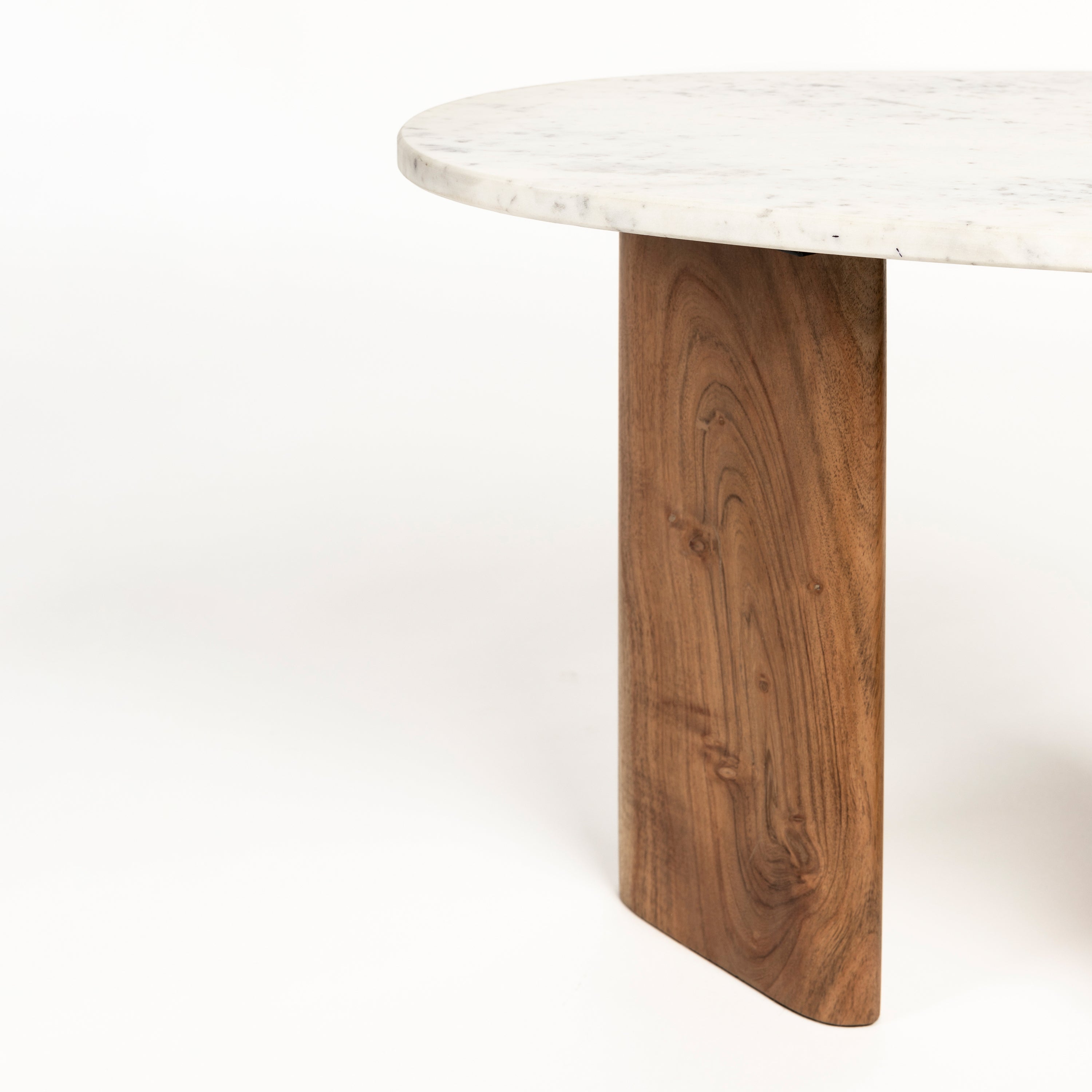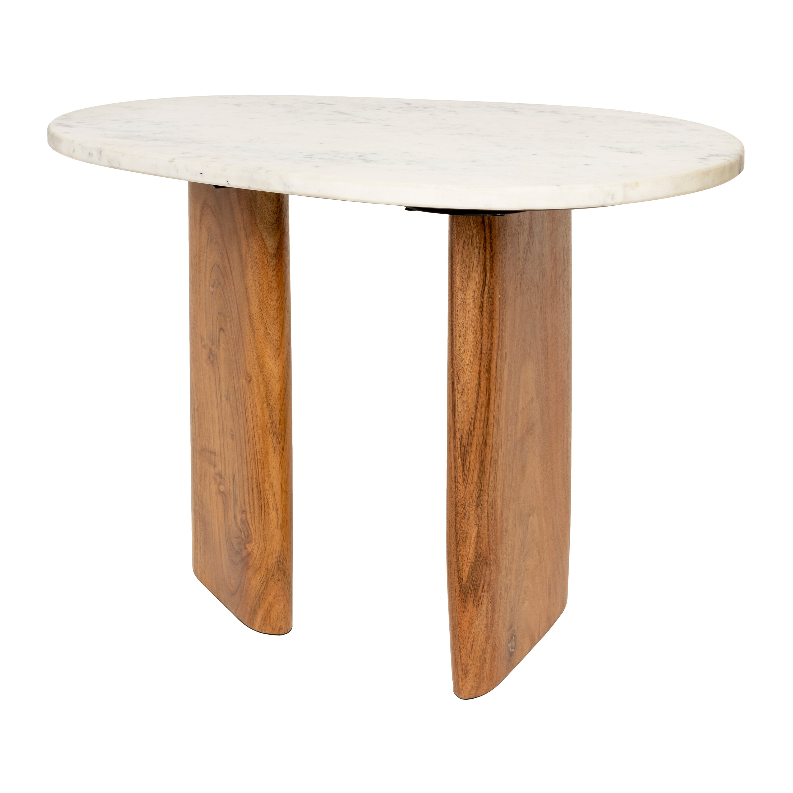 - Tafelblad van luxueus marmer met een acaciahouten onderstel