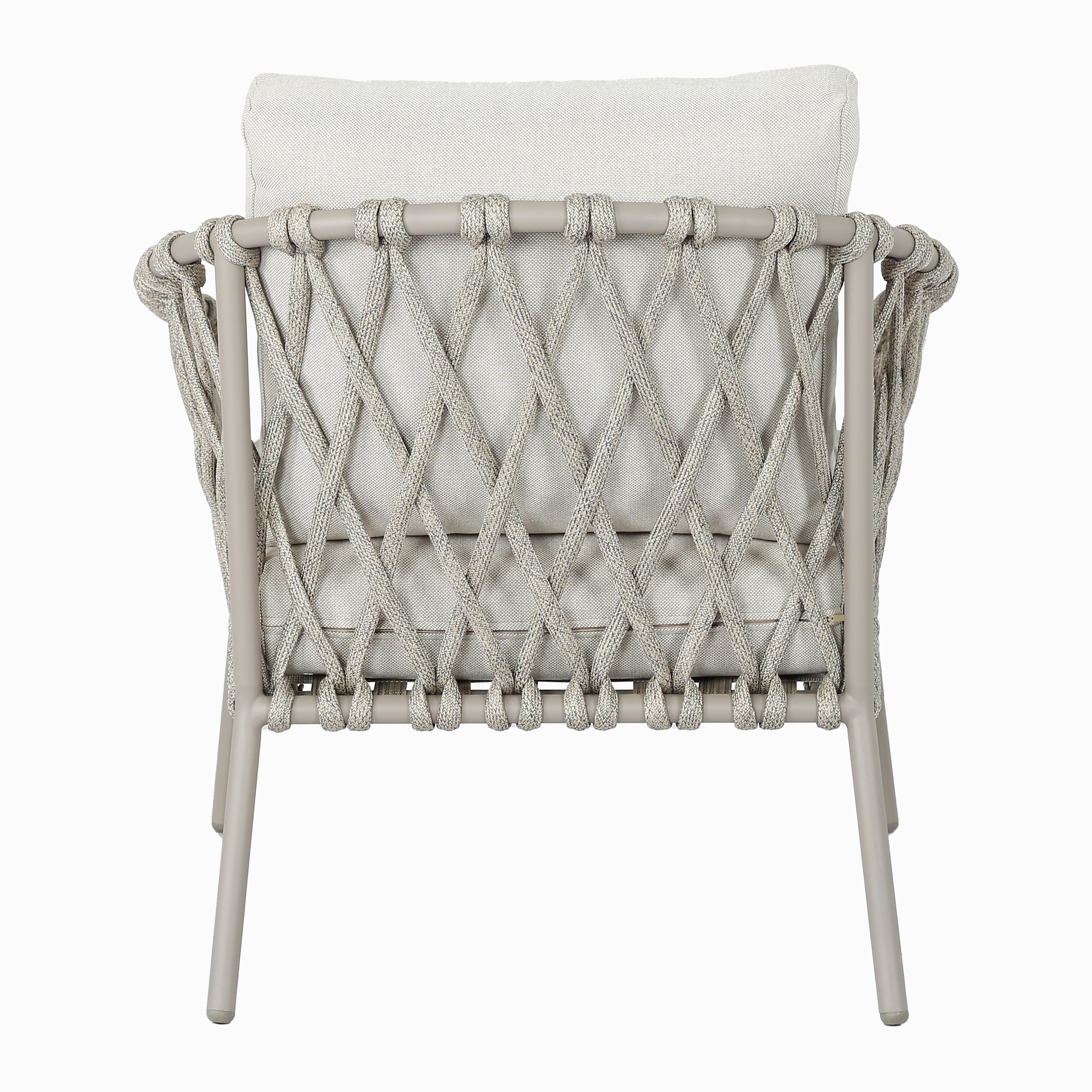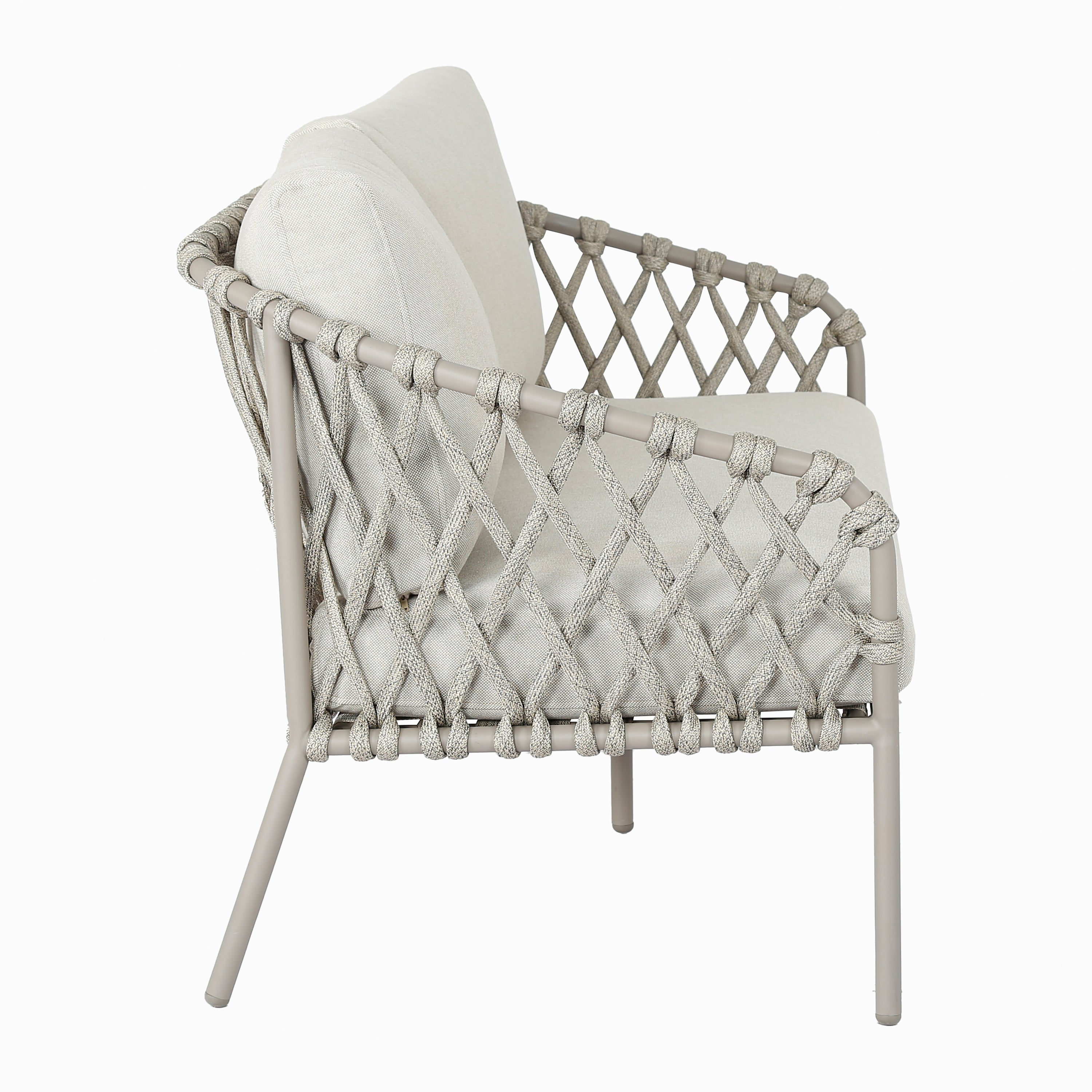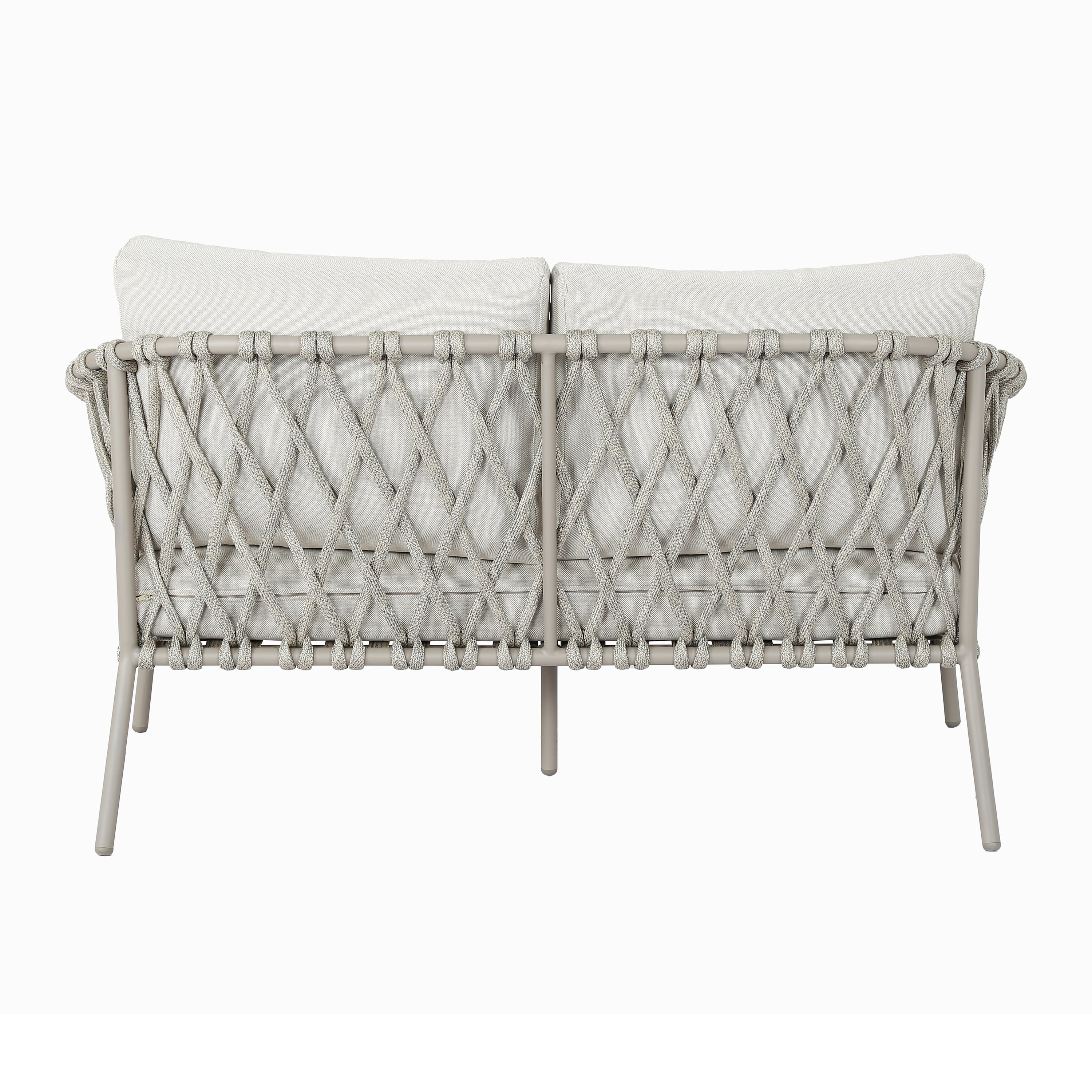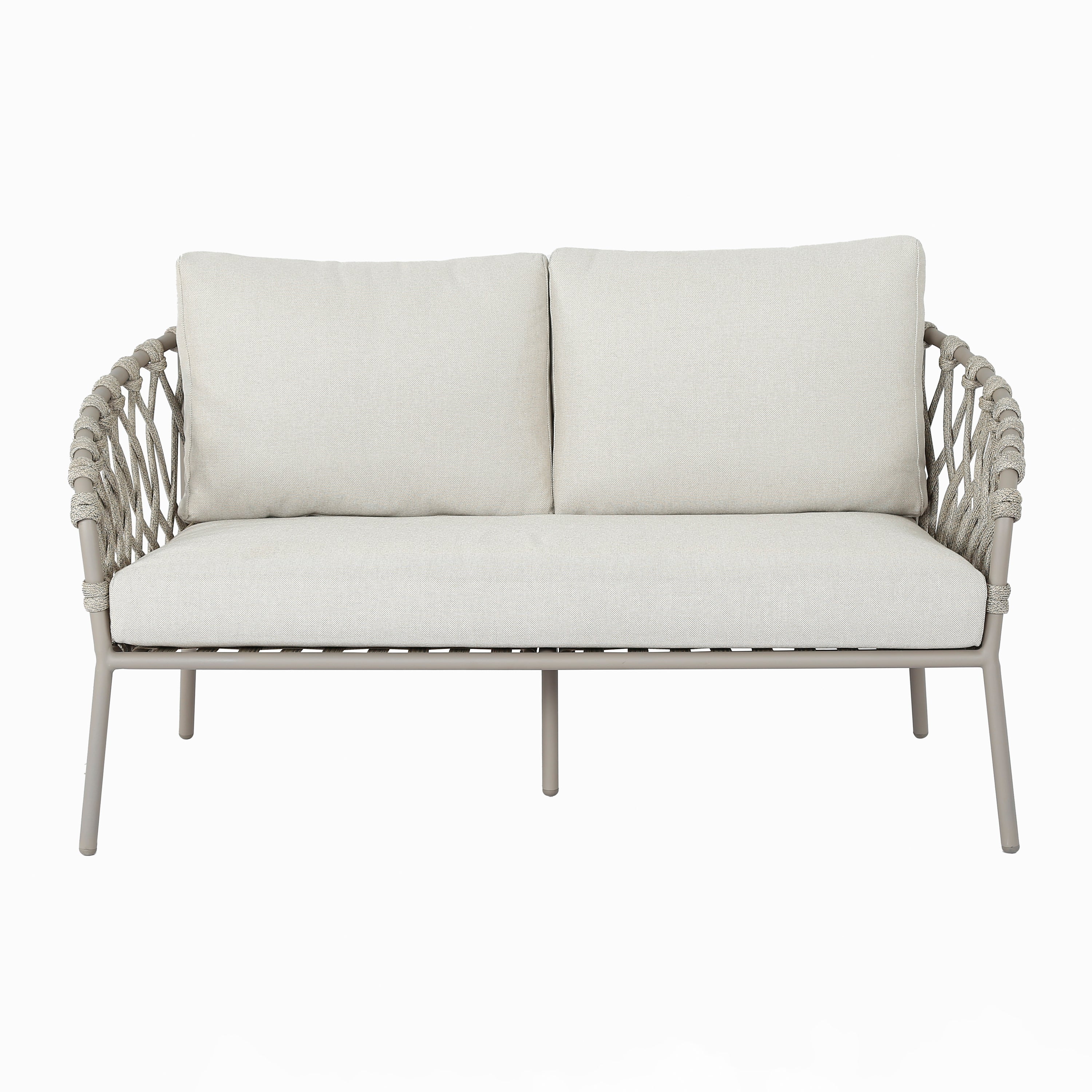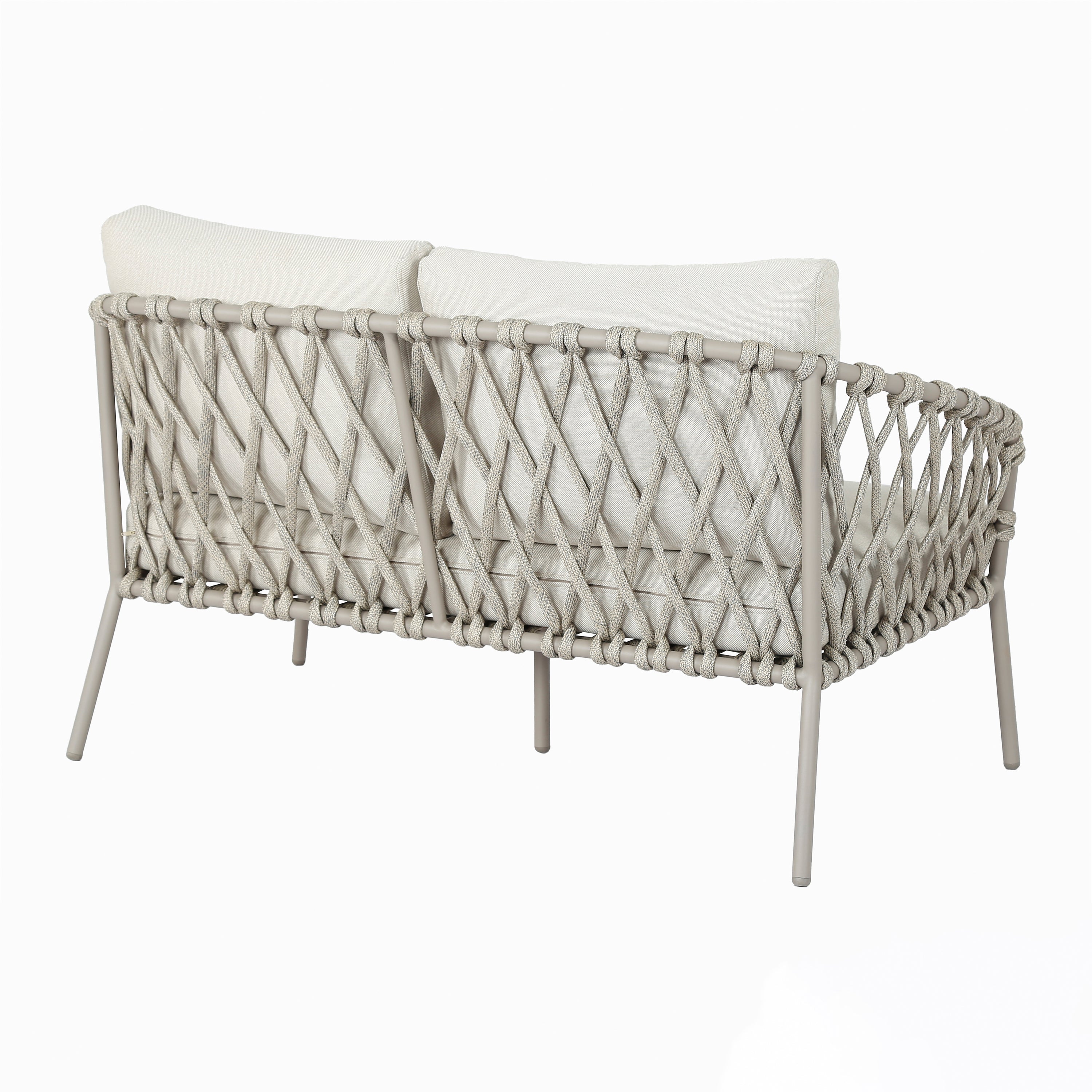 - Luchtig design met gevlochten details en elegant frame van gepoedercoat staal