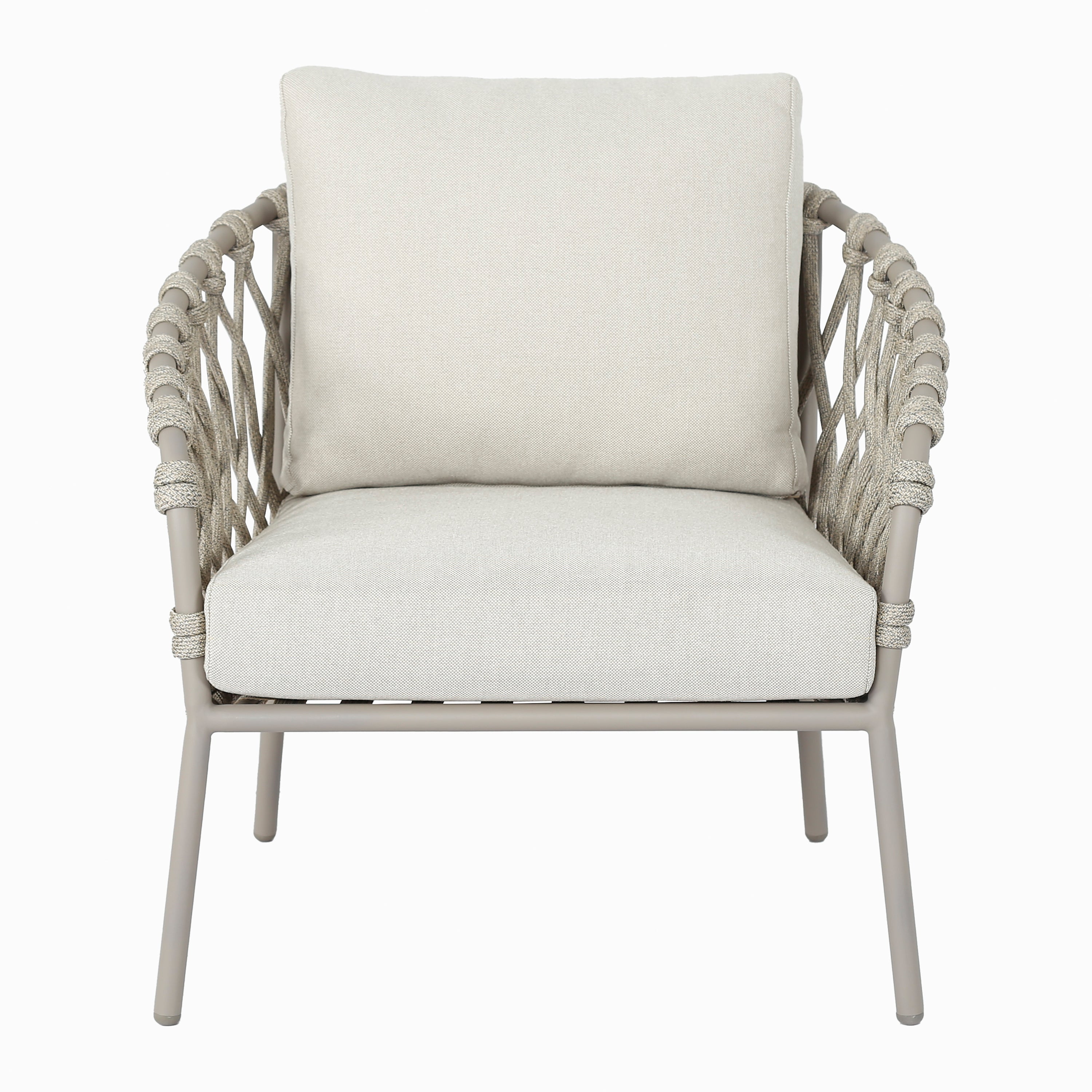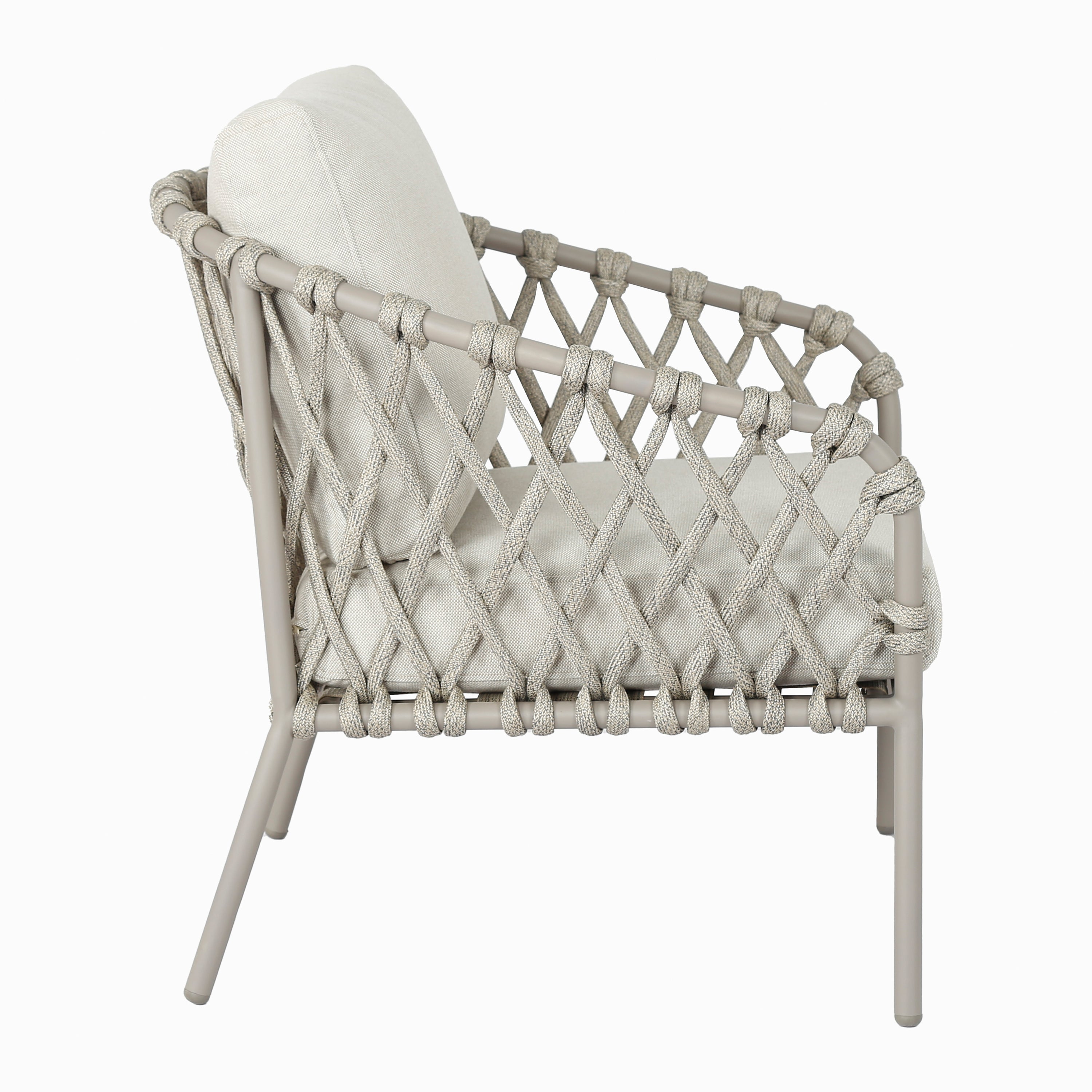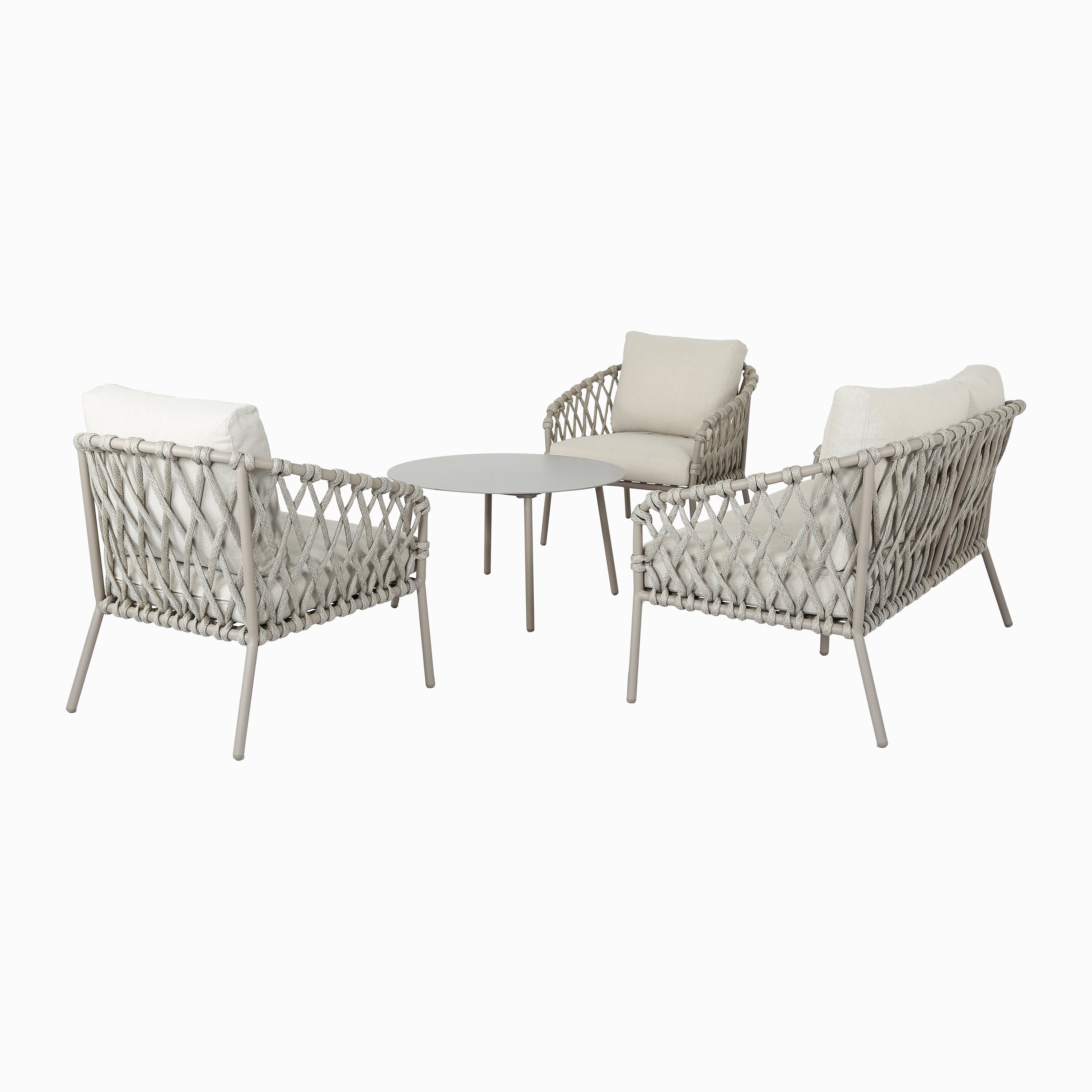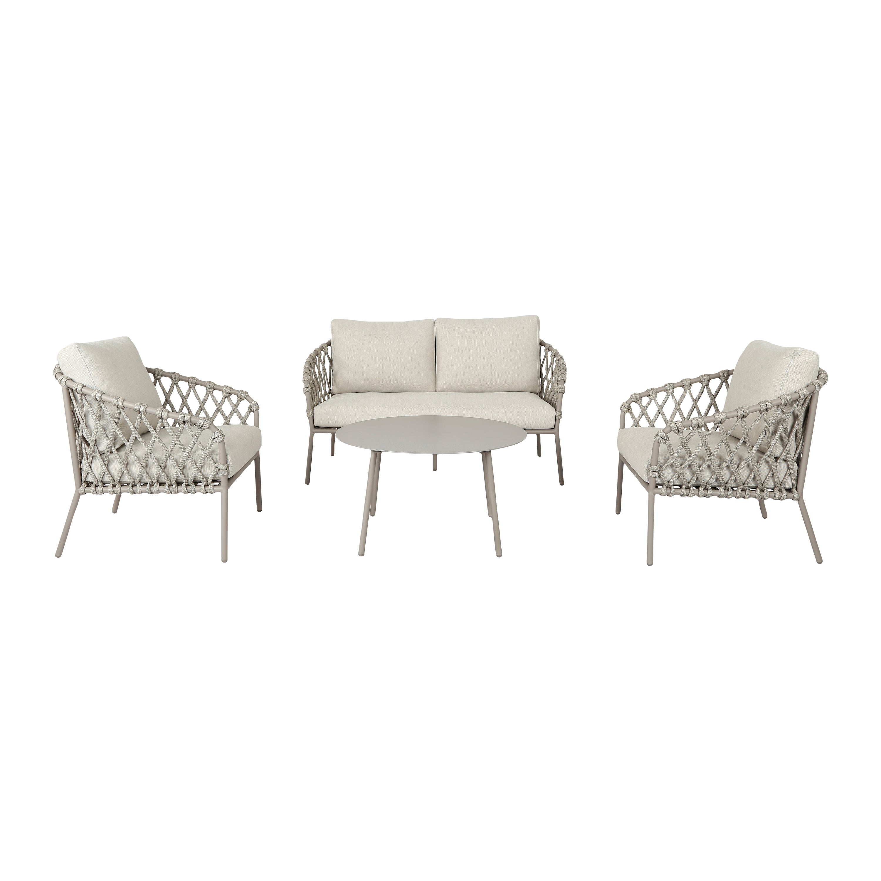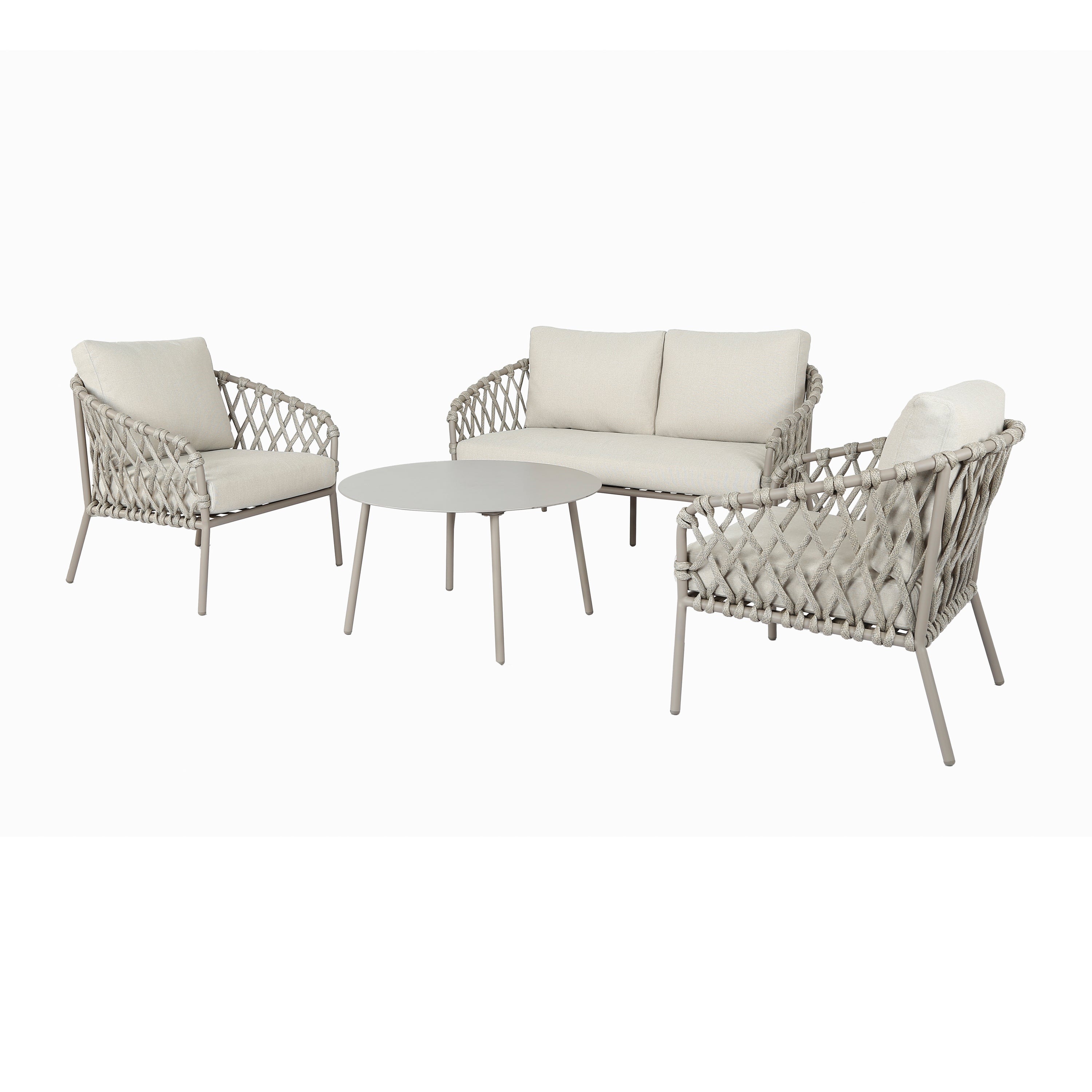 - Luchtig design met gevlochten details en elegant frame van gepoedercoat staal