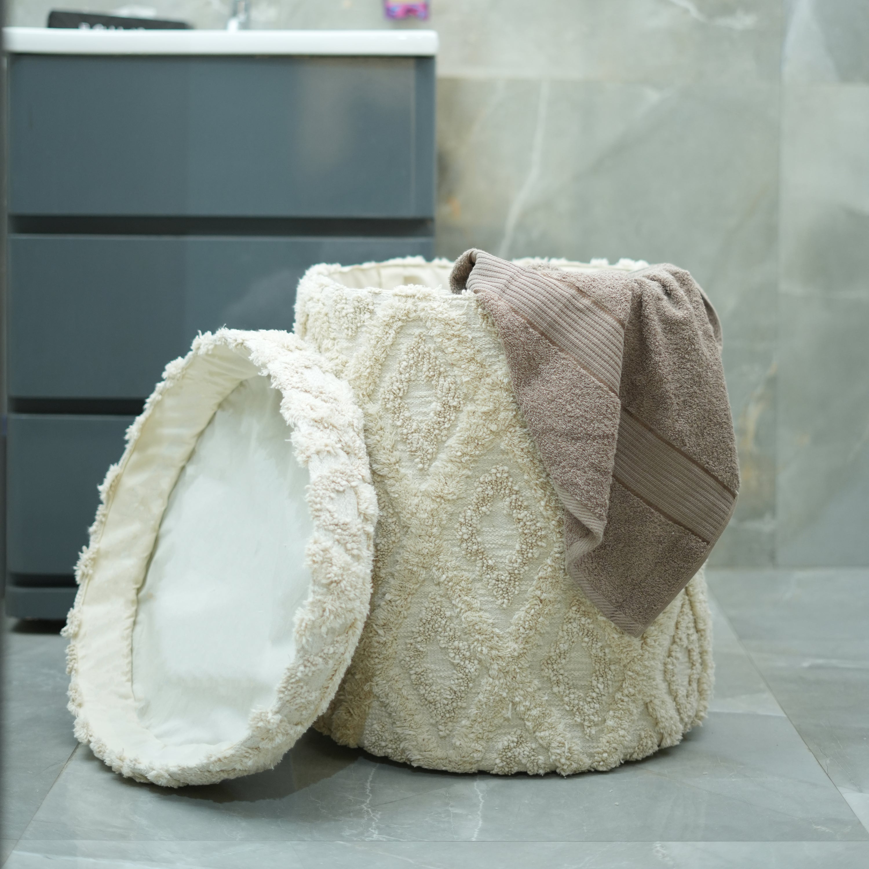 - Zachte, maar stevige mand met gebreide look