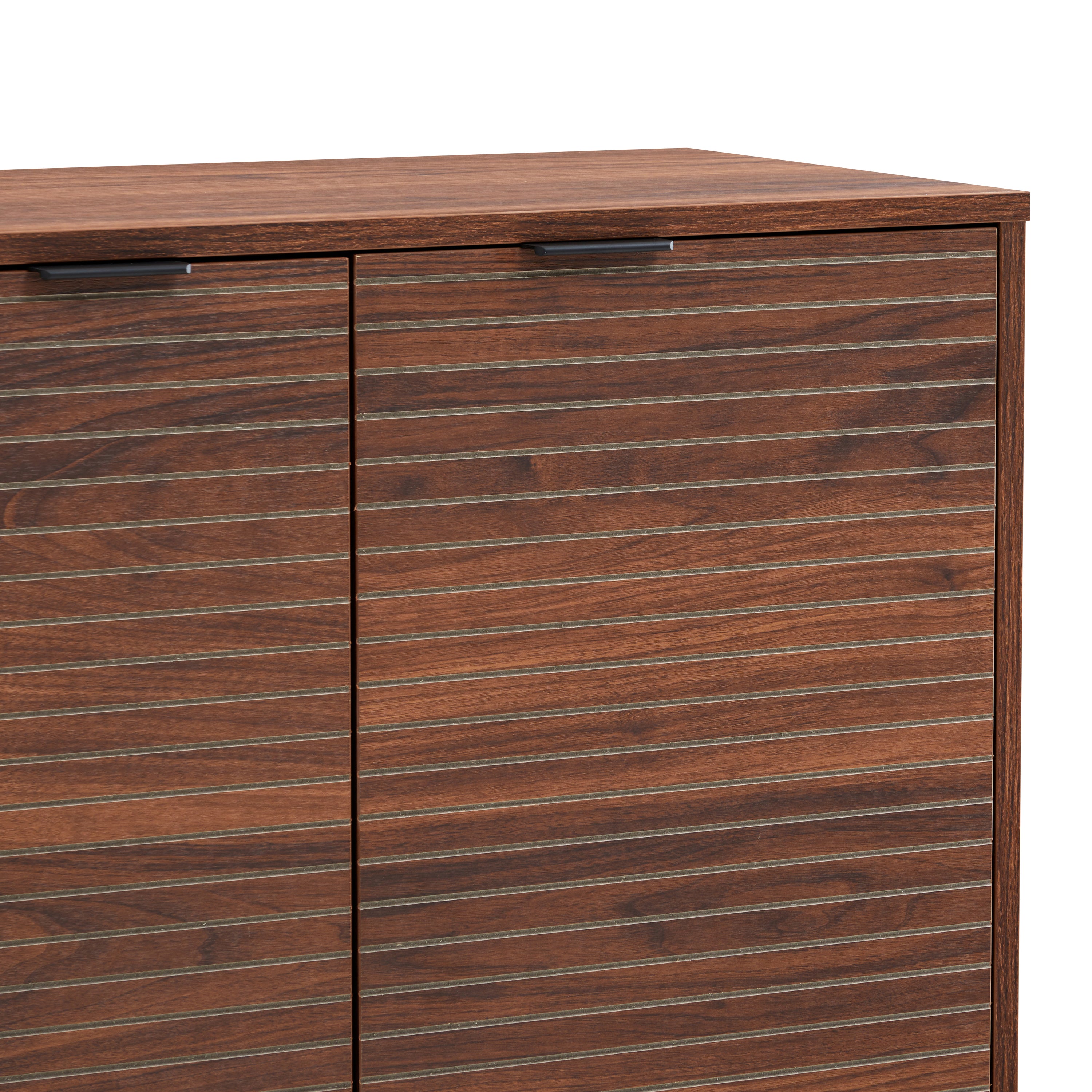 - De walnootkleurige melaminelaag heeft een warme, rode ondertoon