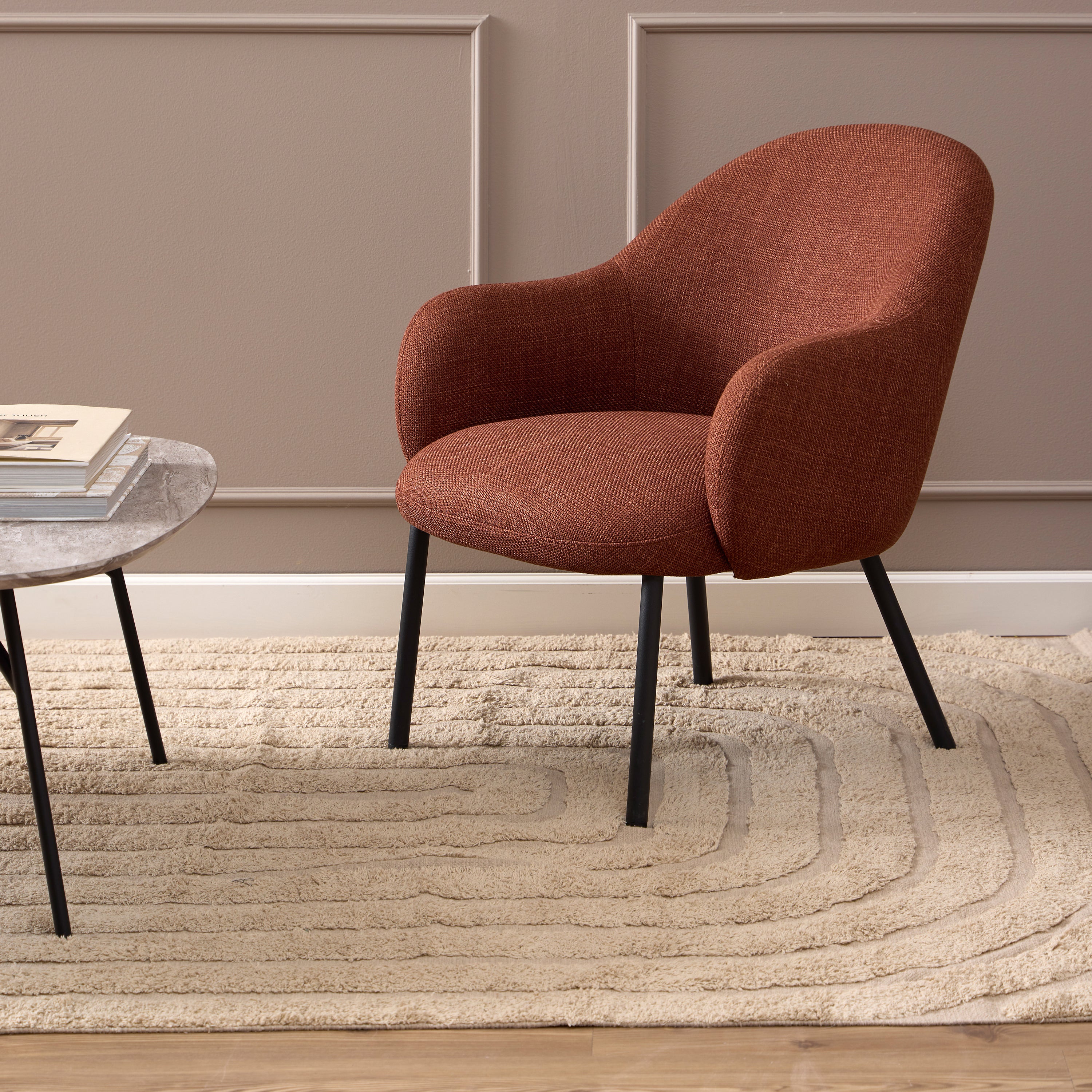- Door de ronde vormen en de armleuning krijg je een geborgen gevoel