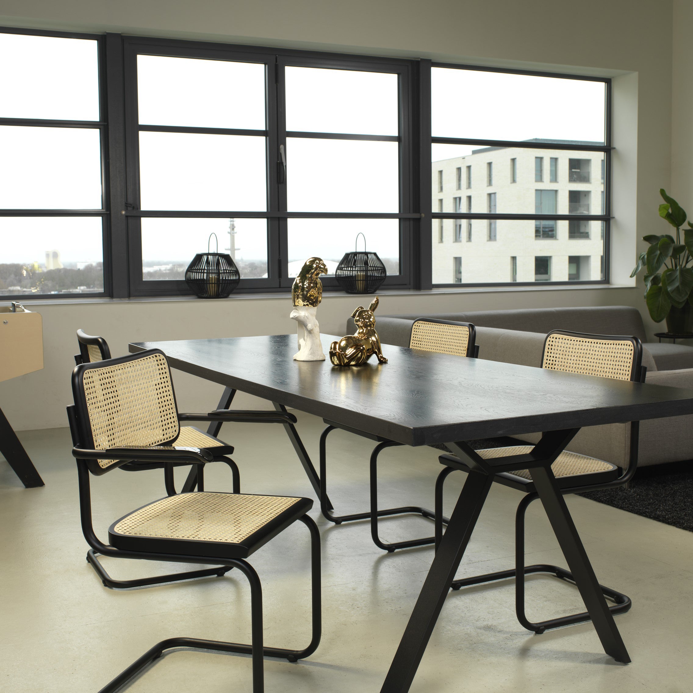 Geef je eethoek een bohemian touch met de Wave eetkamerstoel van by fonQ. Dit pareltje heeft haar looks te danken aan het geweven webbing patroon van bamboe. Het contrast van het lichte hout en het zwarte frame maakt de stoel helemaal af. Mooi hè!