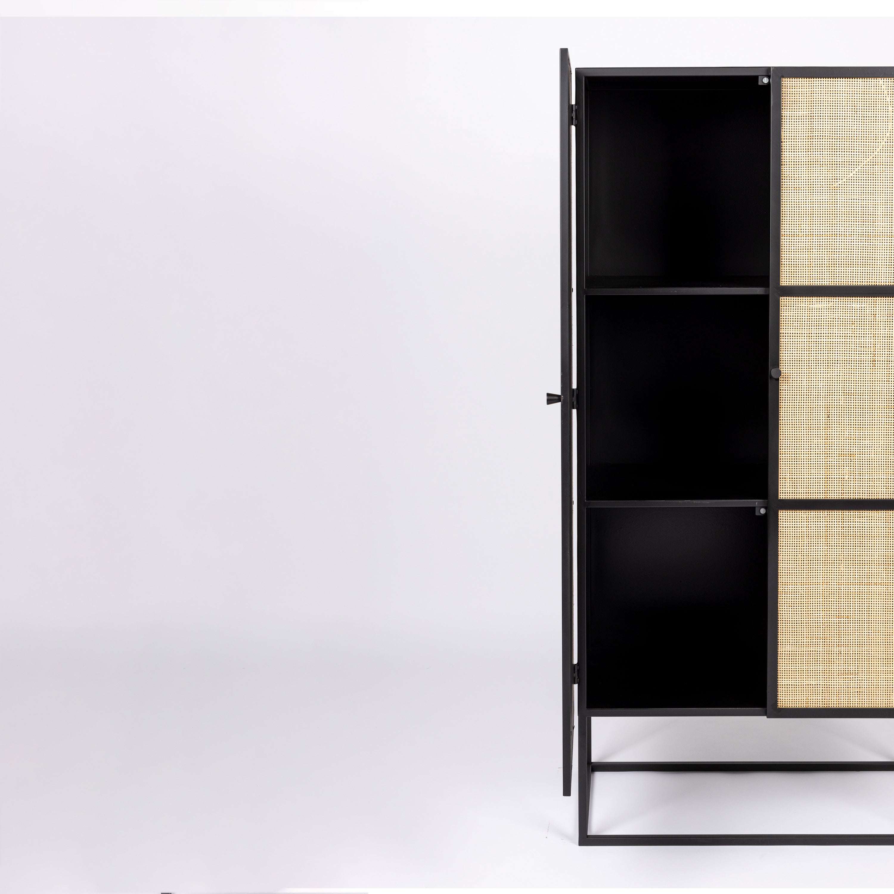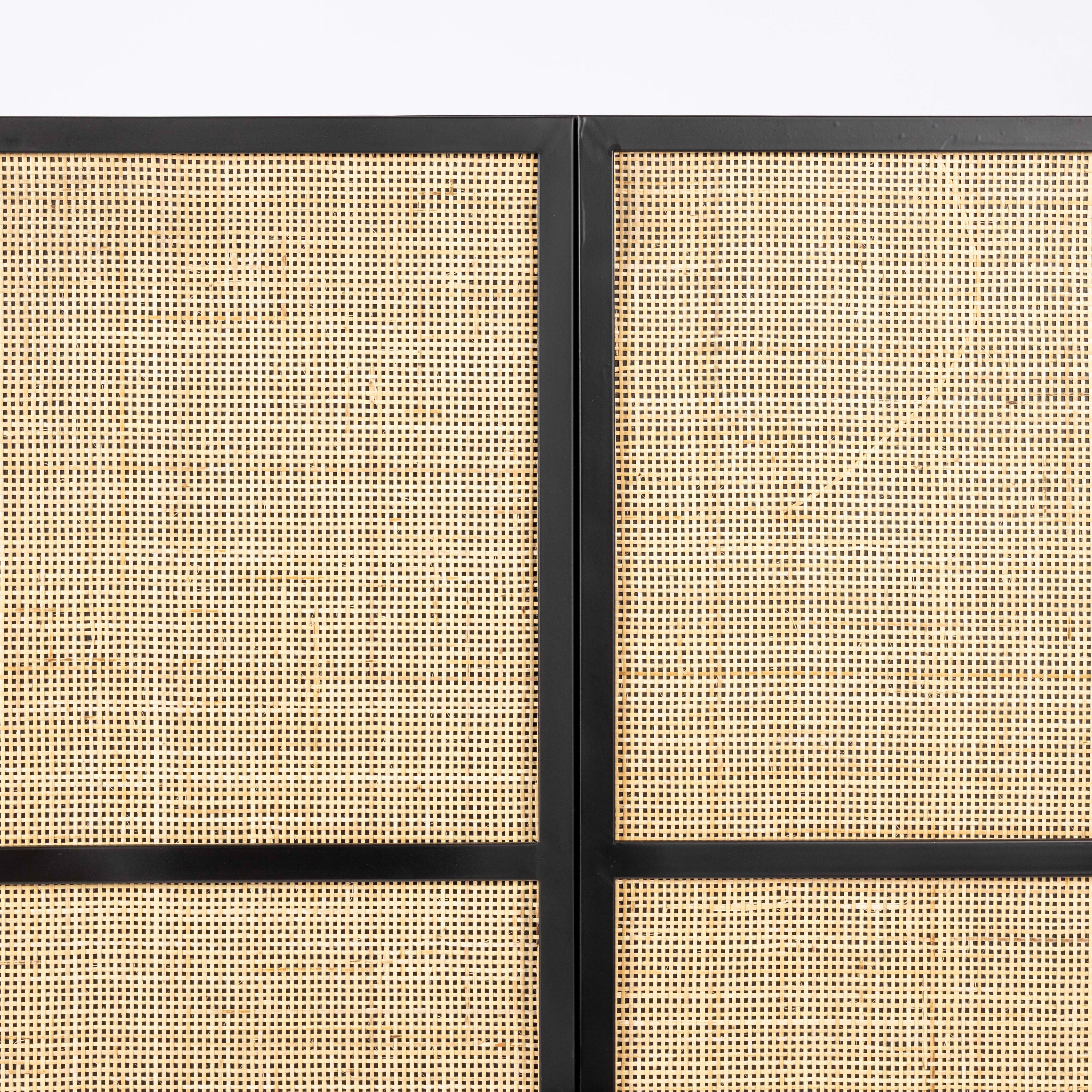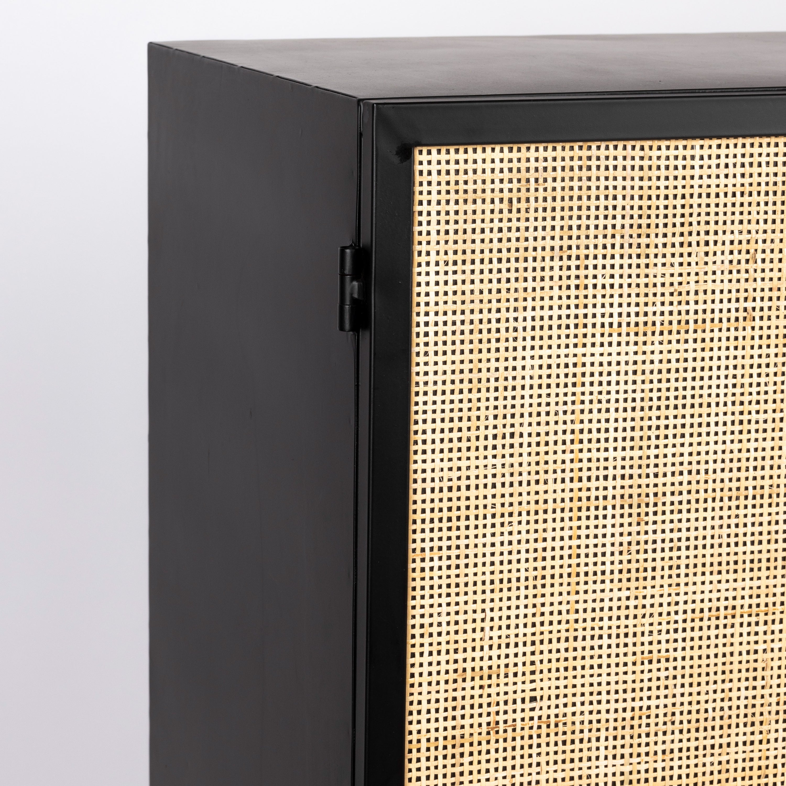 Deze opbergkast uit de Wave serie van by fonQ heeft zijn stijlvolle uitstraling te danken aan het contrast van het lichte, natuurlijke hout met het gekleurde frame. De gevlochten structuur van rotan maakt de kast helemaal af. Wij zijn fan!