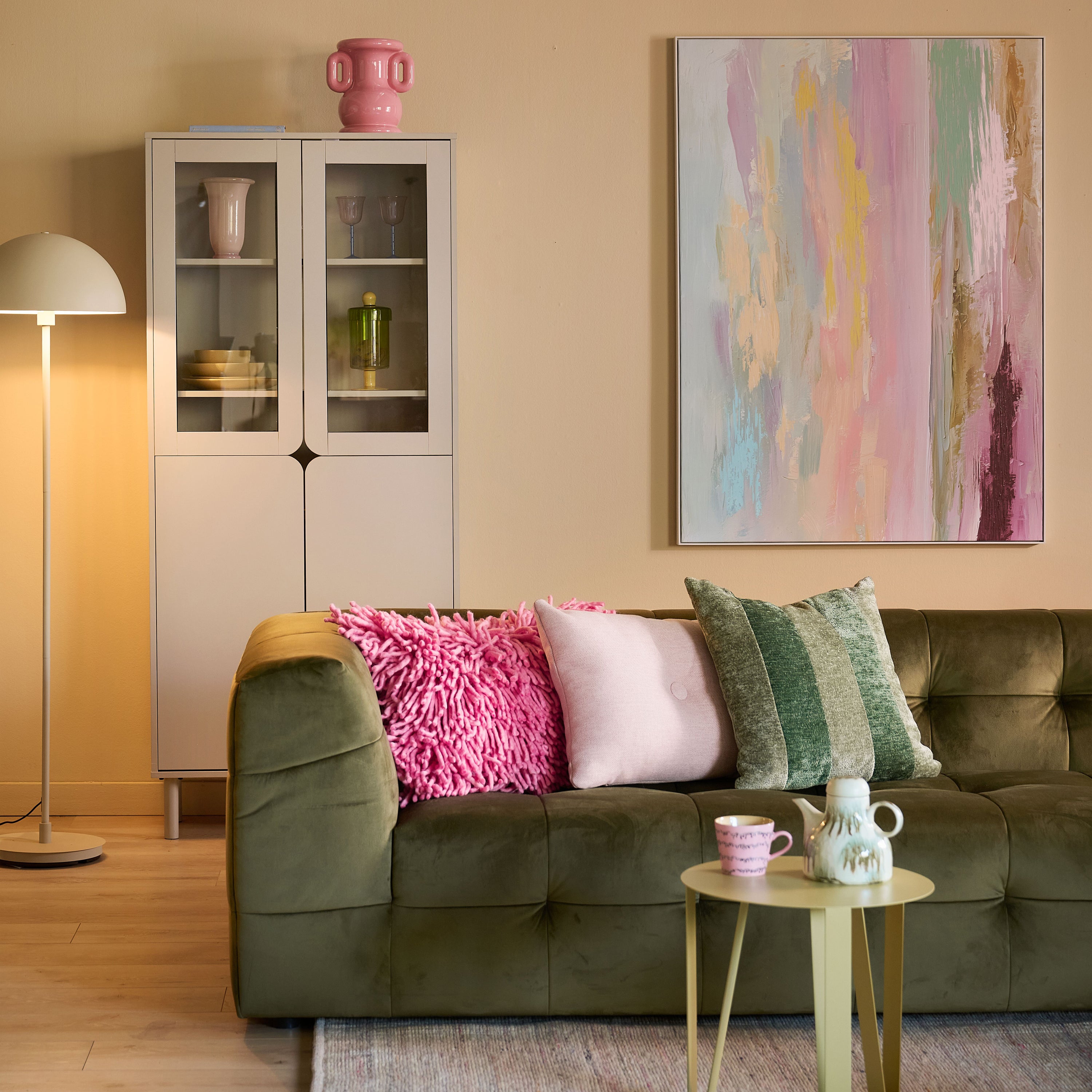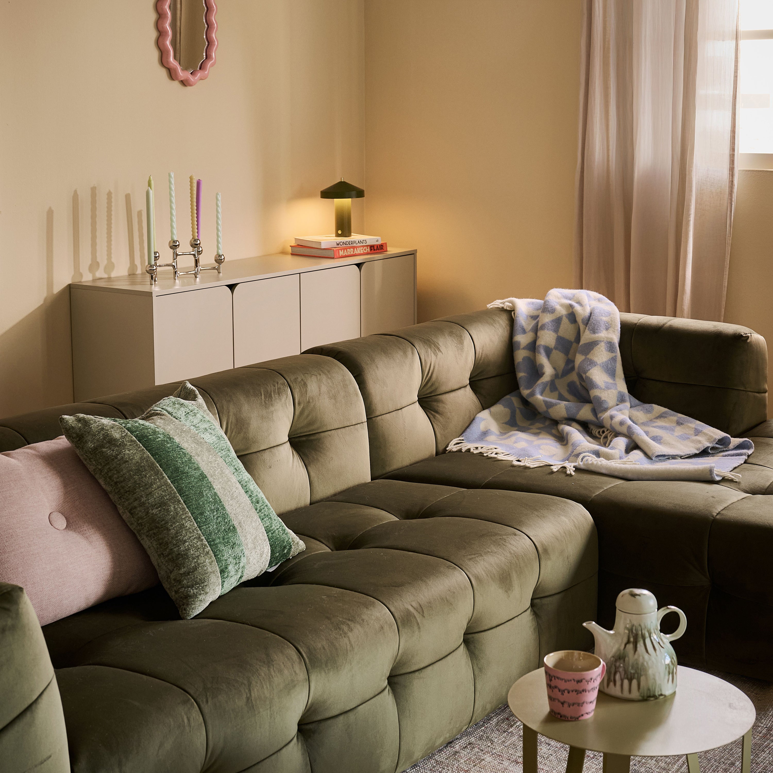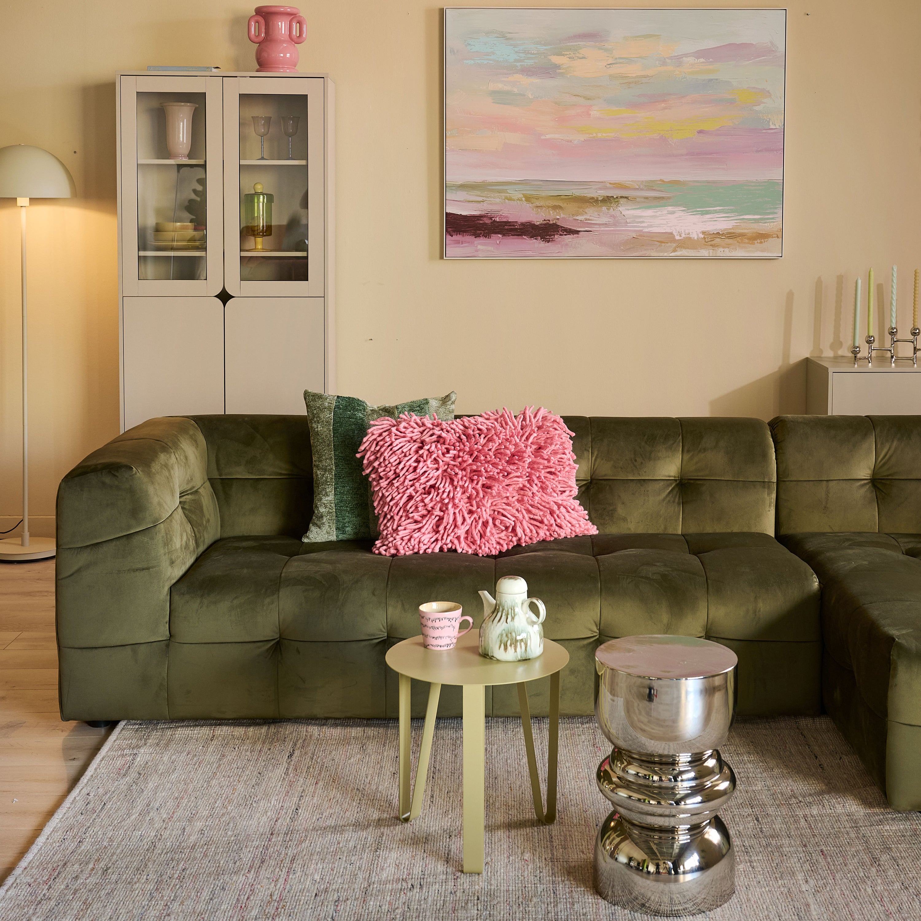 by fonQ Wies 4,5-zits Hoekbank Rechts - Fluweel - Army Green