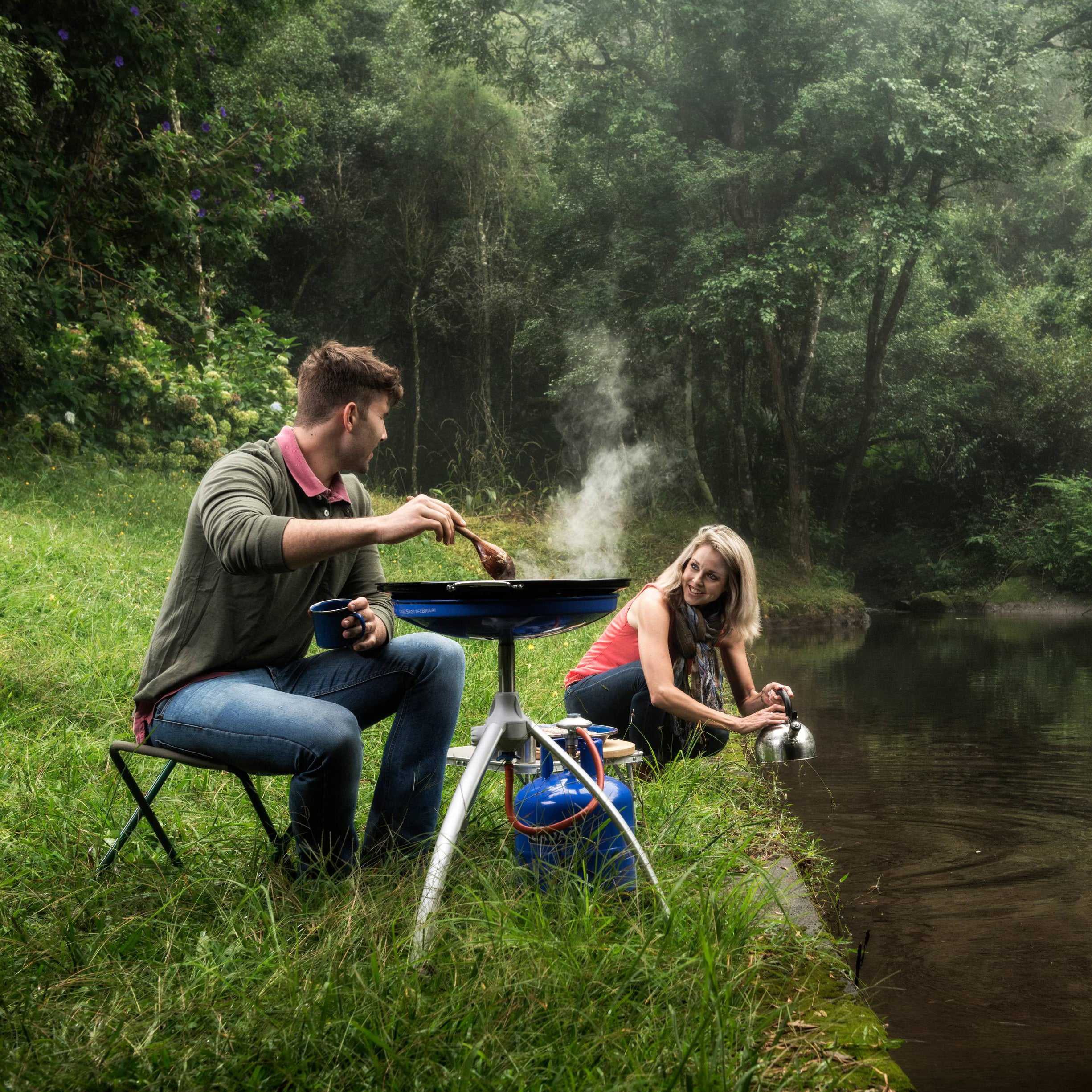 Deze Skottelbraai weegt maar 5 kilo en is uiterst draagbaar, wendbaar en robuust. De skottel is voorzien van een harde emaille laag en heeft roestvrijstalen vaste handgrepen. Het apparaat kan via een slang en een drukregelaar (niet meegeleverd) aangesloten worden op een normale gasfles. De Skottelbraai werkt in combinatie met de Cadac Power Pak ook op gascartridges (beide niet meegeleverd). Let op: niet geschikt voor gascartouches, en wordt via een slang en een drukregelaar (niet meegeleverd) aangesloten. De Skottelbraai wordt geleverd compleet met een lichtgewicht onderstel dat ontworpen is voor stabiliteit en draagbaarheid.De poten zijn afschroefbaar en kunnen worden opgeborgen in de meegeleverde draagtas. Voor de skottel zelf wordt een afzonderlijke draagtas meegeleverd.