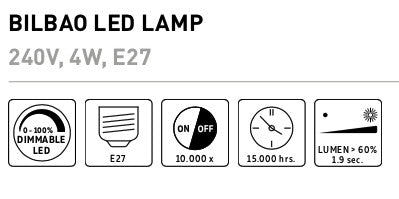 De LED lamp Bilbao is erg charmant, niet alleen vanbuiten maar ook vanbinnen. Het lichtpunt bestaat namelijk uit gekruld LED filament. Dit zorgt voor een bijzondere look. De lamp is voorzien van een titanium of gouden coating en past in een E27 fitting. Je hoeft bij dit model eigenlijk alleen een hanglamp of tafellamp met fitting te hebben. Een andere handige functie is de mogelijkheid om de design LED lamp te dimmen. De lamp heeft 15.000 branduren.
