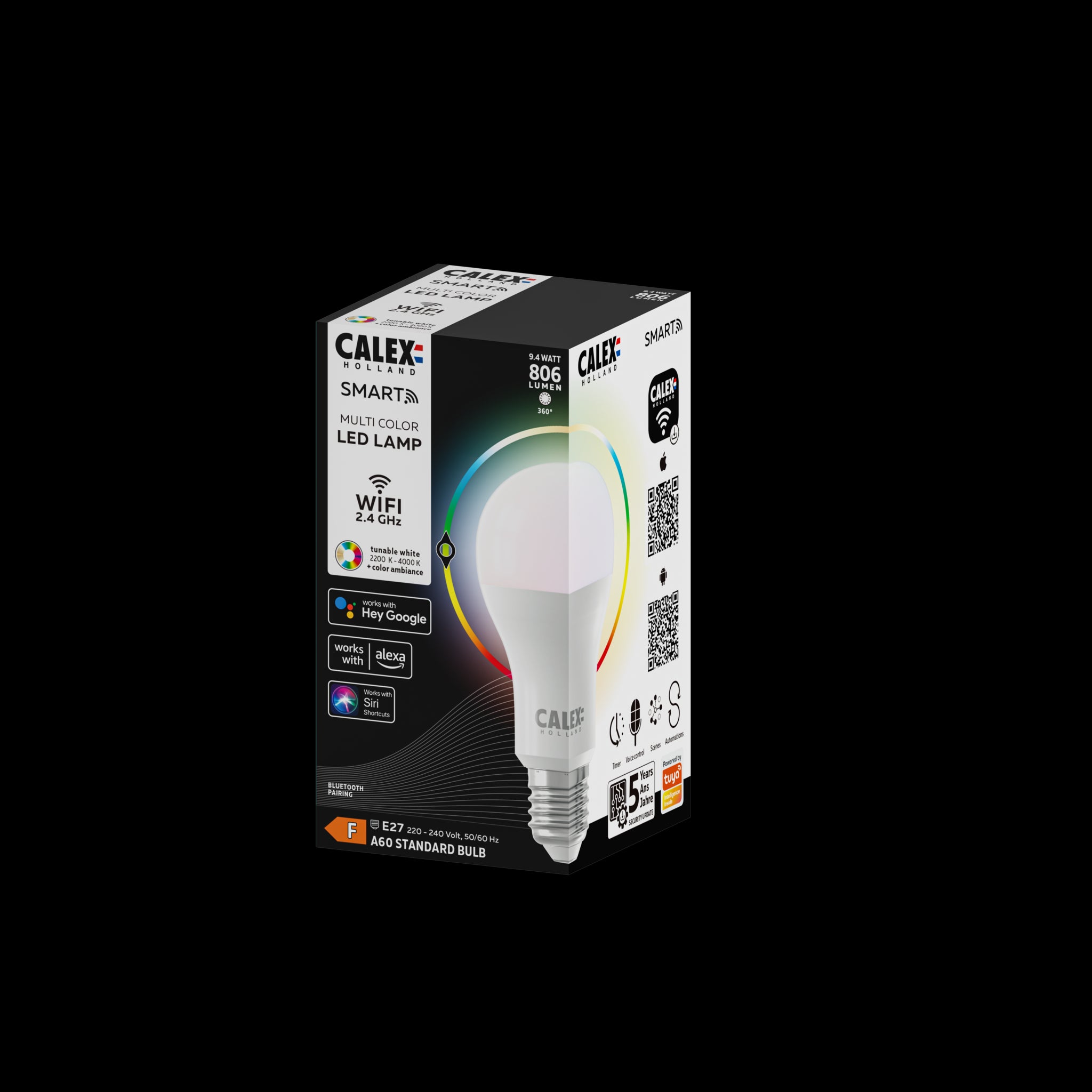 De Calex Smart LED E27 Lamp RGB+CCT is een echte smart sfeermaker. Met de eenvoudige app of met je stem via Google of Alexa bedien je deze LED spot uit de smart home collectie van Calex. Deze lichtbron is voorzien van een E27 fitting en heeft een energielabel A+. Een energiezuinige ledlamp die uw huis niet alleen sfeervoller maakt, maar ook een stukje slimmer.