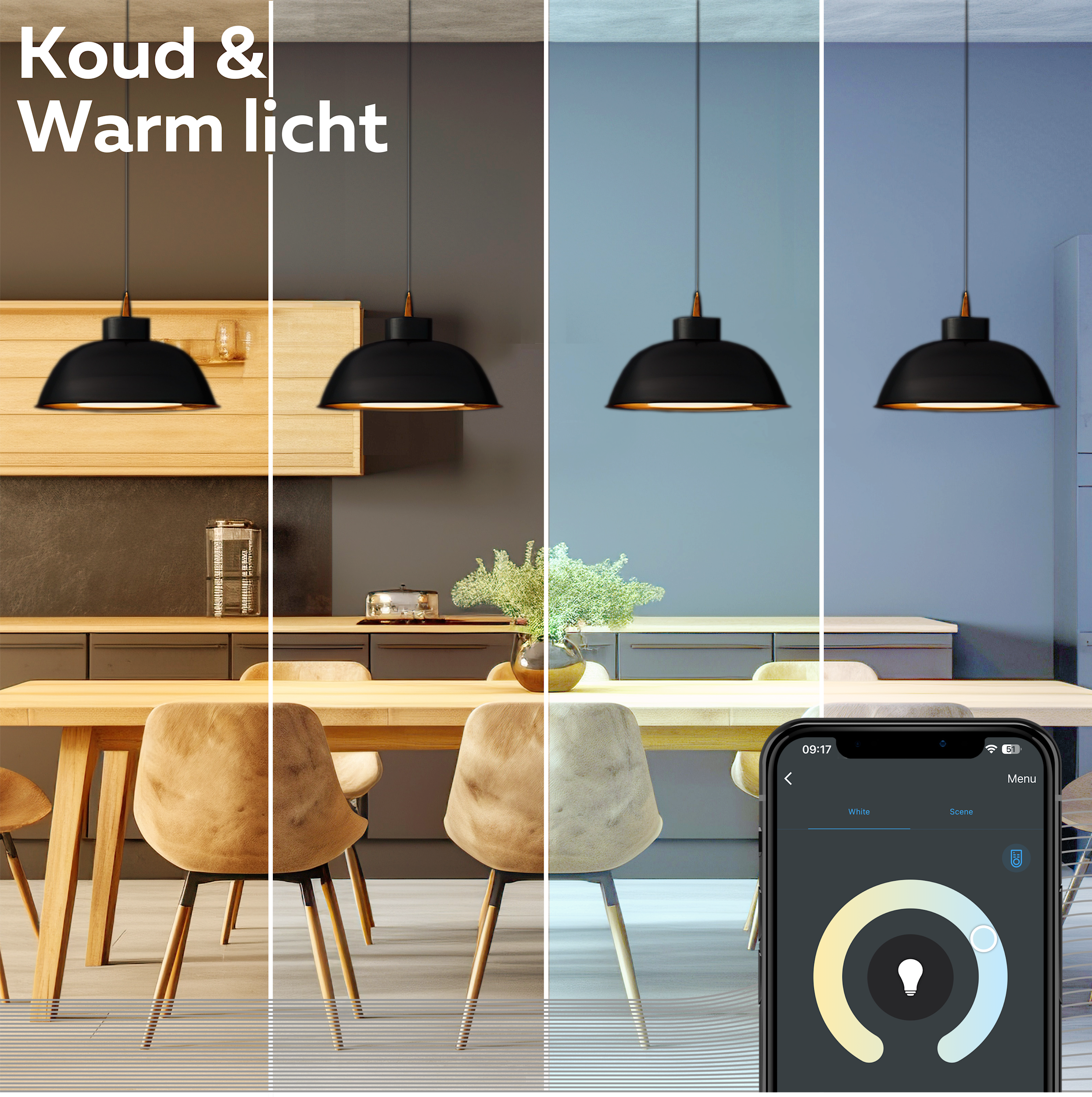 - Kies warmwit tot koelwit licht of 16 miljoen kleuren