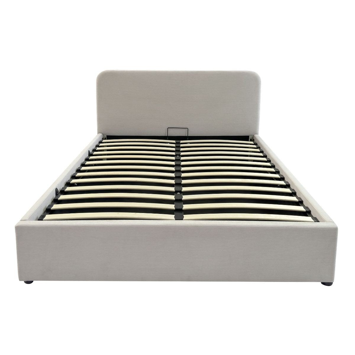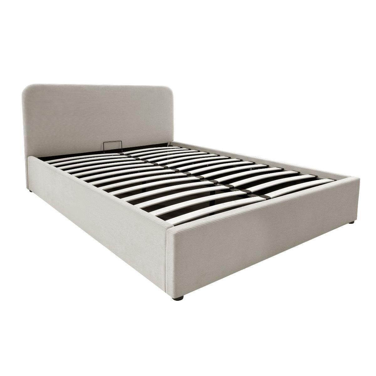 - De bedbodem kan dankzij gasveren worden opgetild en biedt toegang tot een grote opbergruimte.