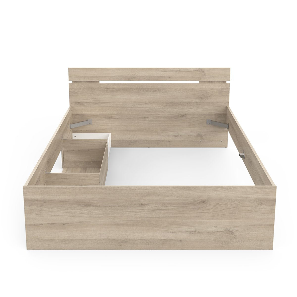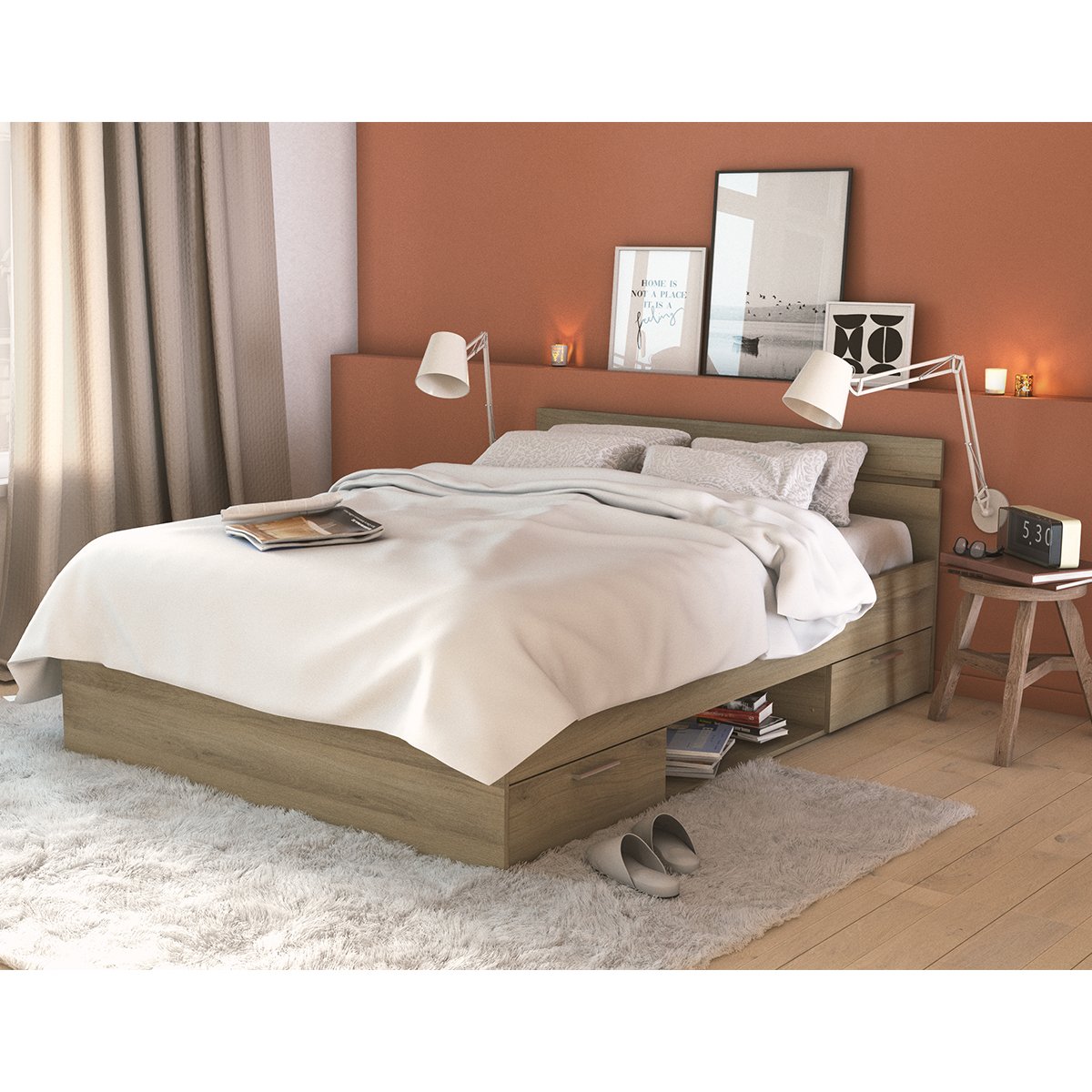 Productkenmerken: 2 laden gemonteerd op kogelgeleiders van 17 mm. Bruikbare afmetingen van de laden: 56 x 34 x 11 cm. Bruikbare afmetingen van het grote vak: 69 x 26 x 36 cm. Greepstang 150 x 24 x 12 mm in grijs gelakt. Kleur en stijl gemakkelijk te combineren. Functioneel: geoptimaliseerde indeling onder het bed: 2 laden en een vak. Aanpasbaar: laden en vak kunnen links of rechts van het bed gemonteerd worden. Gemaakt in Frankrijk. Productafmetingen: Lengte 204,3 cm x Breedte 144,5 cm x Hoogte 74,2 cm - Nettogewicht: 39,34 kg.
