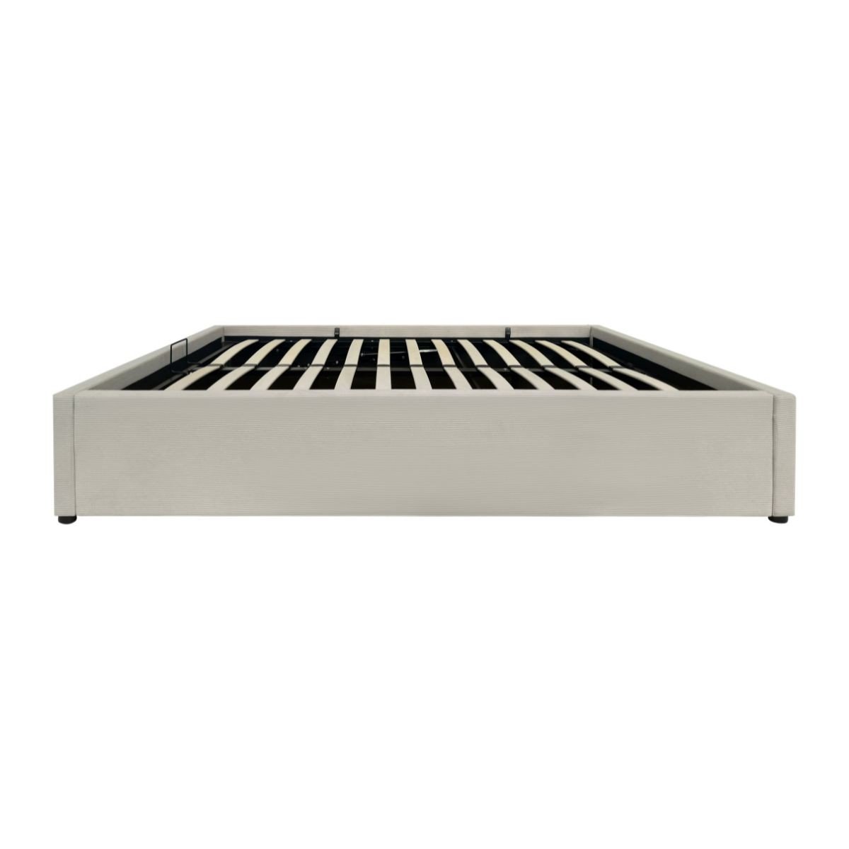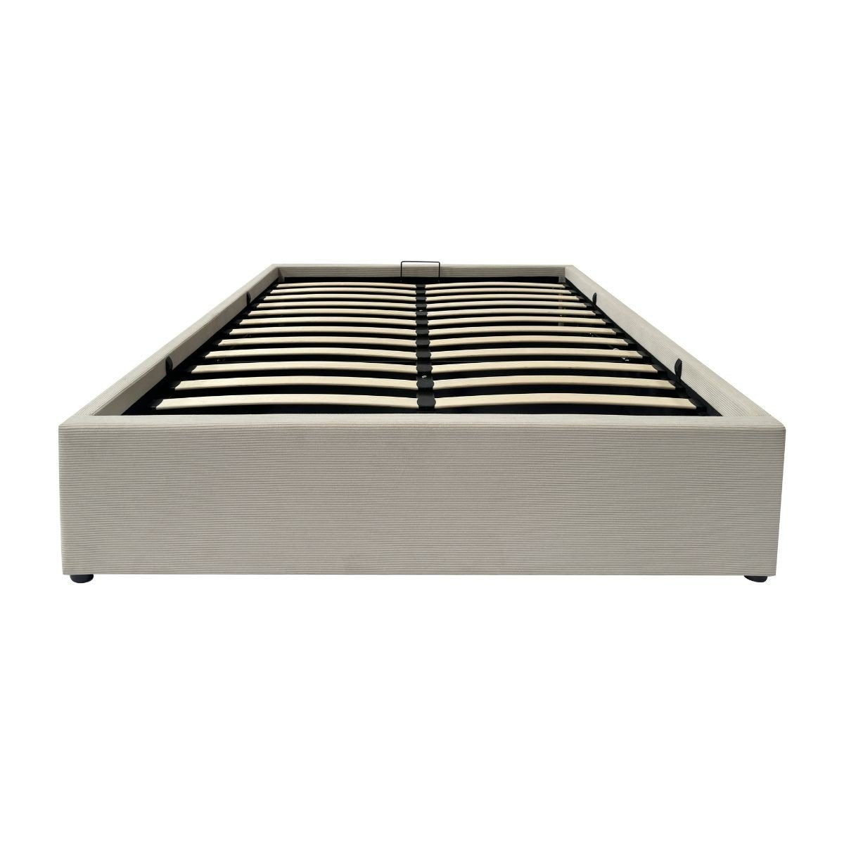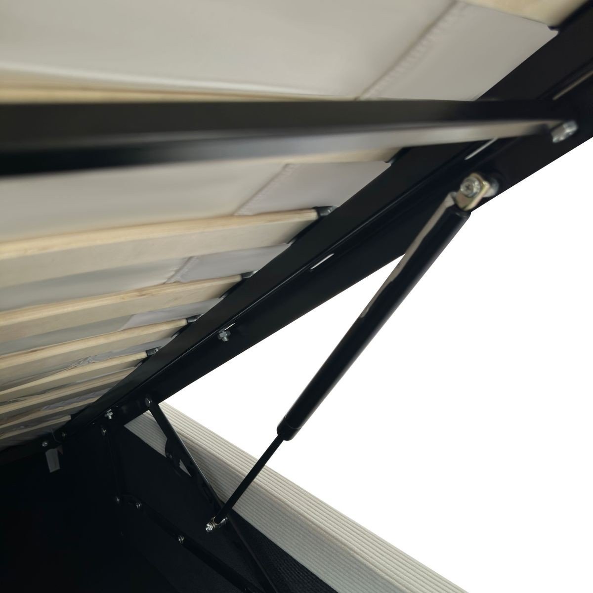 - De bedbodem kan dankzij gasveren worden opgetild en biedt toegang tot een grote opbergruimte.